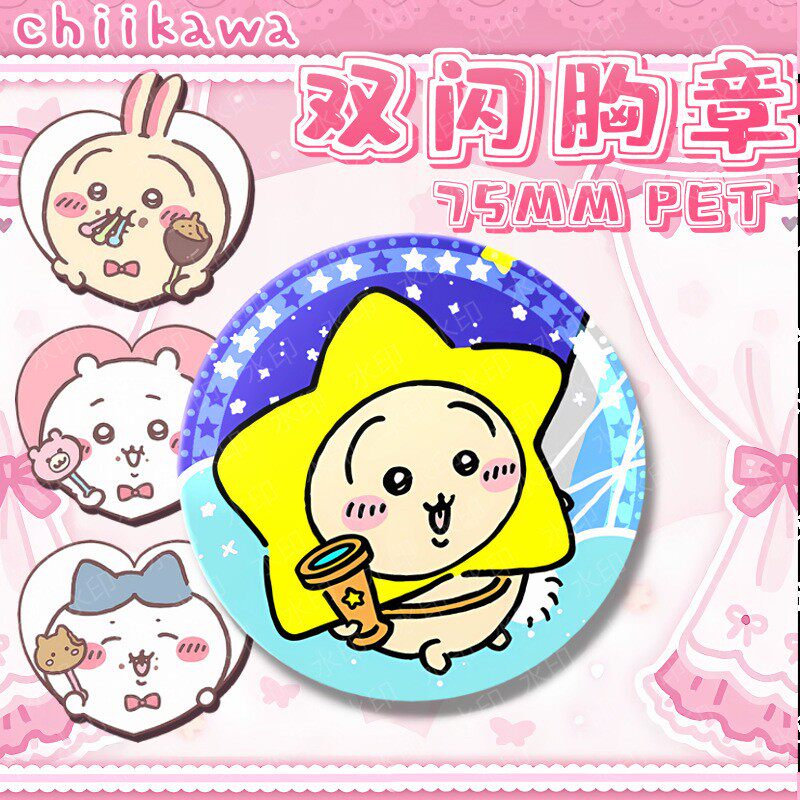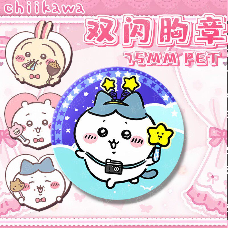 Chiikawa Merchandise Jiyikawa Laser Double Flash Badge Usachi Jiyikawa Cute Expression Pack Pendant