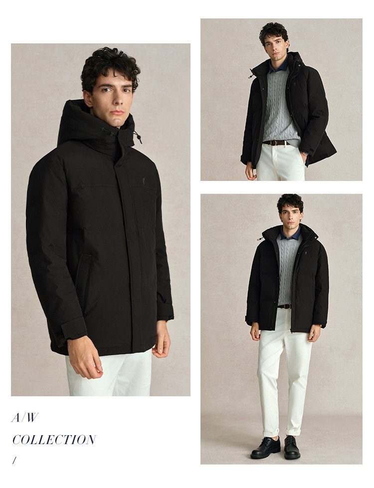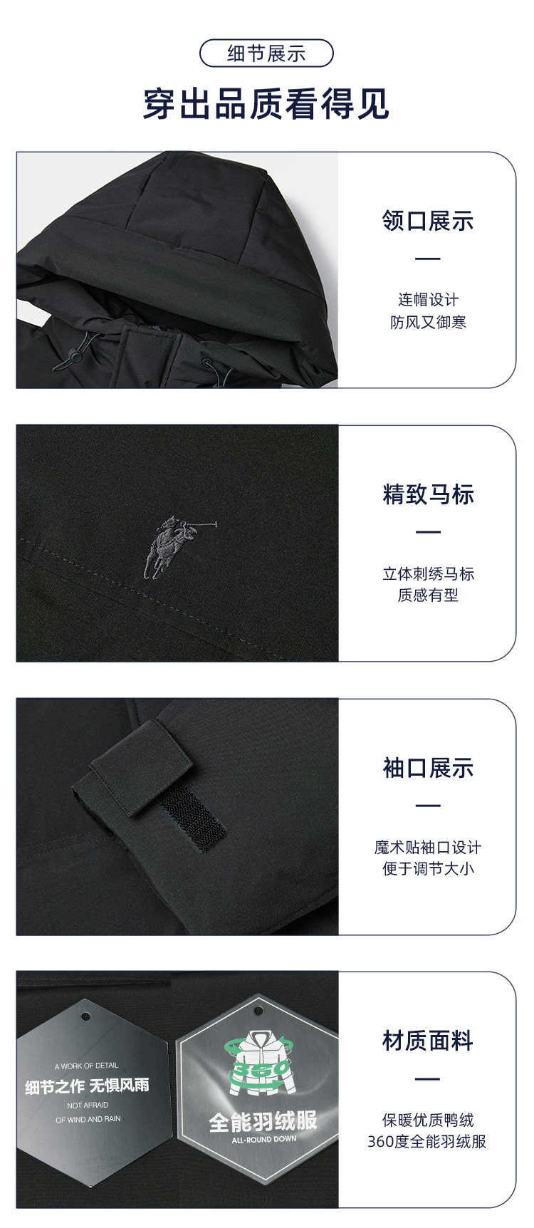 Polowalk Men's Hooded down Jacket 2024 Winter New Casual Versatile 90 Duck down Warm Puffer Jacket