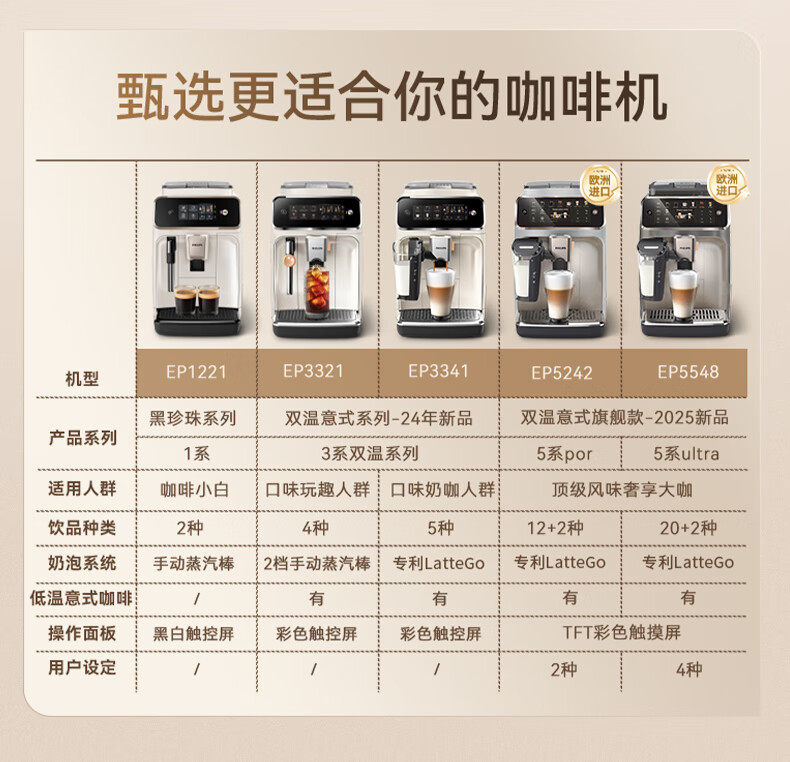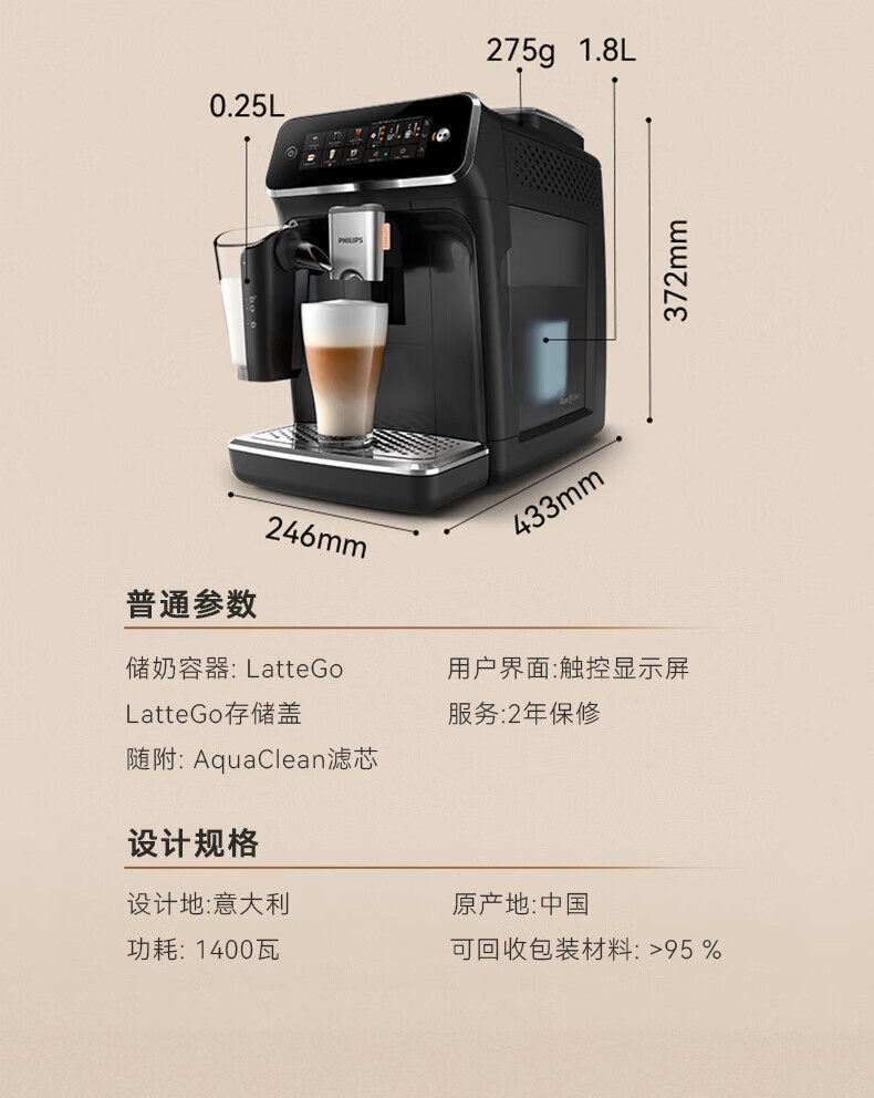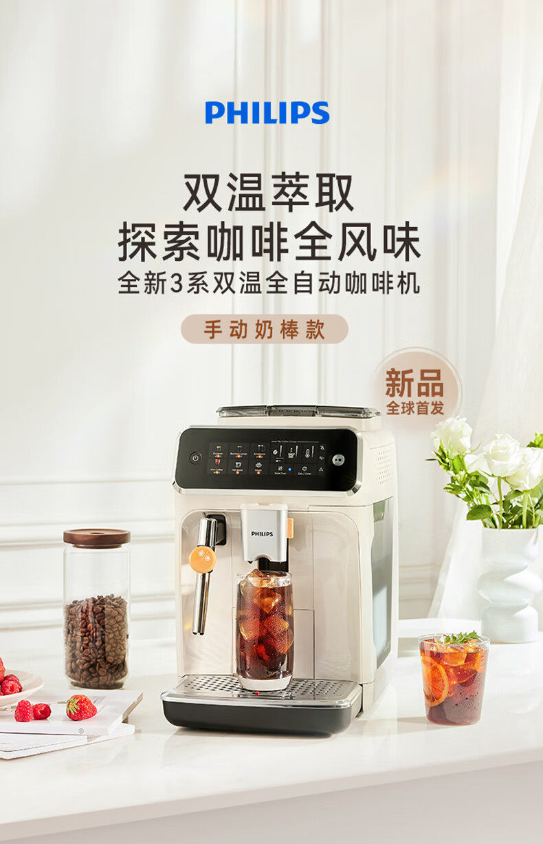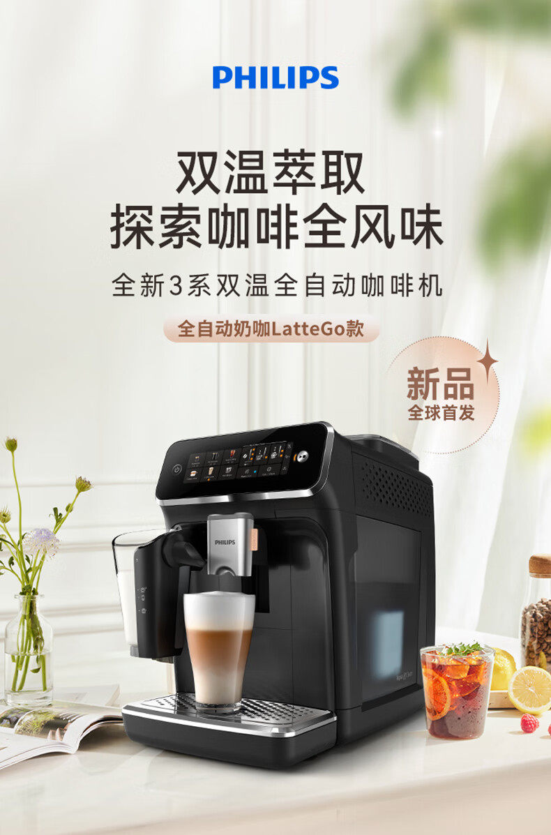 [95% New] Philips Fully Automatic Coffee Machine for Home and Office Use, Italian-Style Grinding and Frothing Integrated 3321/3341