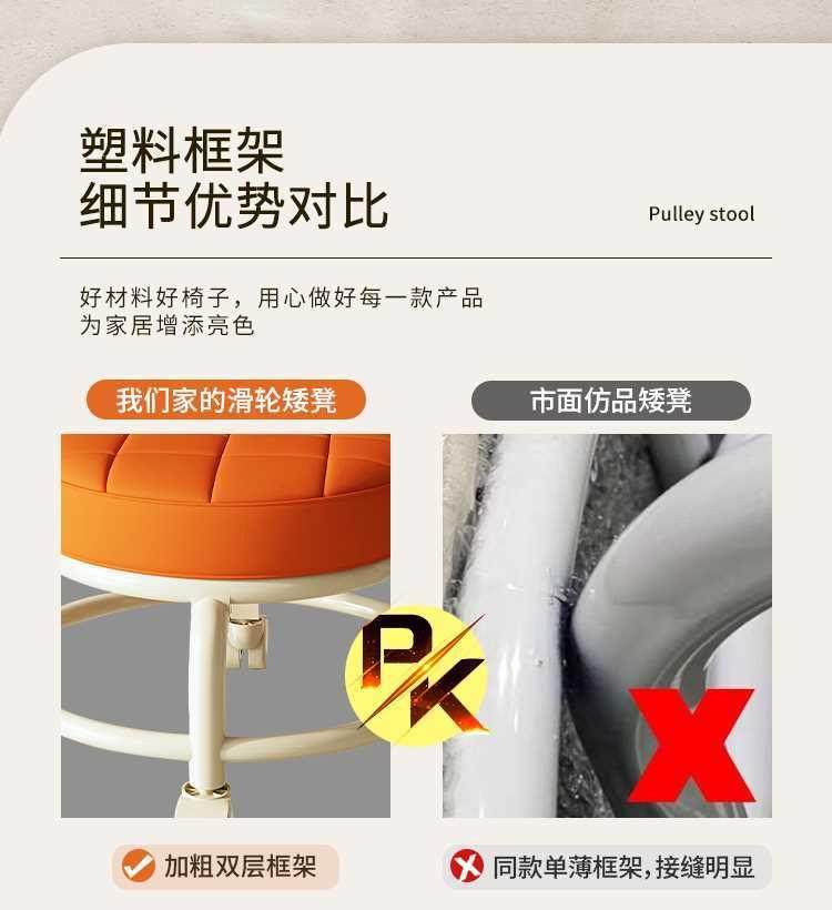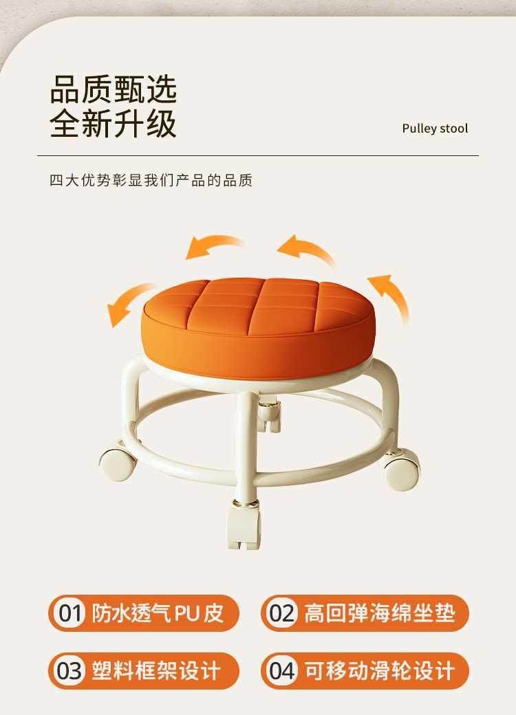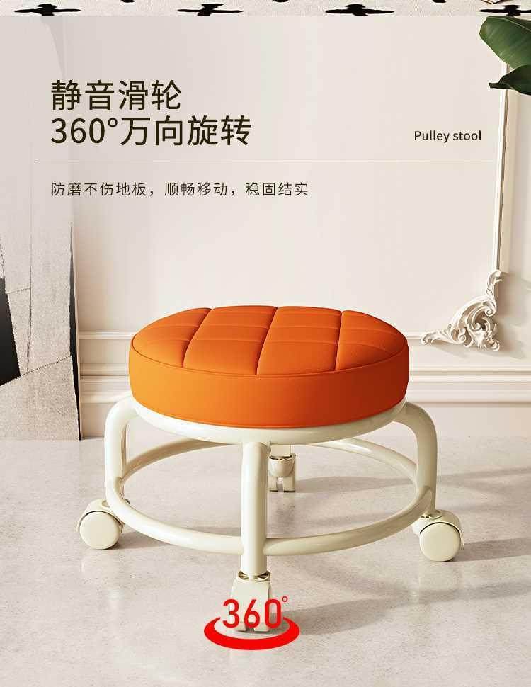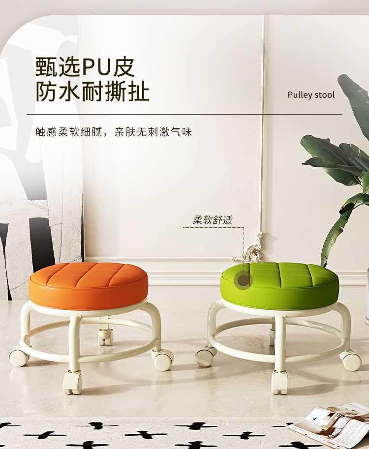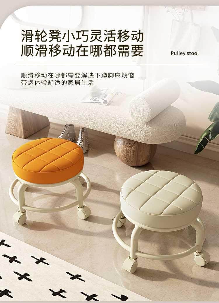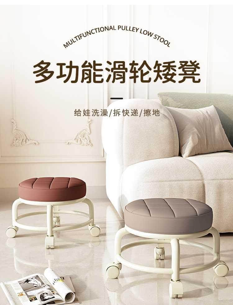 Universal Wheel Small Stool, Comfortable Sedentary Home Modern Simple Mobile Wheeled Bench Pulley Low Stool with Baby Round Stool