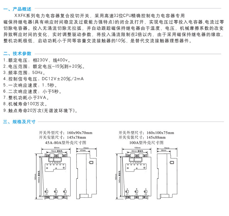 Weiscon Capacitor Composite Switch Xxfk-400V-45A 60A 80A Electronic Switch