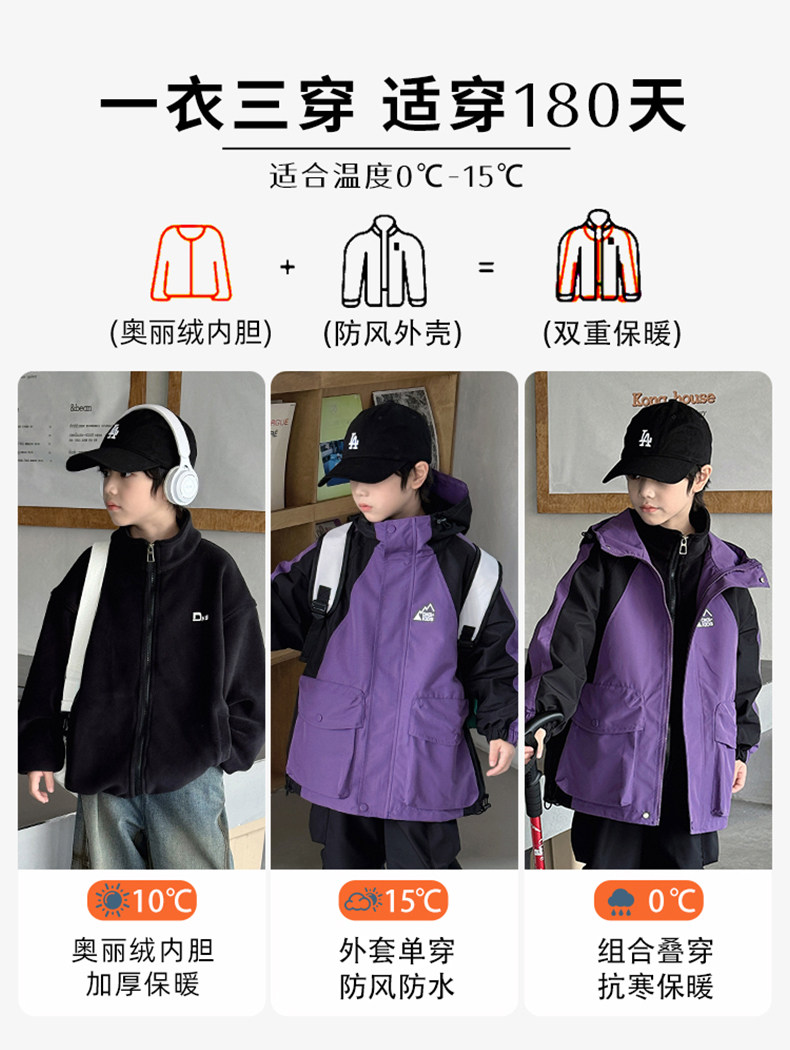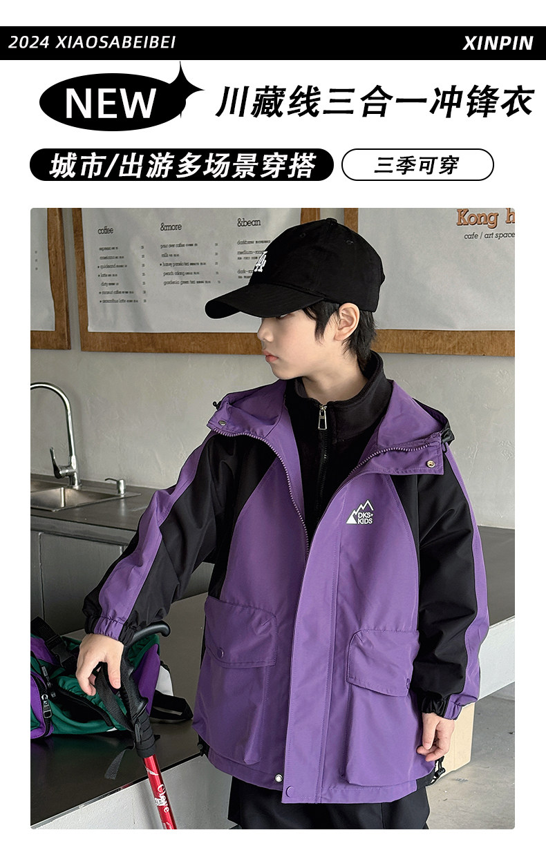 Boys' Jacket Spring and Autumn 2026 New Three-In-One Outdoor Children's Autumn Windproof Winter Top Trendy