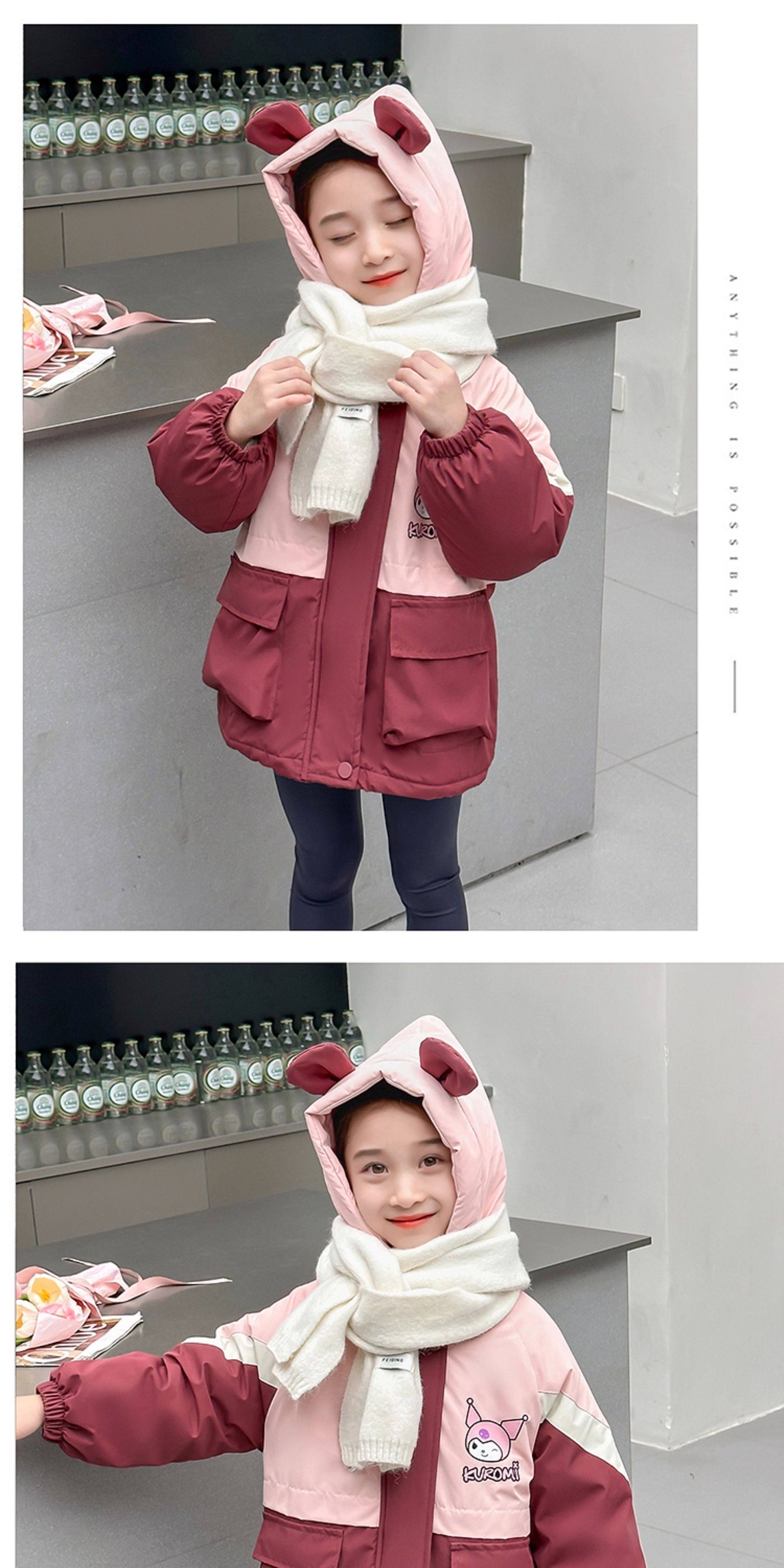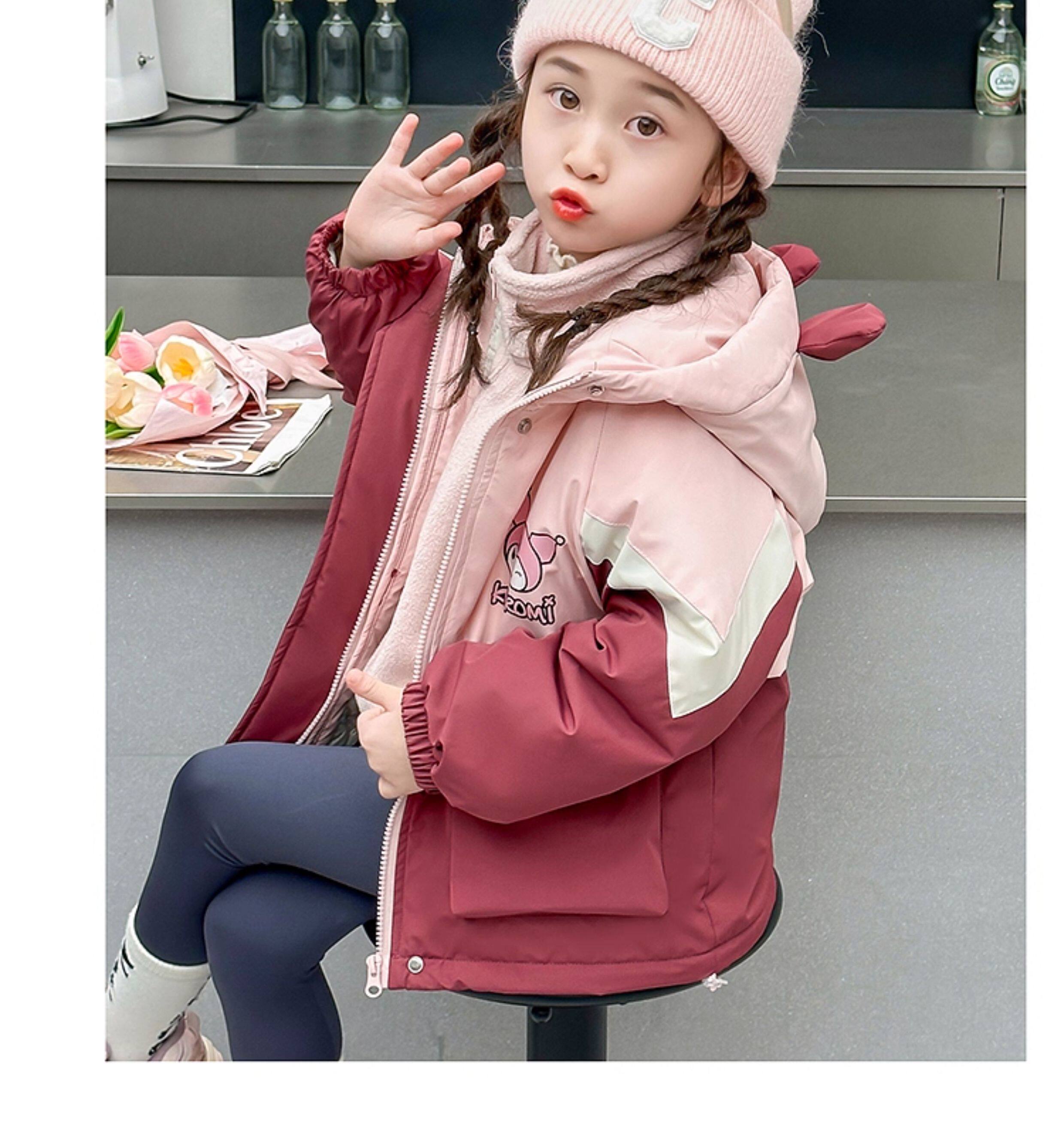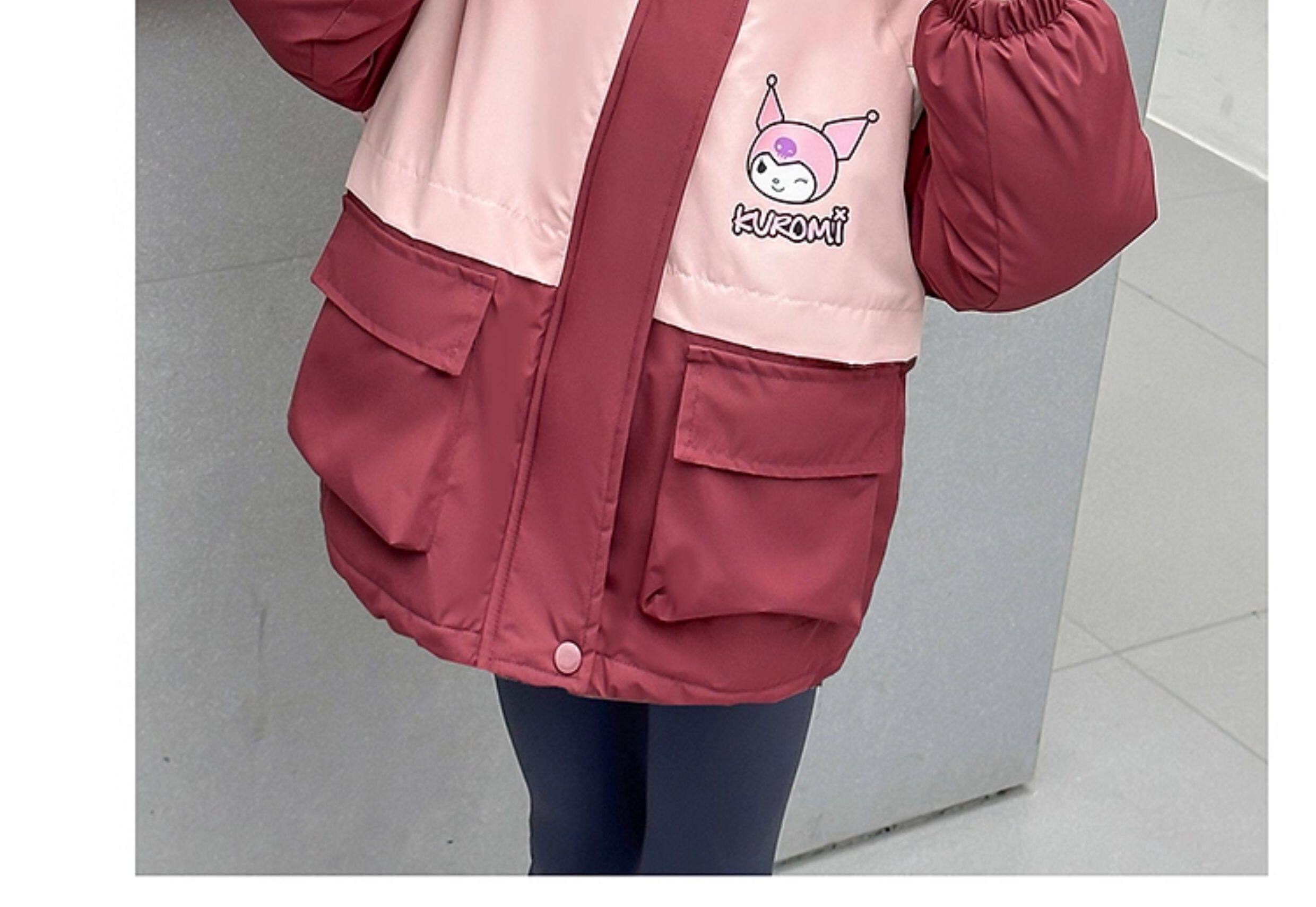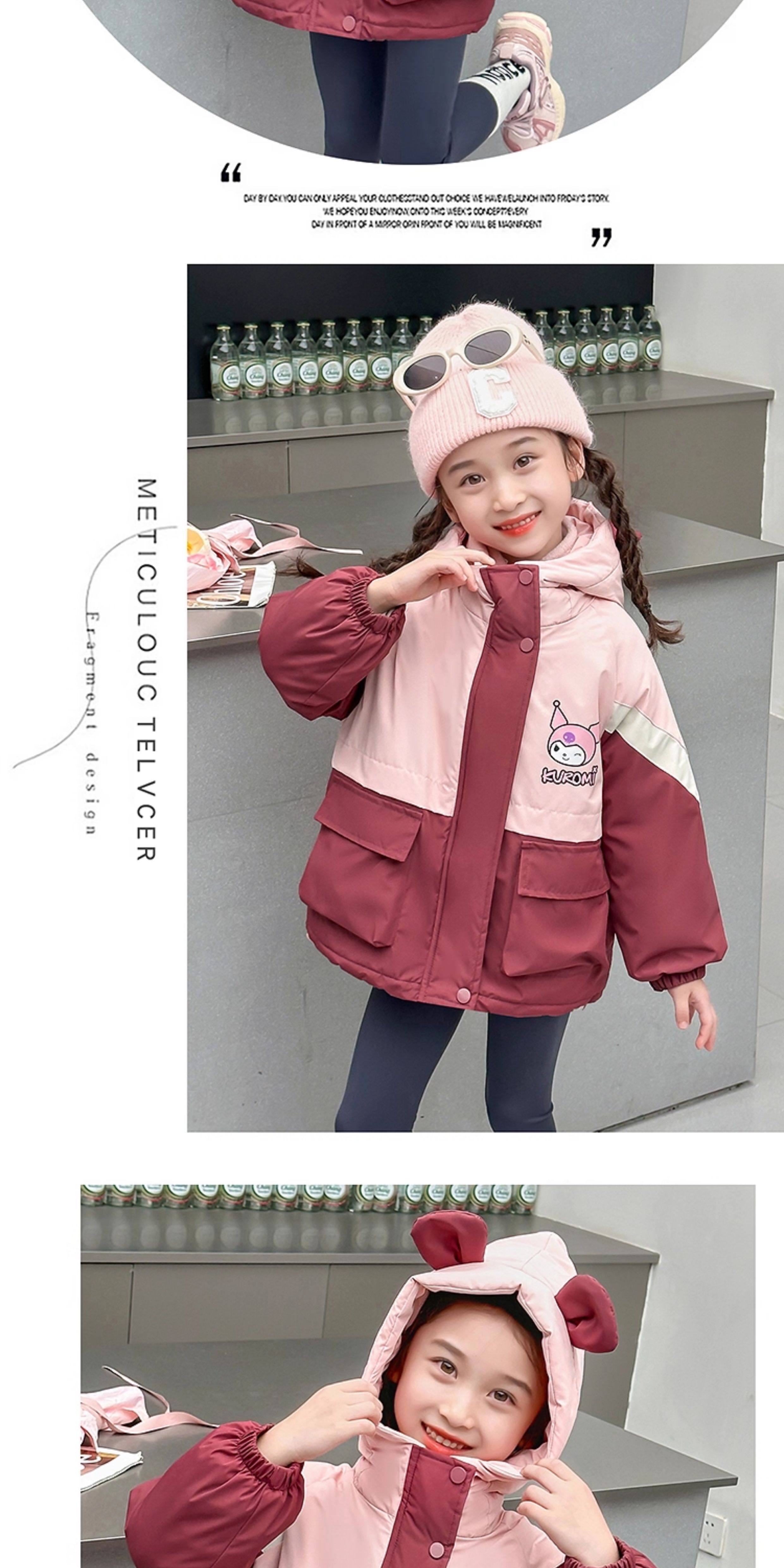 Kuromi Girls' Windbreaker Jacket for Autumn and Winter, Stylish Children's Detachable Three-In-One Padded Coat for Little Girls