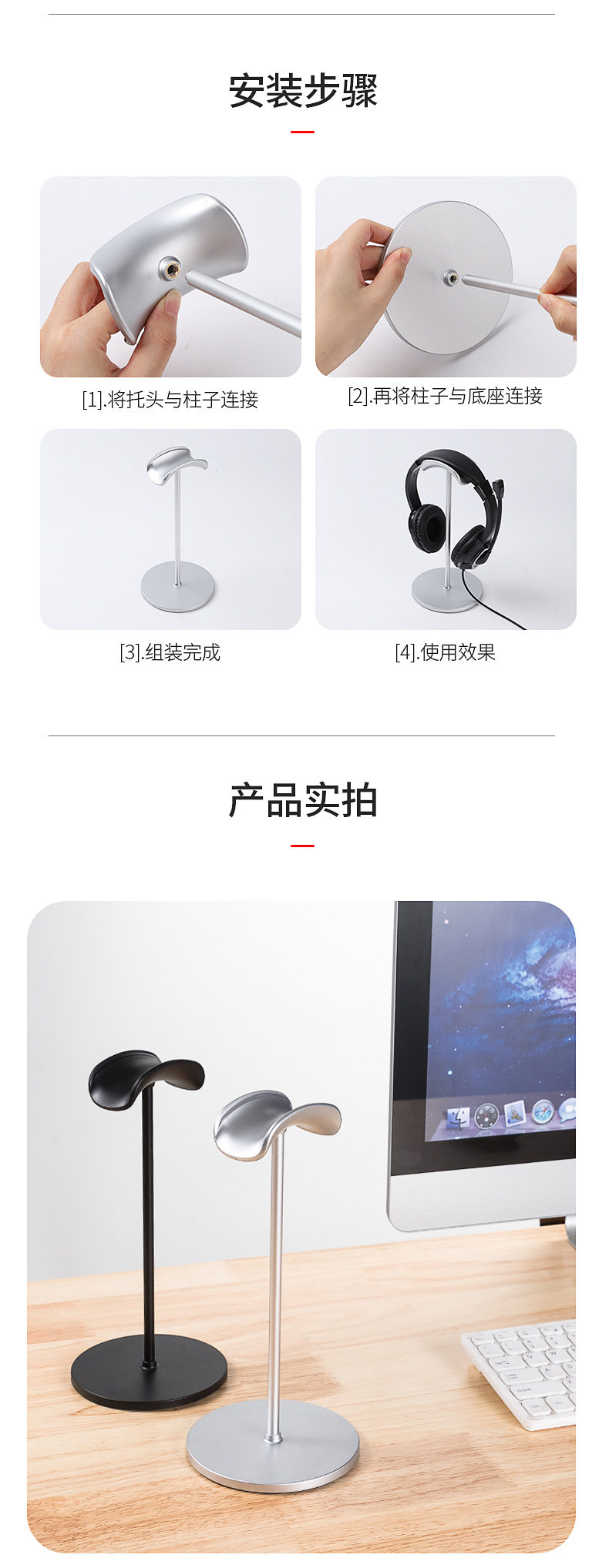 Headphone Stand Universal Detachable Metal Desktop Gaming Headset Storage Rack Desktop Headphone Holder for AirPods Max Sony Bose