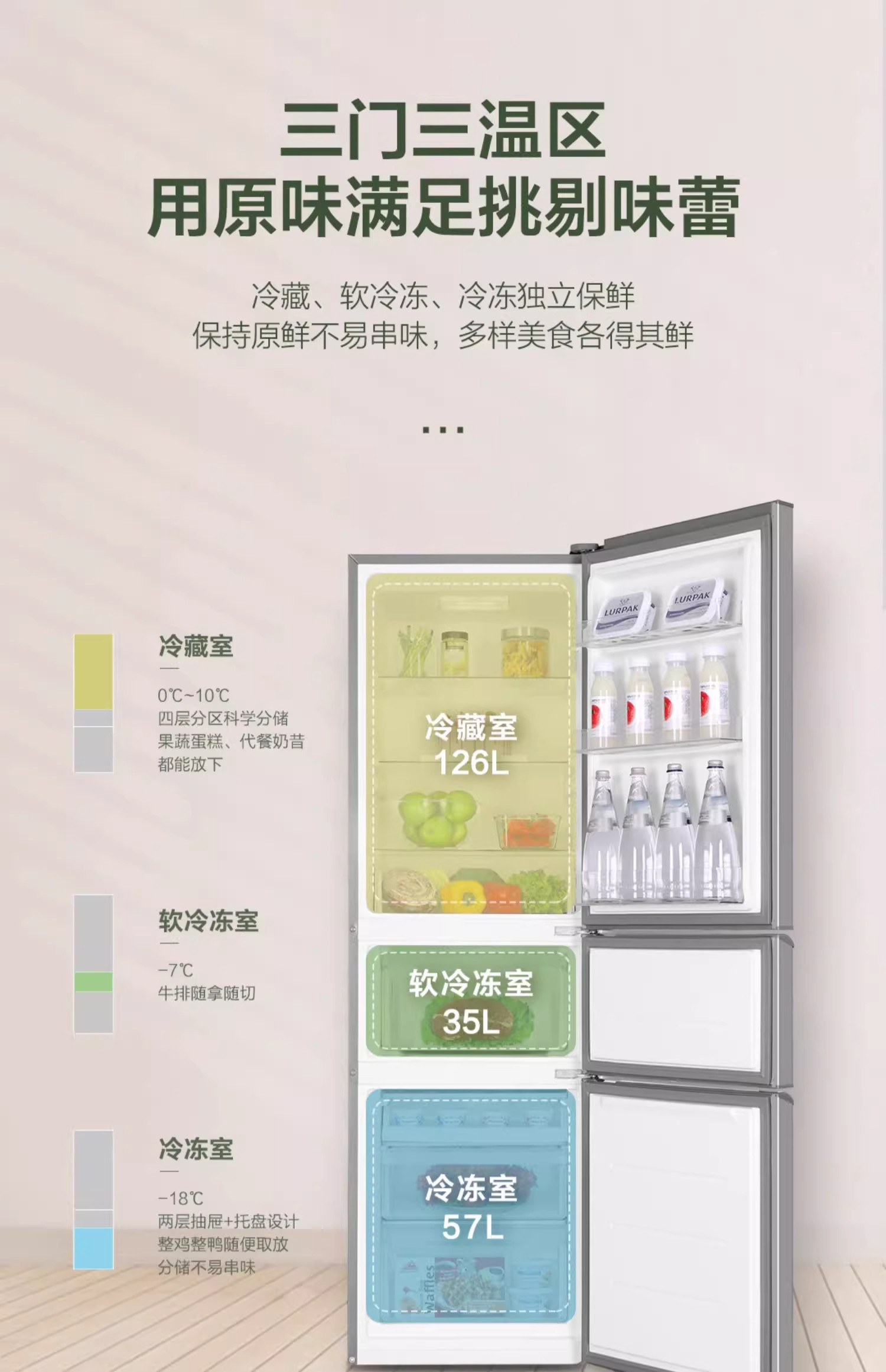 Leader/Commander Bcd-218Llc3Ezs9 Three-Door Energy-Saving Household Small Refrigerator, Ultra-Thin Refrigerator