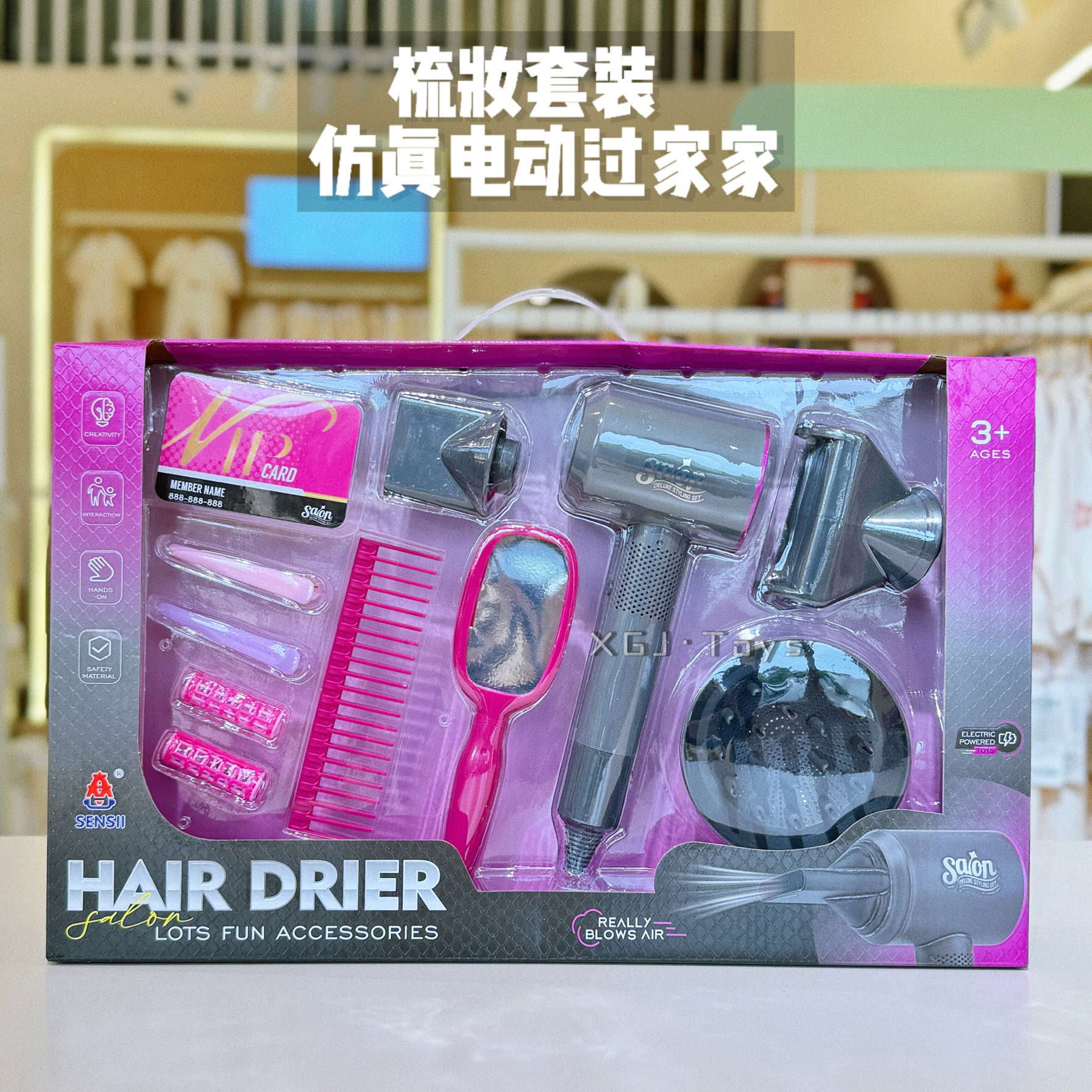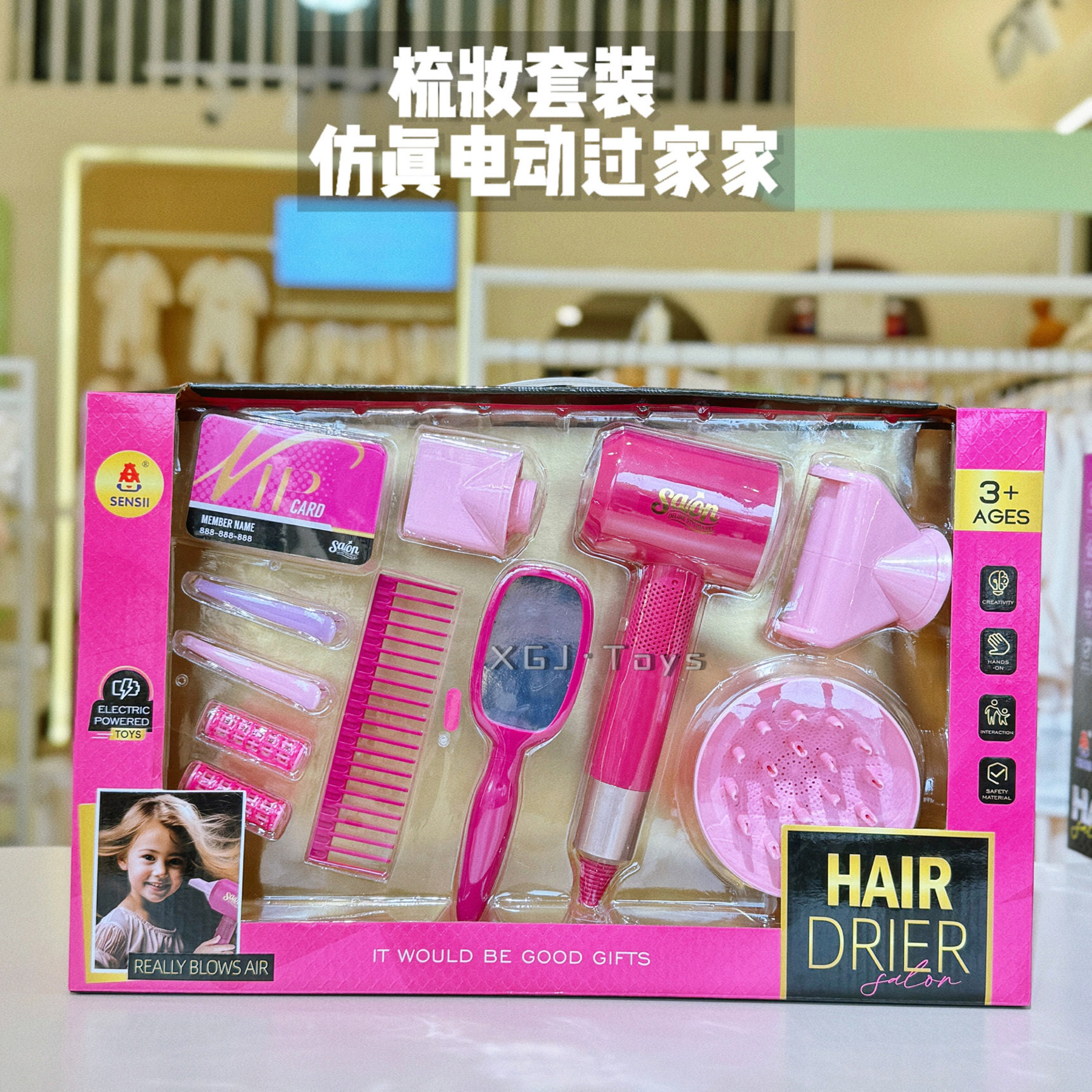 Hair Dryer Children's Pretend Play Salon Toy Set Simulated Hairdressing Tools Barber Haircut Girl Toy
