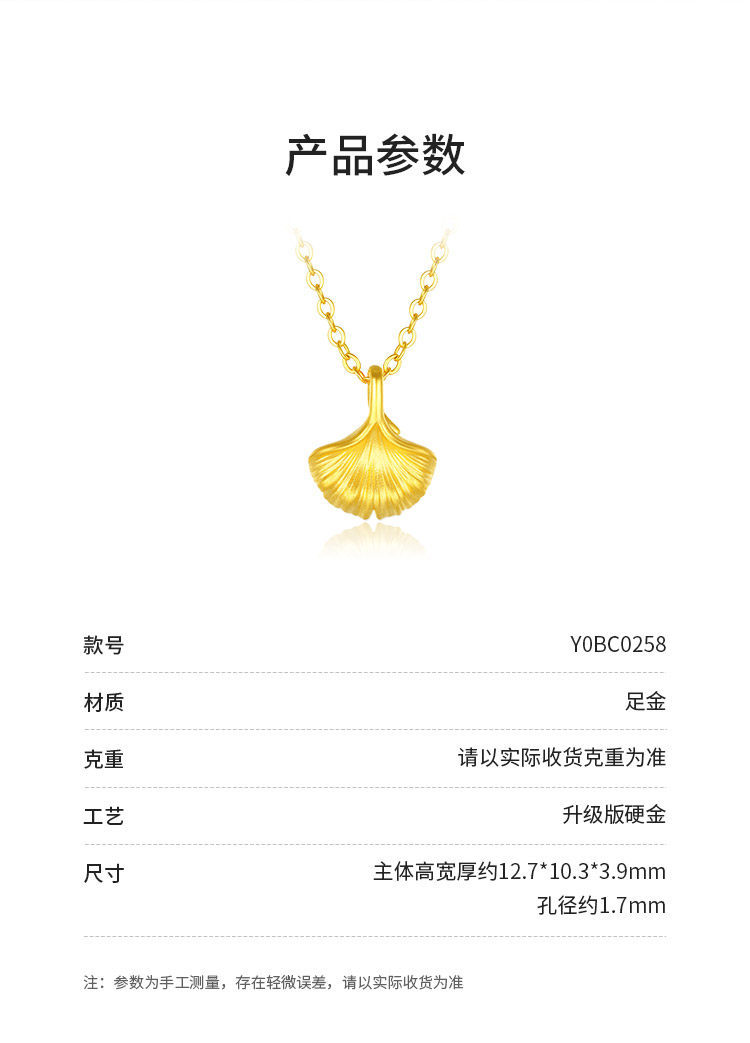 Specifications Gold Ginkgo Leaf Pendant-[about 0.25G/Free Silver Chain]