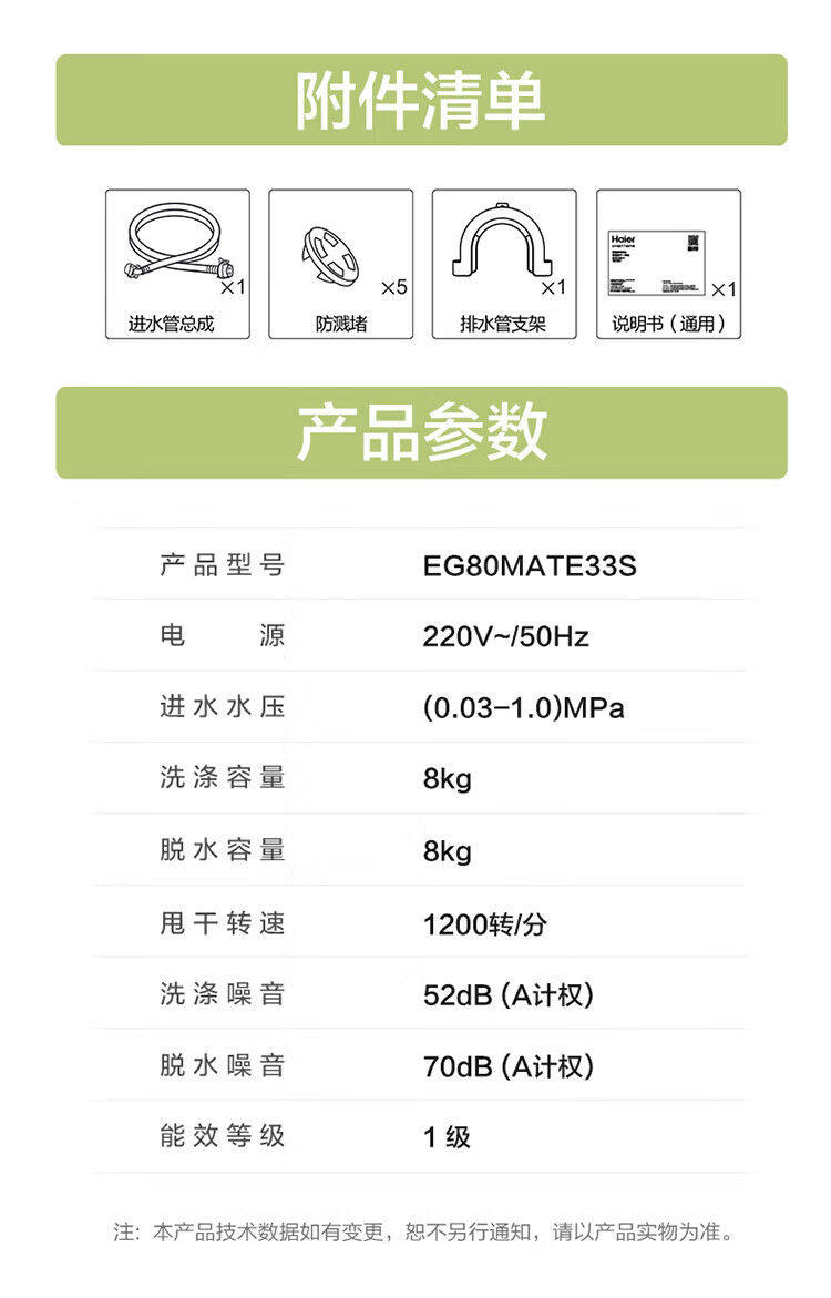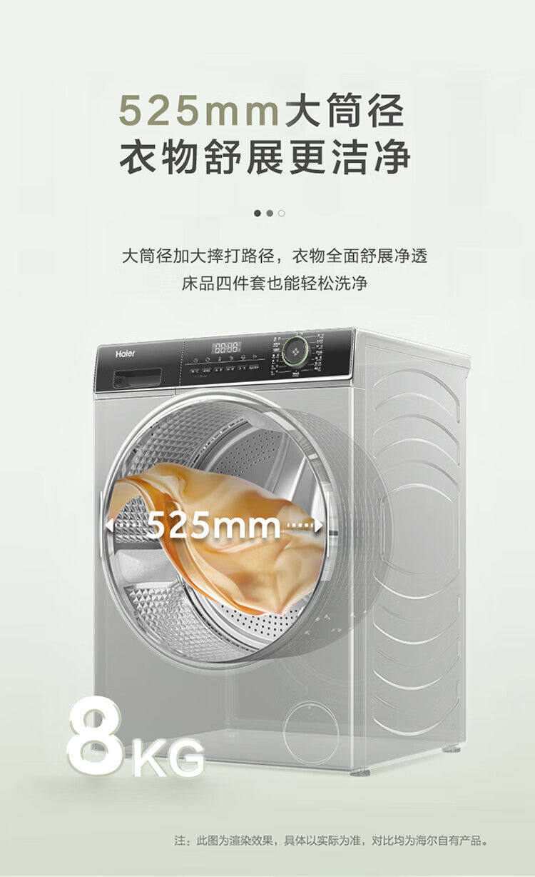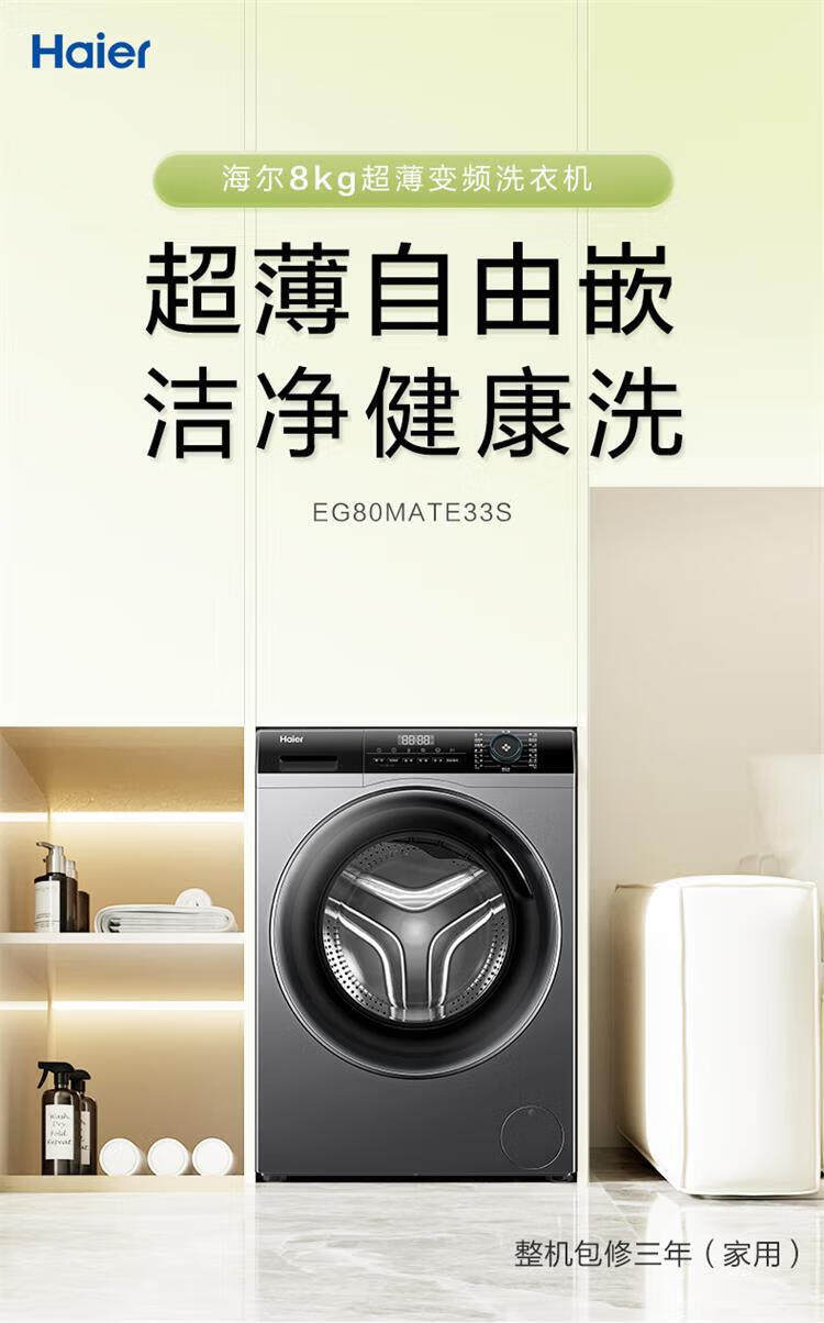 Haier Slim Drum Washing Machine 8kg Household Small Apartment Fully Automatic Frequency Conversion Large Barrel Diameter Eg80Mate33S