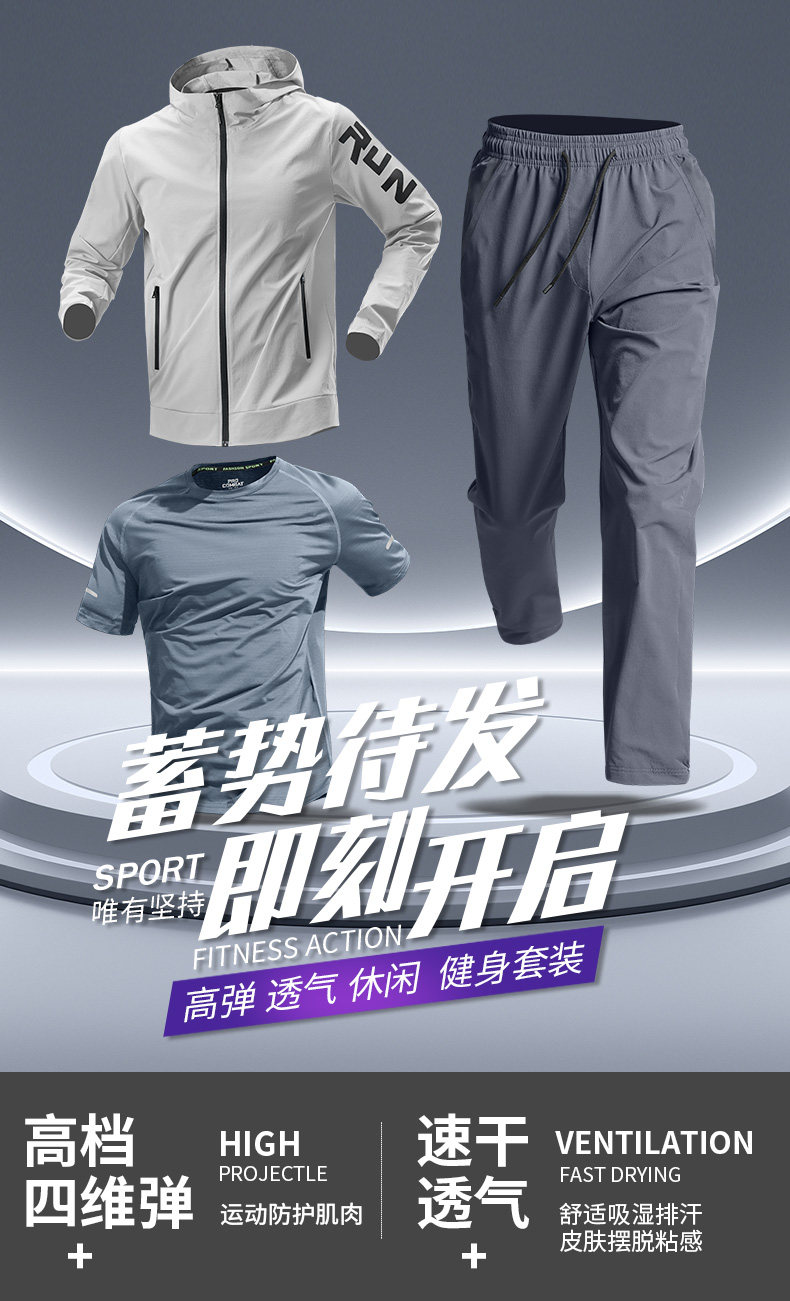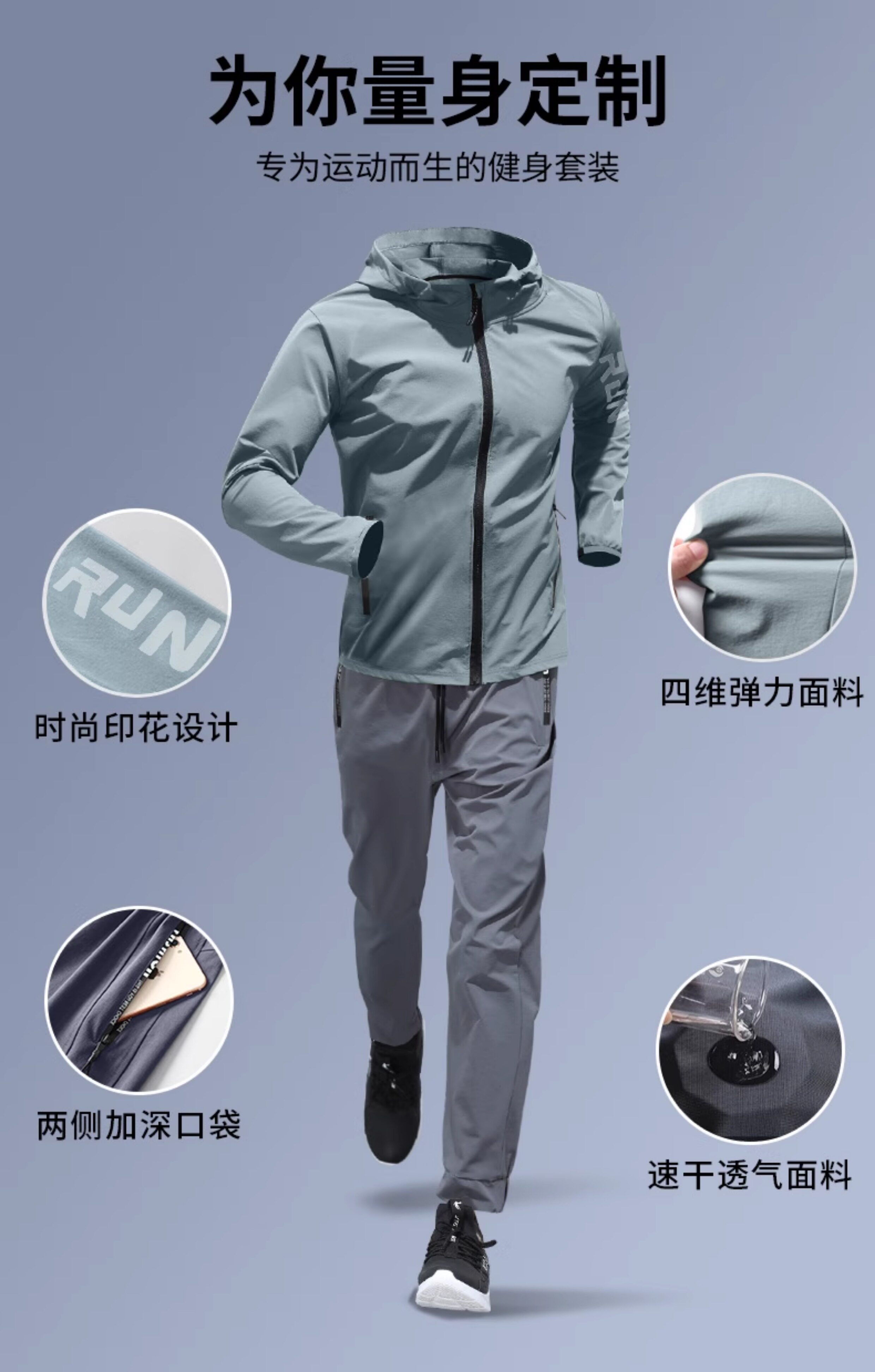 Running sports suit for men, professional morning running suit, autumn fitness casual suit, autumn and winter outdoor quick-drying cycling training
