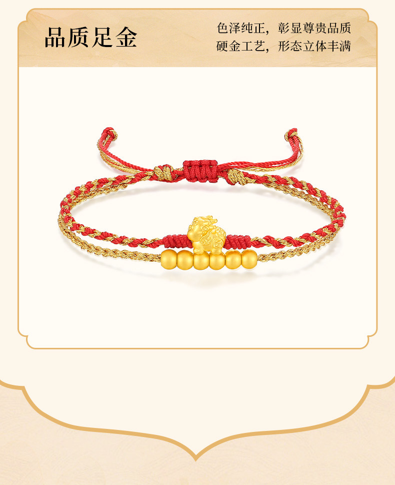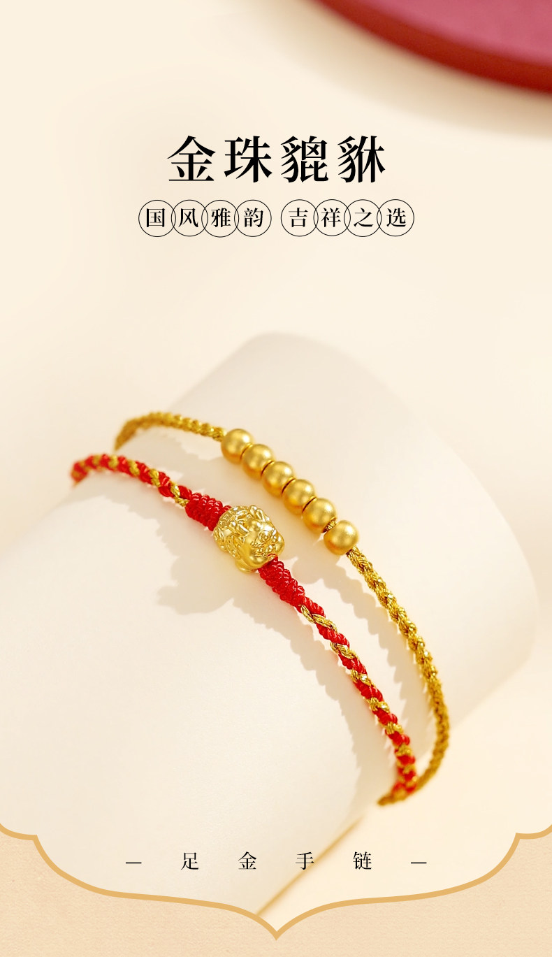 New Year's gift Zhou Taisheng gold Pixiu transfer beads women's gold bracelet small gold beads braided hand rope hand ornaments natal