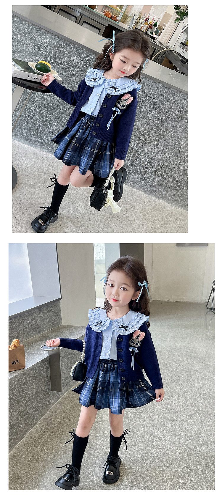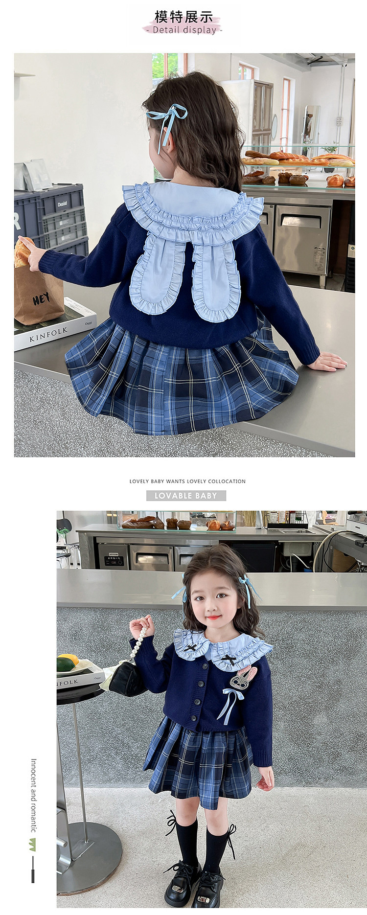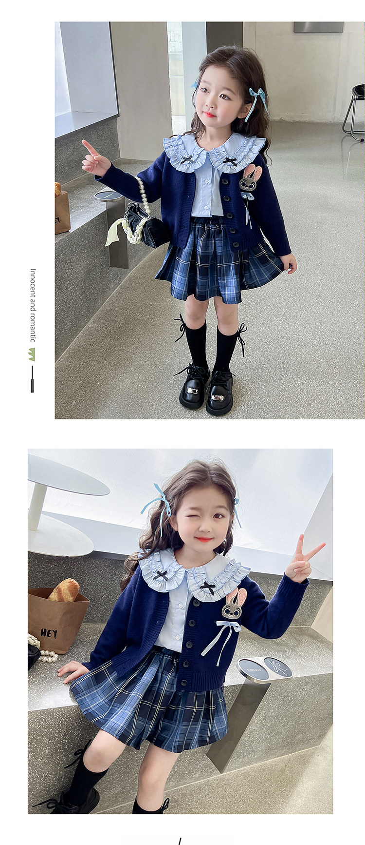 Girls' Autumn Clothing 2024 New Set, Girl's Bunny Police Officer Outfit, Spring and Autumn Children's Jk Skirt, Stylish and Fashionable