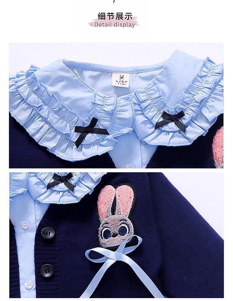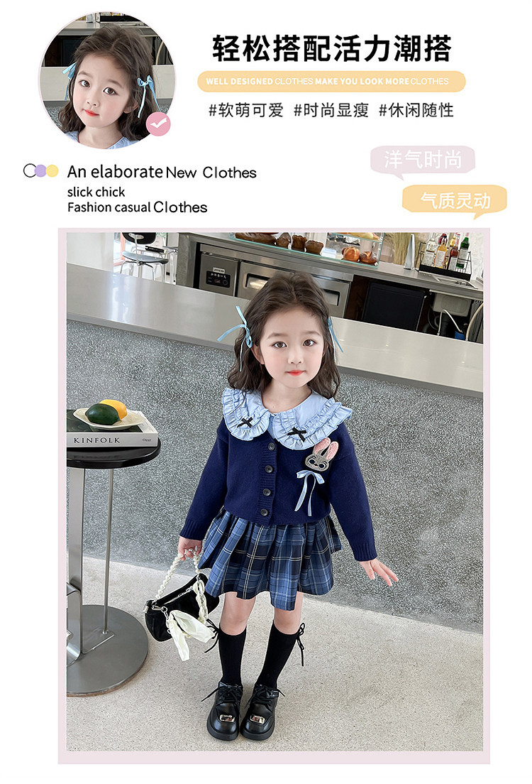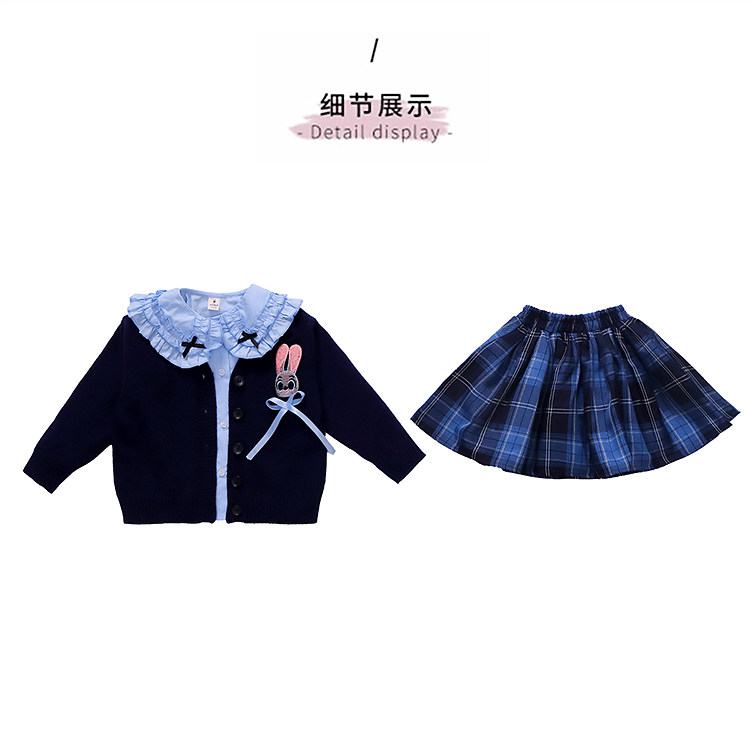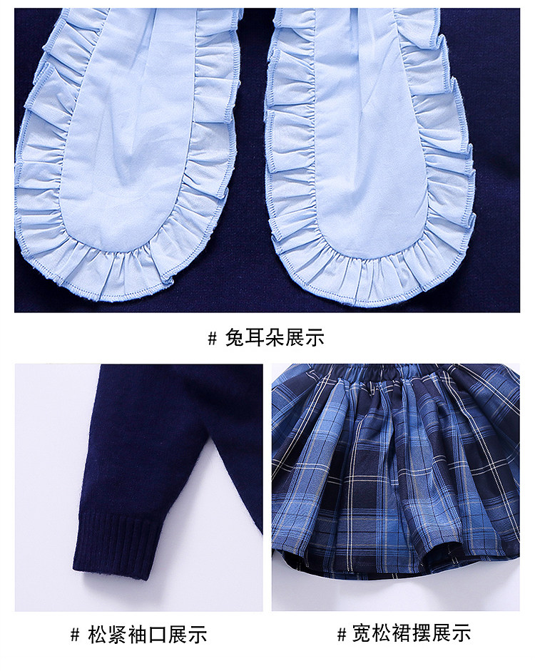 Girls' Autumn Clothing 2024 New Set, Girl's Bunny Police Officer Outfit, Spring and Autumn Children's Jk Skirt, Stylish and Fashionable