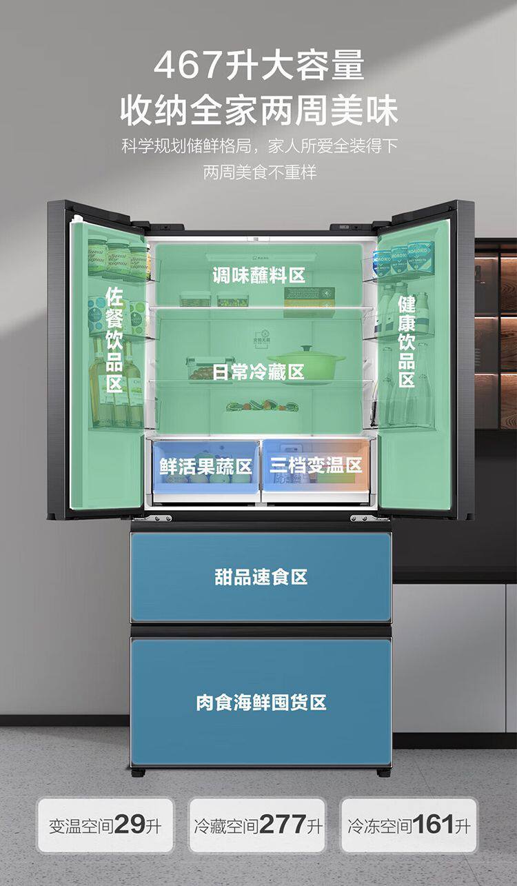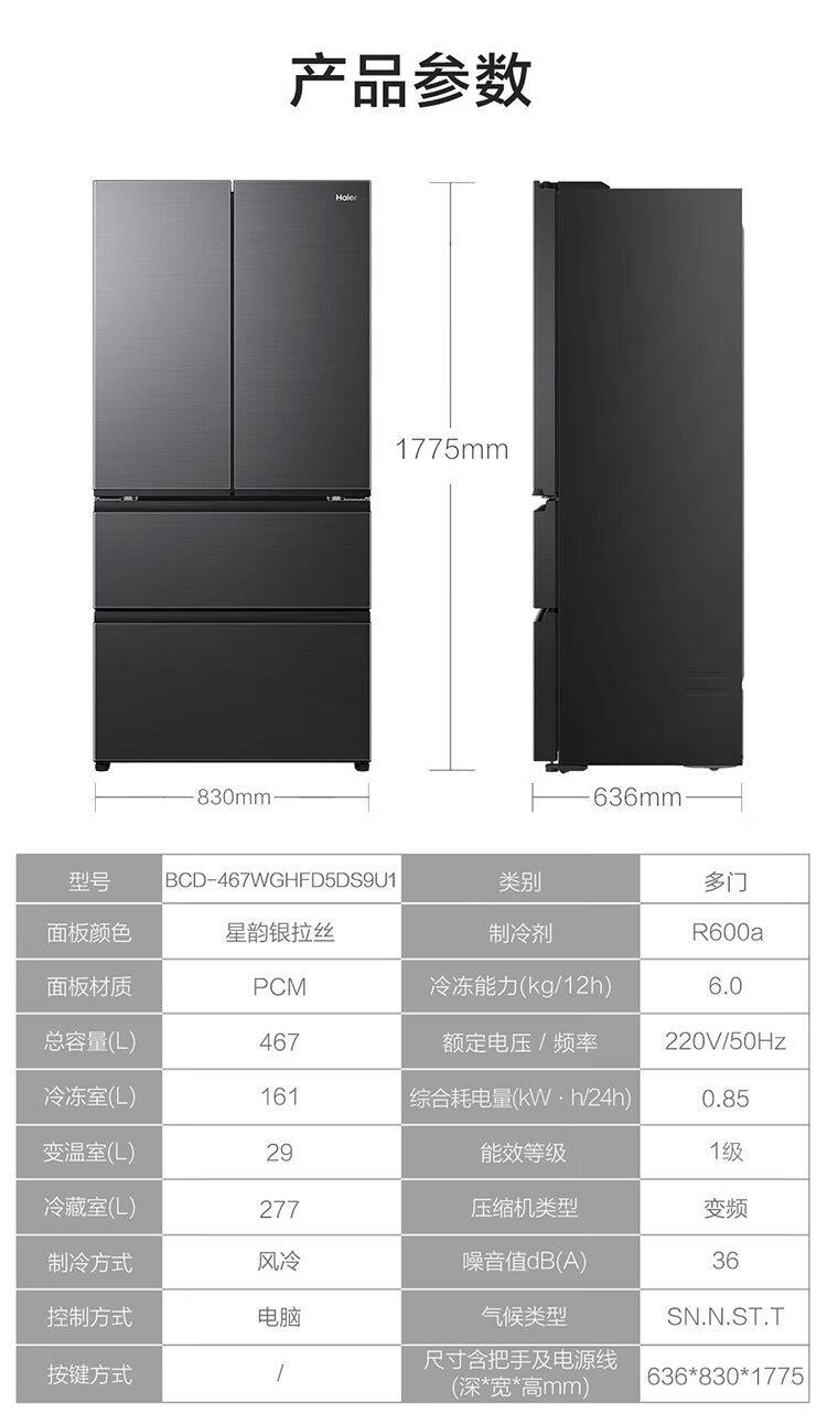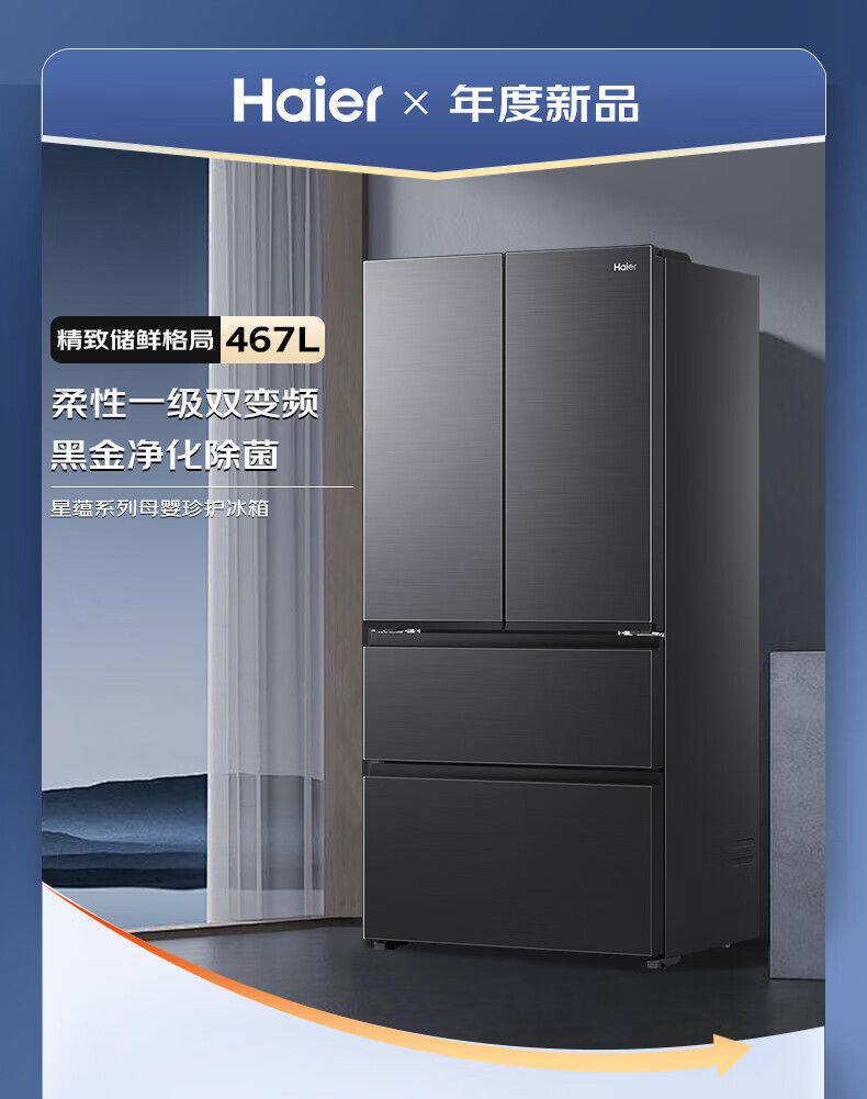 Haier Refrigerator French Multi-Door Household First-Class Frequency Conversion Air-Cooled Frost-Free Ultra-Thin Bcd-467Wghfd5Ds9U1