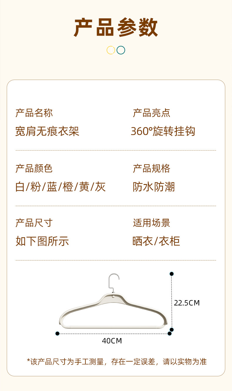 Sort by color Wide shoulder coat hanger, cream white, widened and thickened without bulging/upgraded metal hook,Large coat hanger with wide shoulders, mousse pink, widened and thickened without bulging/upgraded metal hook,Large coat hanger with wide shoulders, quiet gray, widened and thickened without bulging/upgraded metal hook,Wide shoulder coat hanger peacock blue widened and thickened without bulging/upgraded metal hook,Large coat hanger with wide shoulders, monsoon orange, widened and thickened without bulging/upgraded metal hook,Wide shoulder coat hanger, sunset yellow, widened and thickened without bulging/upgraded metal hook