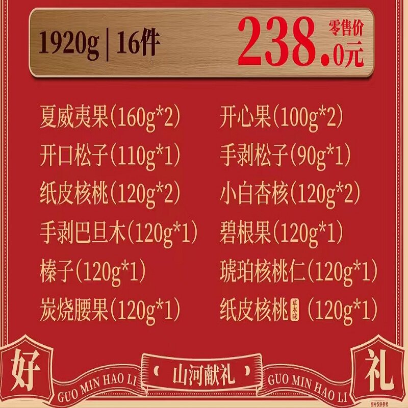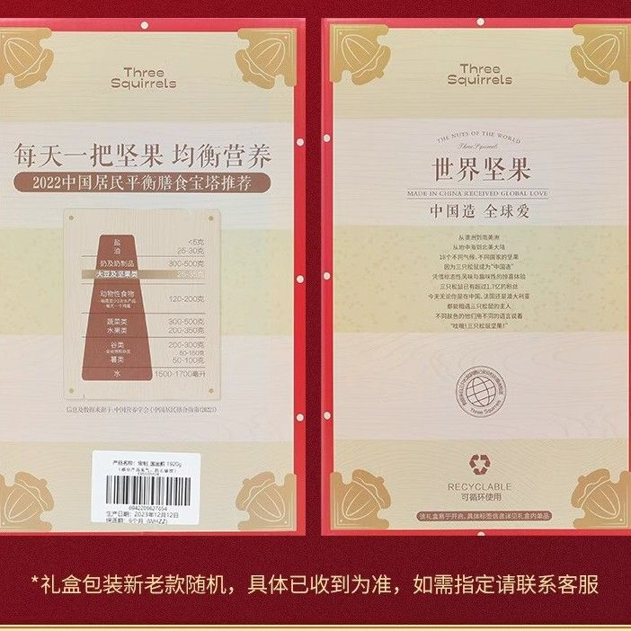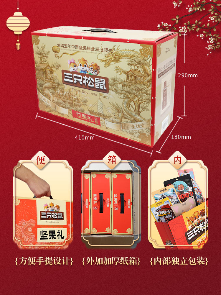 Three Squirrels Nut Gift Box National Gold Edition 1920g/16 Bags Snack Gift Pack Nut Gift Box Whole Box