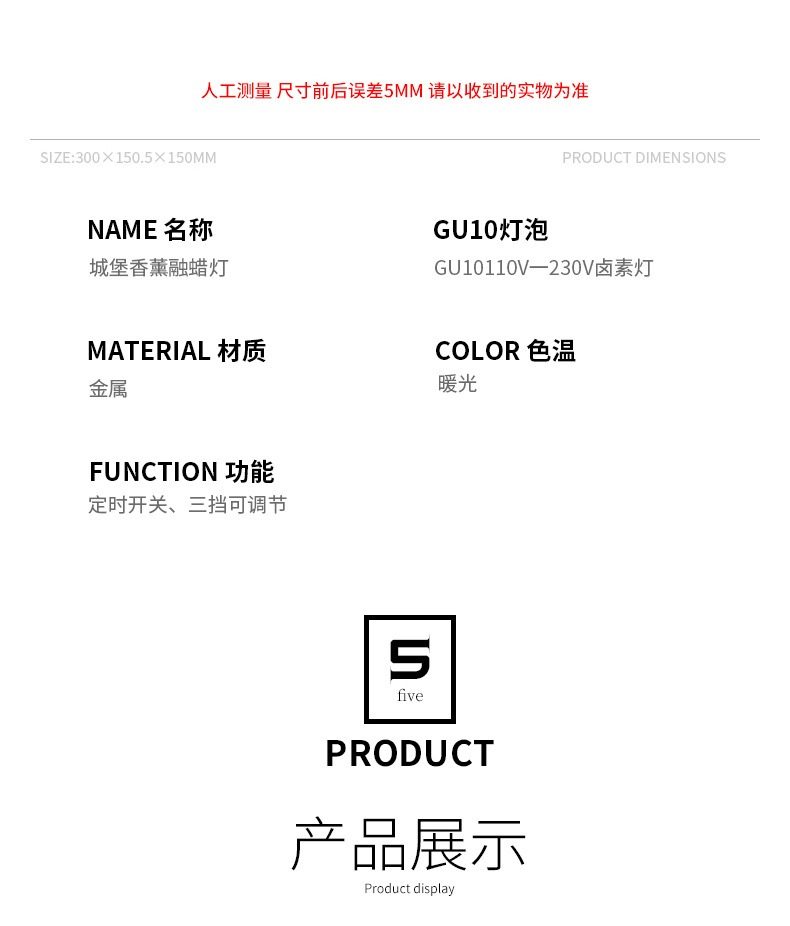 Castle fireless aromatherapy lamp melted wax lamp iron art scented candle melting lamp decorative table lamp atmosphere night light candle melting lamp