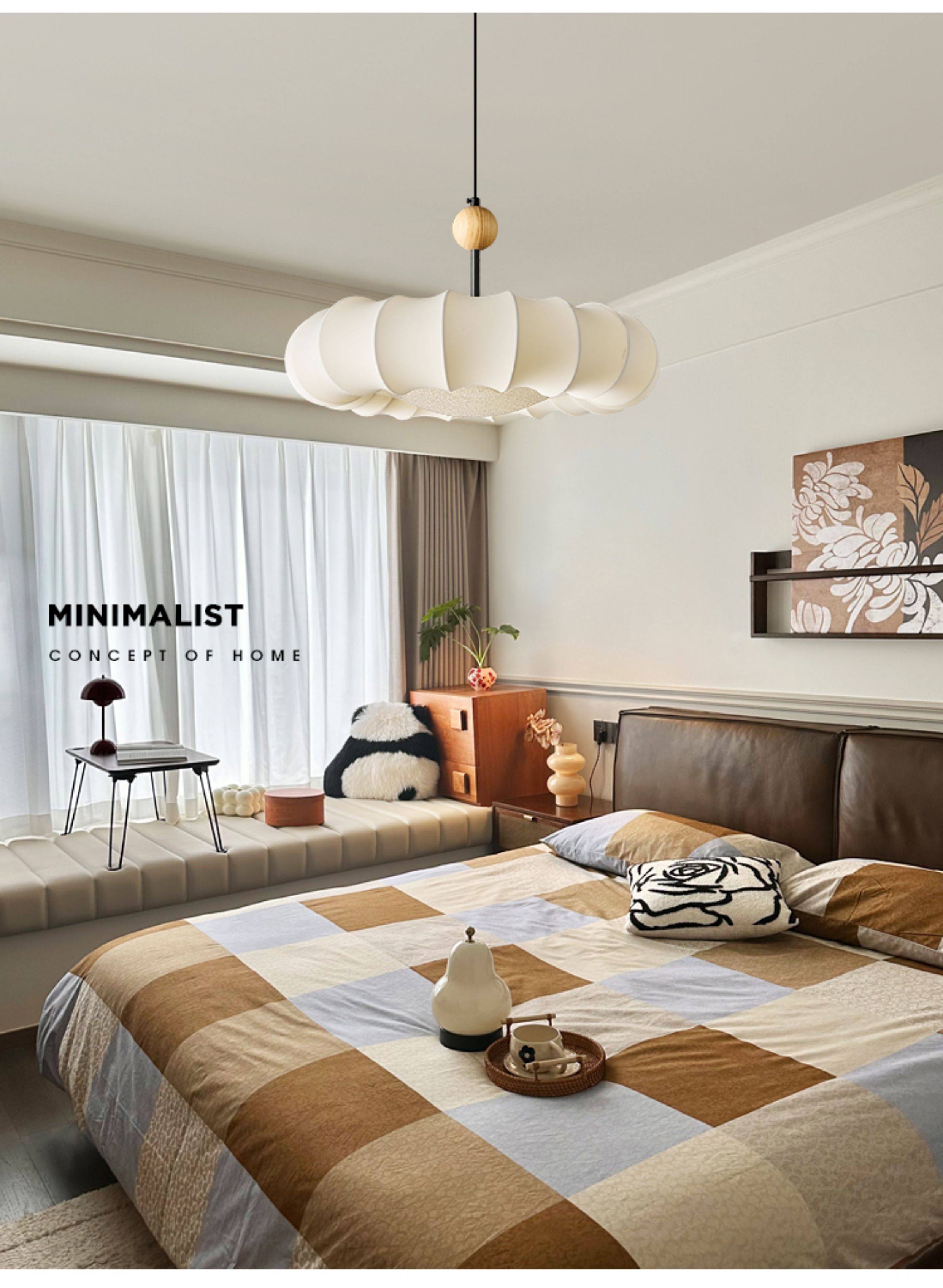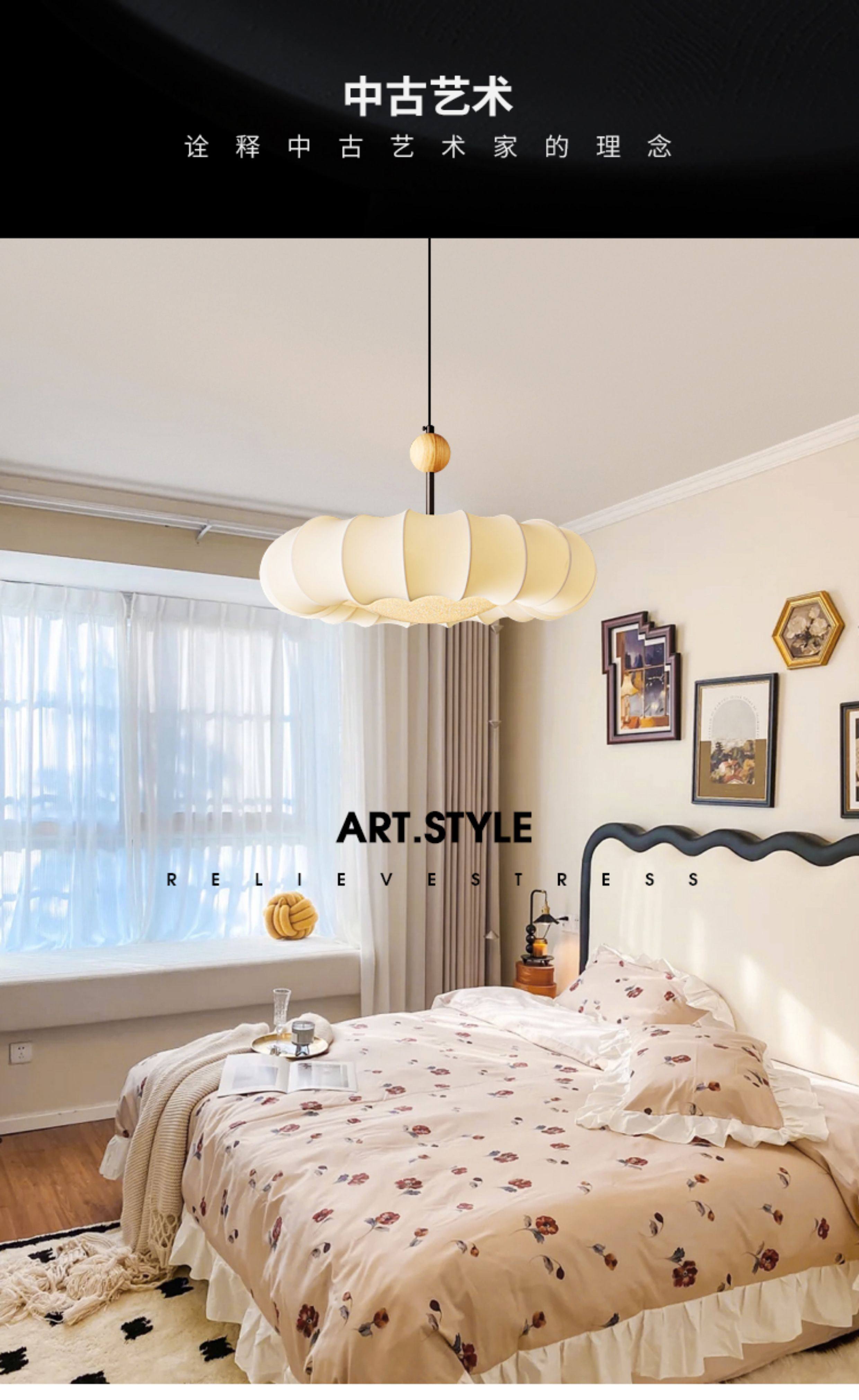 Wabi-Sabi Style Fabric Ceiling Lamp Bedroom Lamp French Mid-Century 2025 New Full-Spectrum Eye-Protection Room Master Bedroom Lighting Fixtures