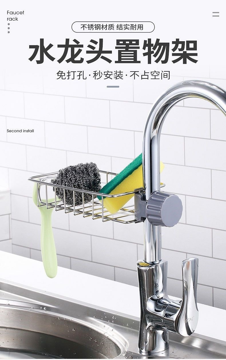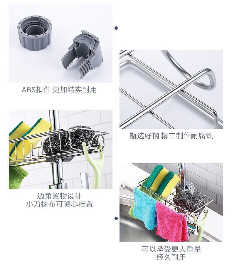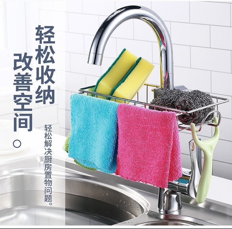 Faucet Rack Stainless Steel Sink Drain Rack Household Kitchen Bathroom Storage for Cleaning Cloths