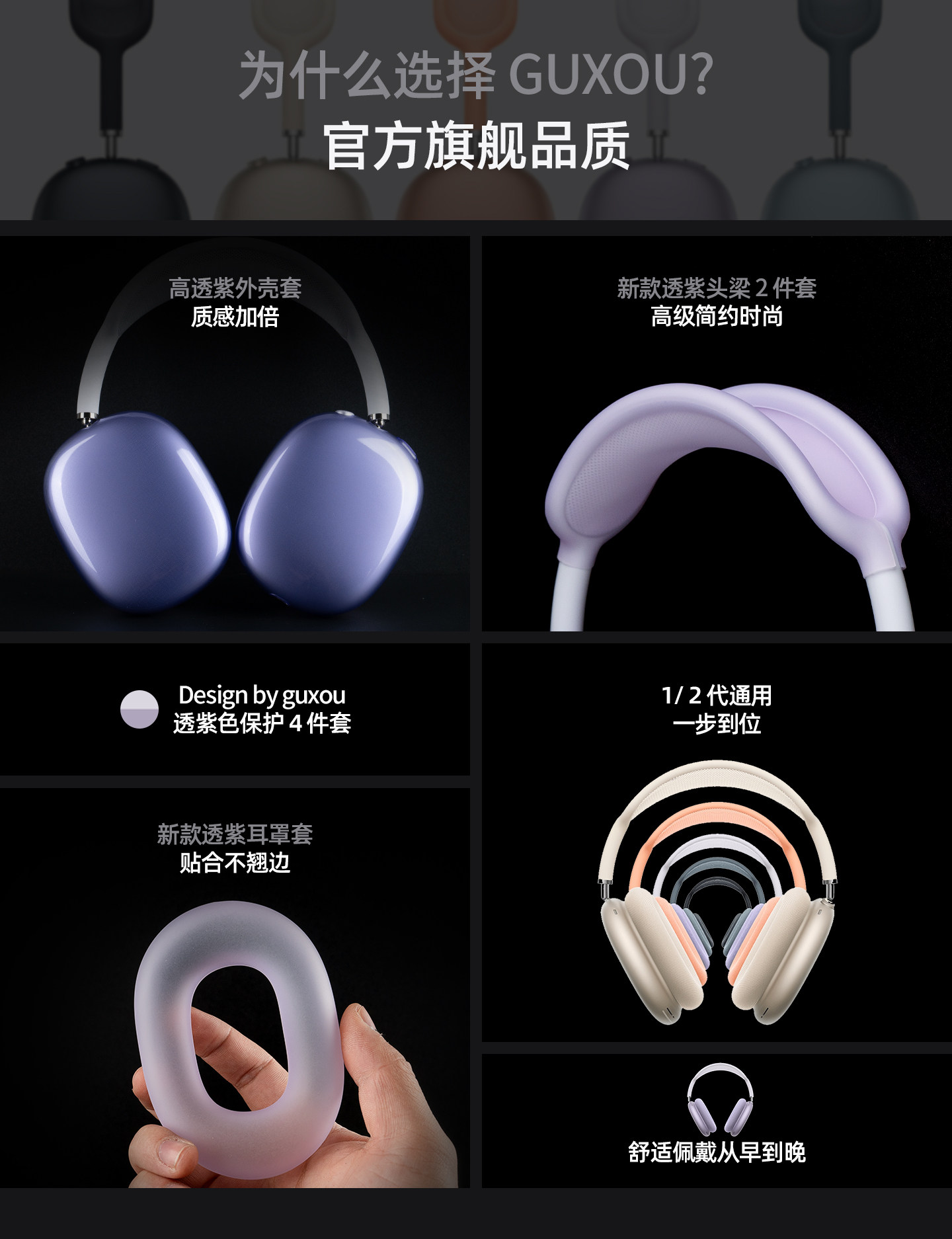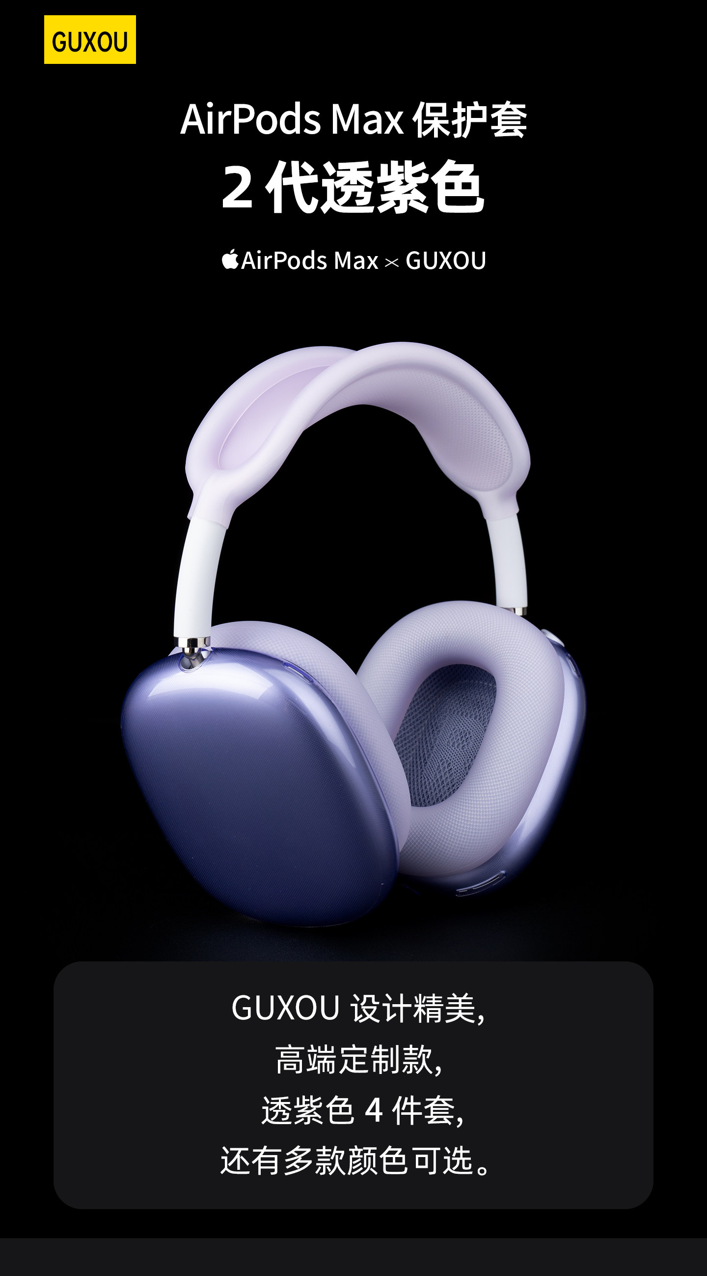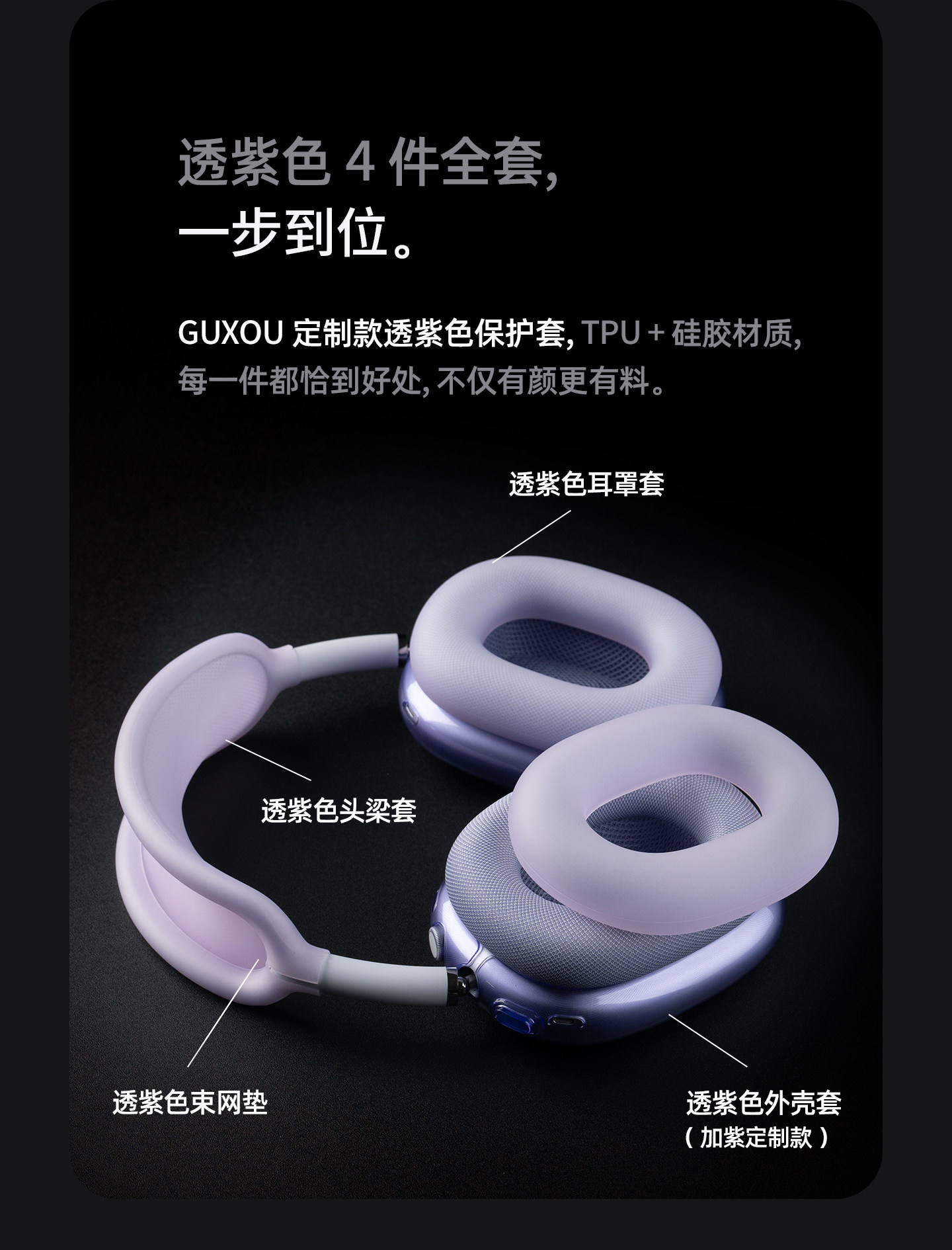 [Guxou New Model]Suitable for AirPods Max 2 Transparent Purple Protective Case Earcup Cover Apple Over-Ear Headphones Max Horizontal Headband Storage Bag Apm Protective Shell Silicone Accessories Set