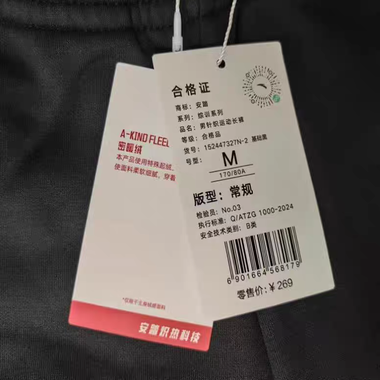 Anta Fleece-Lined Sports Pants | Thickened Warm Sports Trousers Men's Knitted Jogger Pants 152447327N