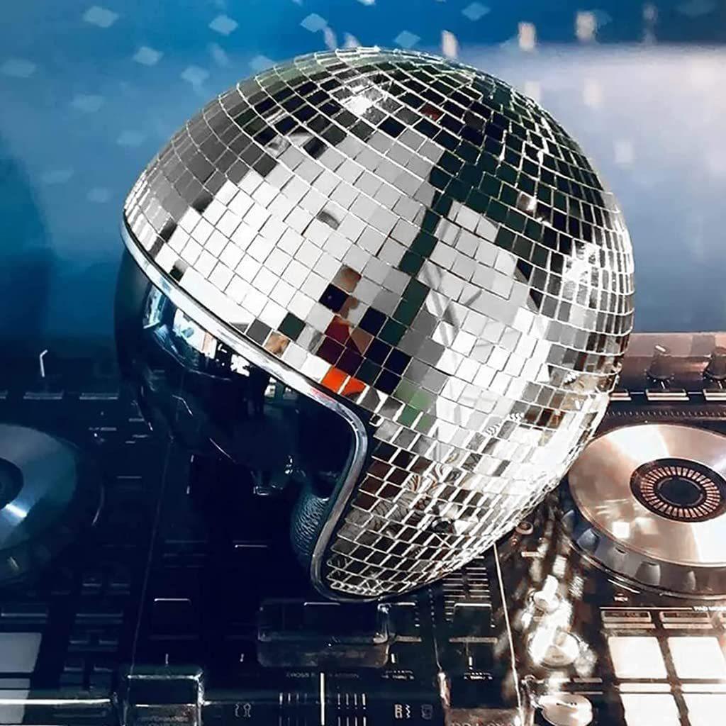 Disco Ball Helmet with Retractable Mirror, Reflective Ball Helmet