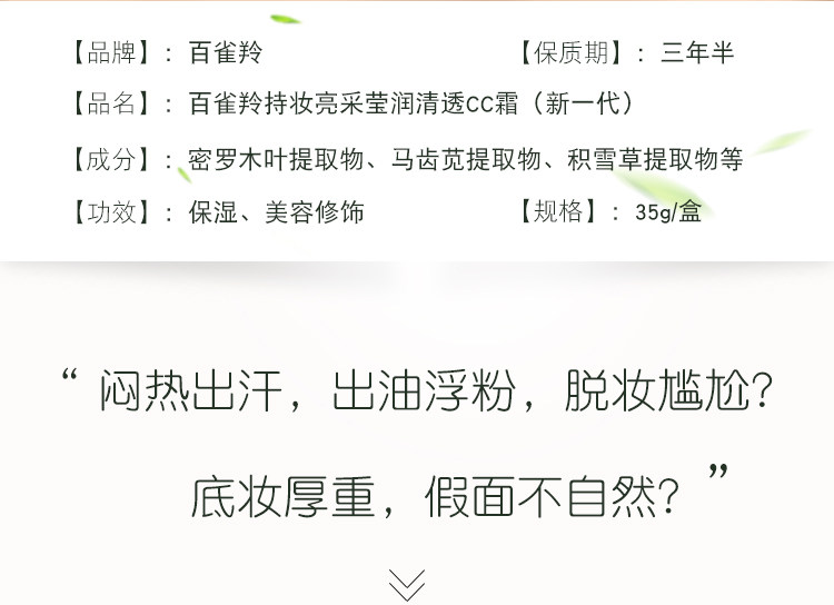 Product Name Pechoin Long-Lasting Bright and Clear Cc Cream (New Generation)
