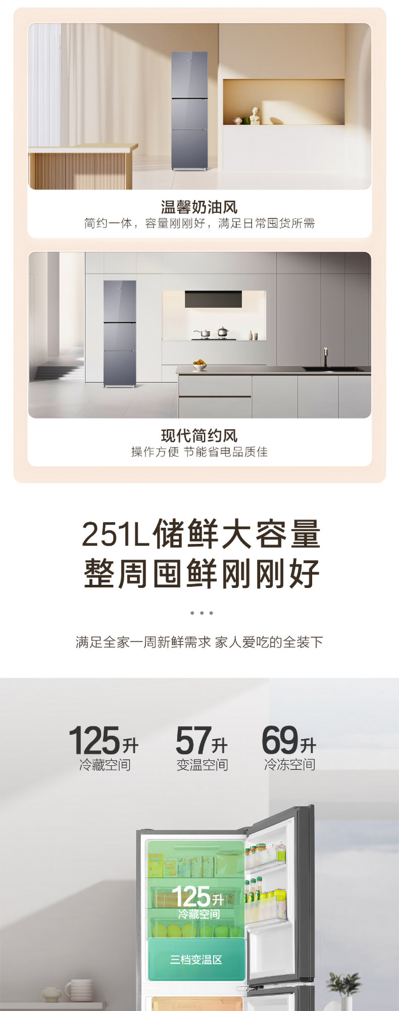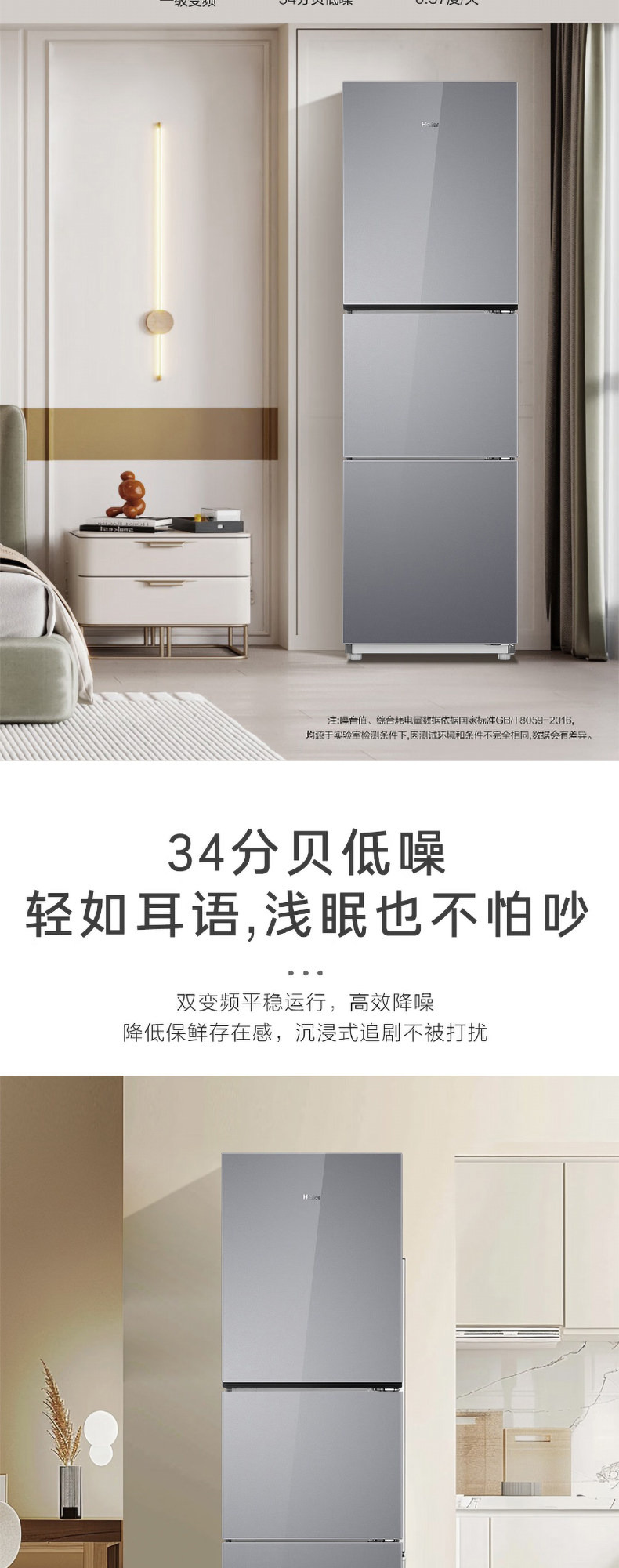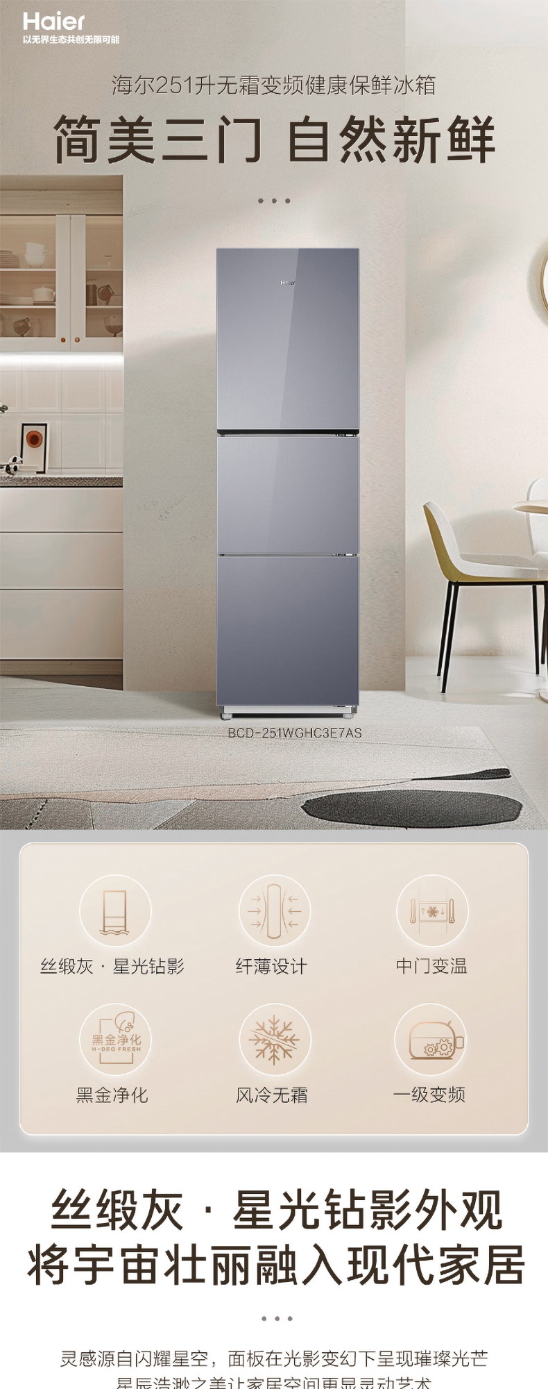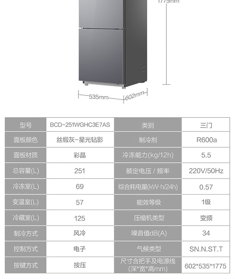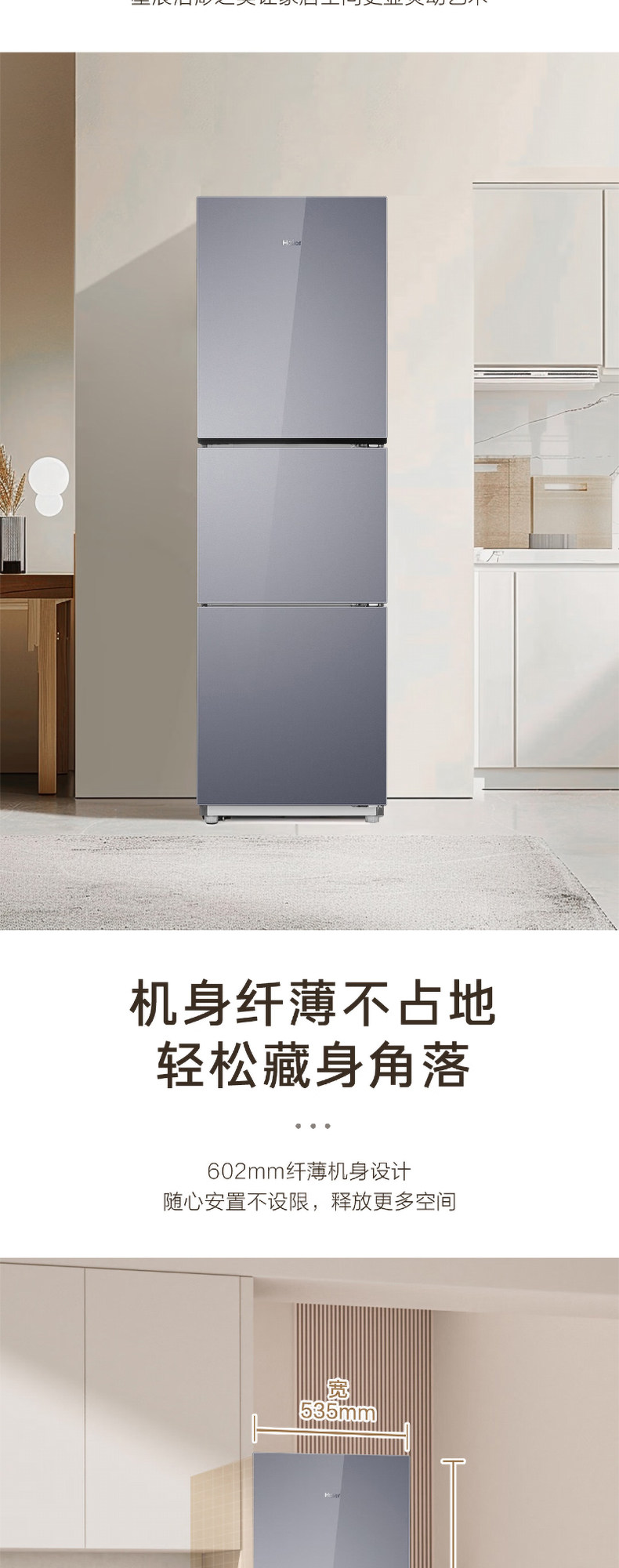 Haier 251L refrigerator air-cooled frost-free household double-door frequency conversion small three-door multi-door rental medium-sized two-door