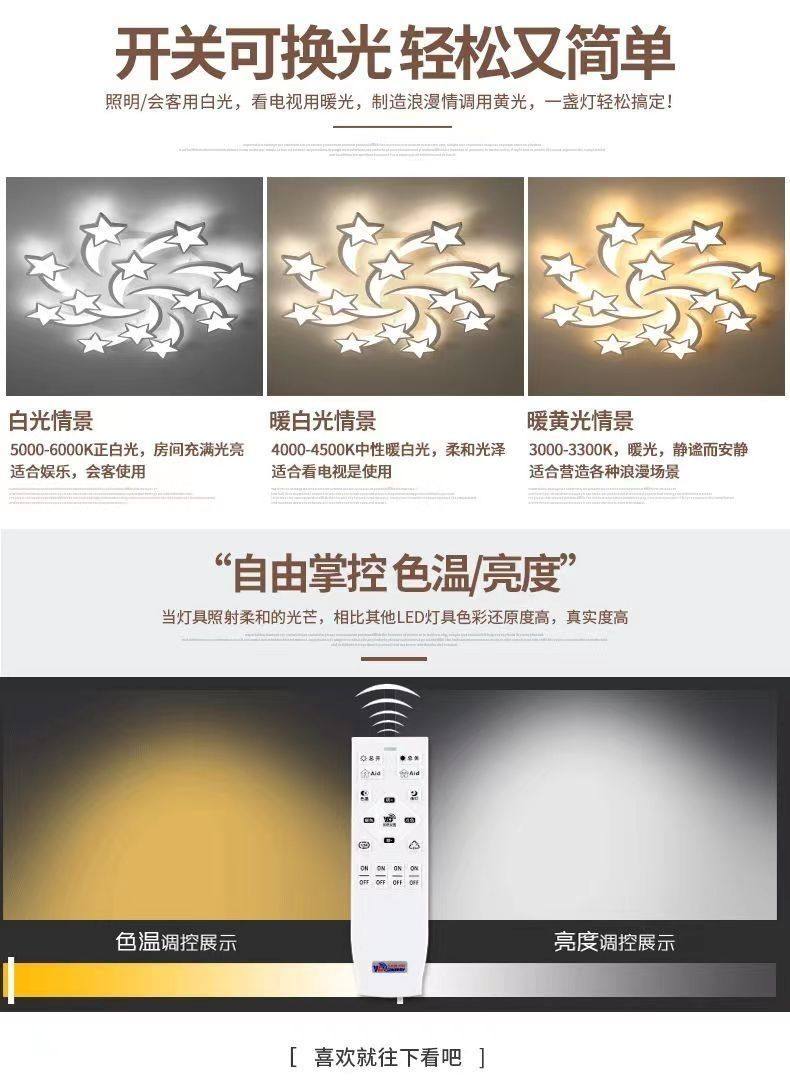Control Type White Light (Warm Light Remarks, Please Contact Customer Service),Three Color Dimming,Stepless Dimming Comes with Remote Control,Tmall Genie + Remote Control