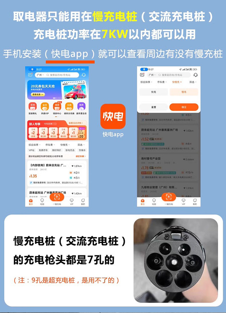 New Energy Charging Pile Adapter 220V Ac 7-Pin Slow Charging Pile Converter Plug for Rv, Electric Vehicle, Electric Motorcycle