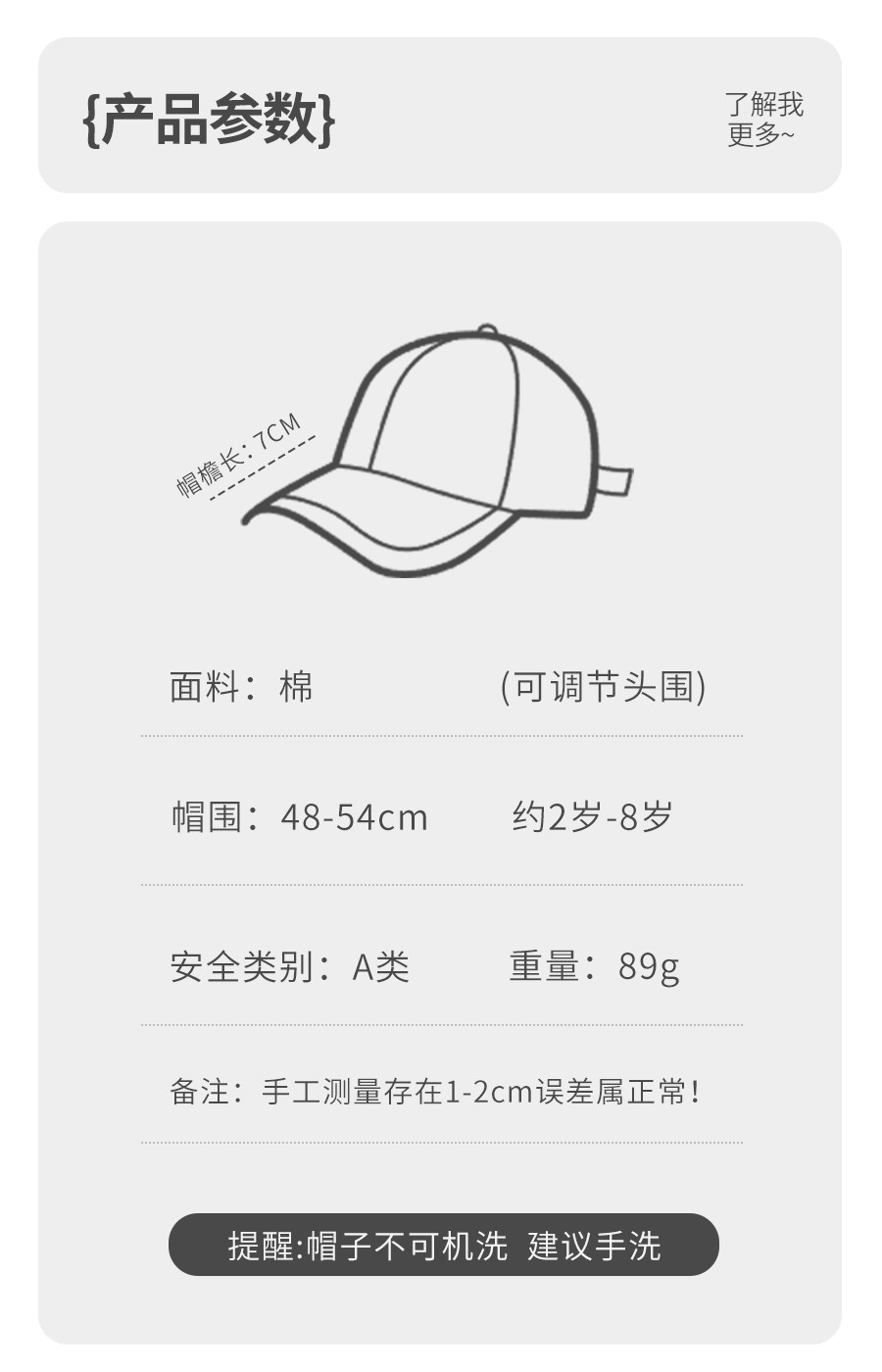 Applicable age Head circumference 48-54cm, about 2~8 years old