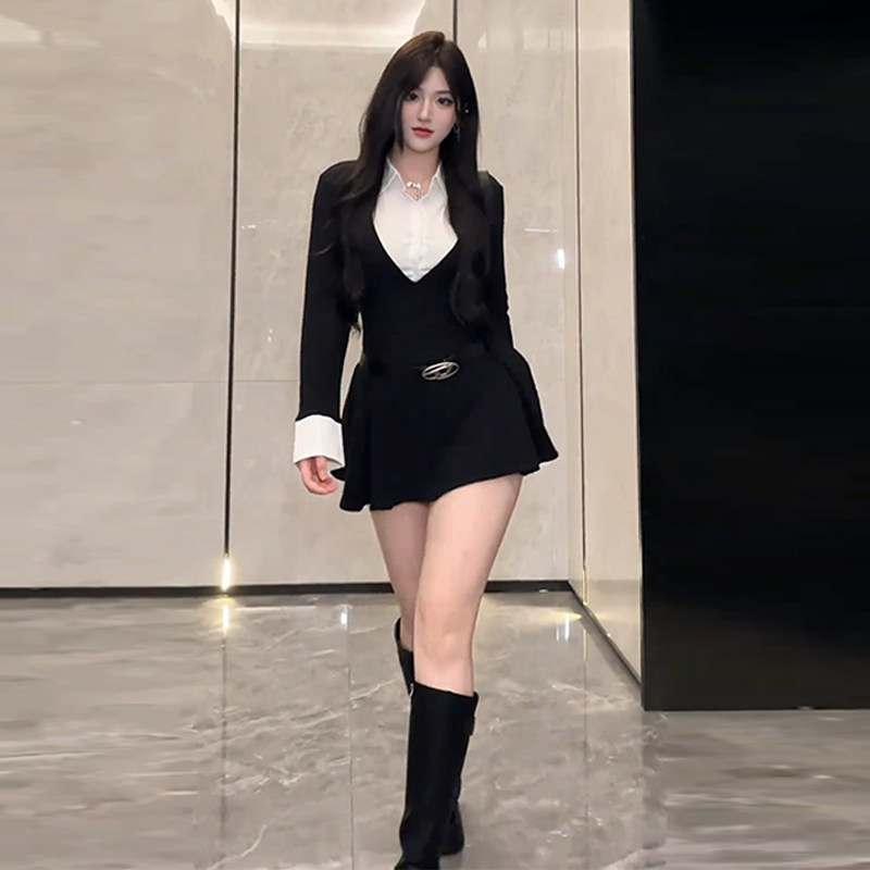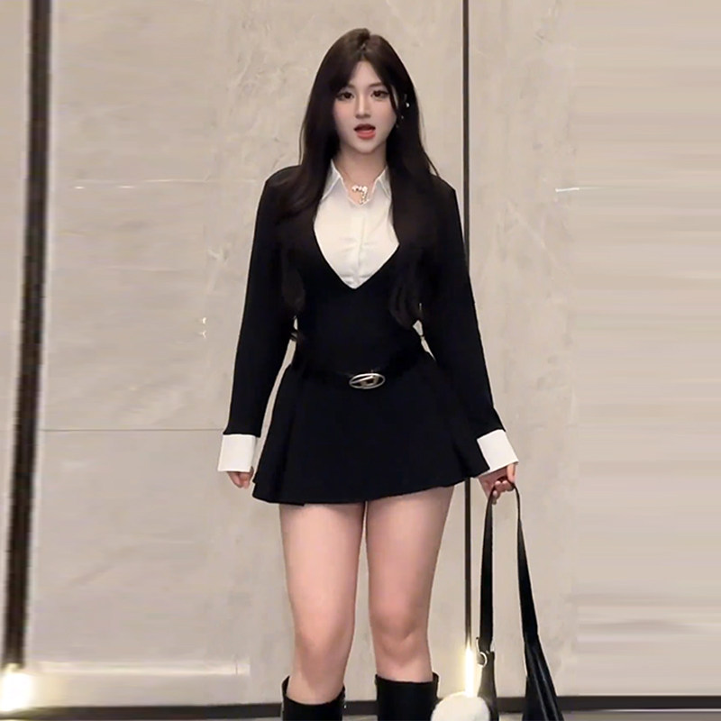 Plus-Size Pure and Alluring Style Two-Piece Shirt Dress for Women, Autumn and Winter, Slimming Waist, Niche Elegant Short Skirt