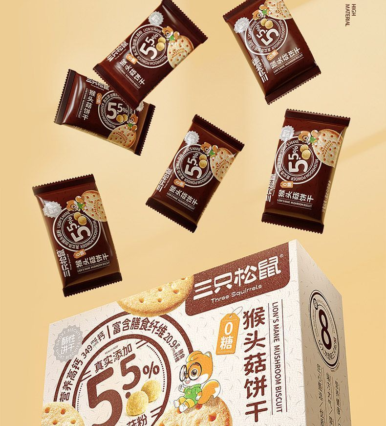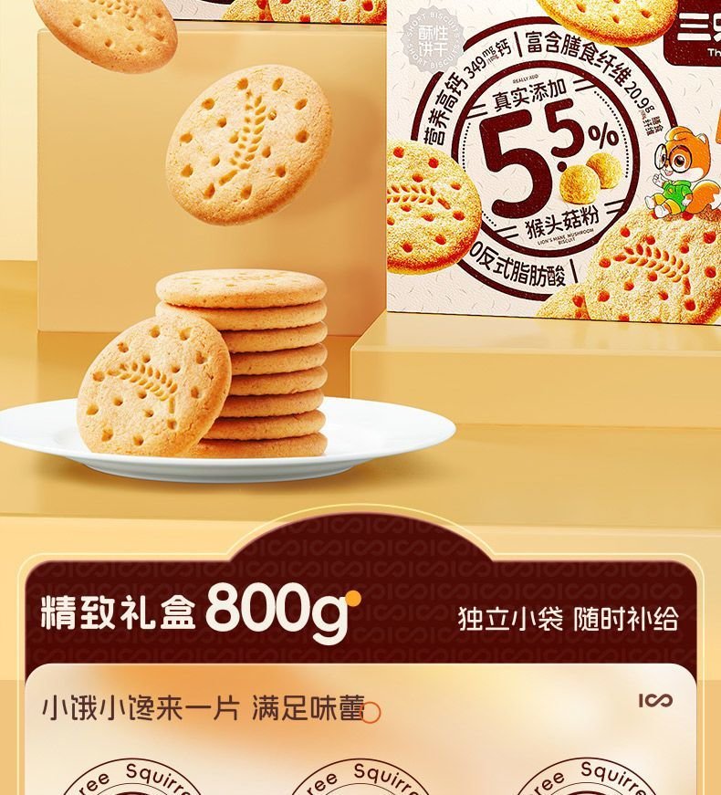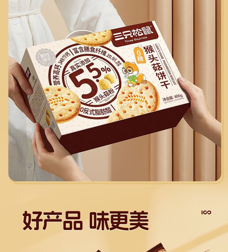 Three Squirrels sugar-free Hericium biscuits gift box 800g*1 box casual snacks biscuits and snacks