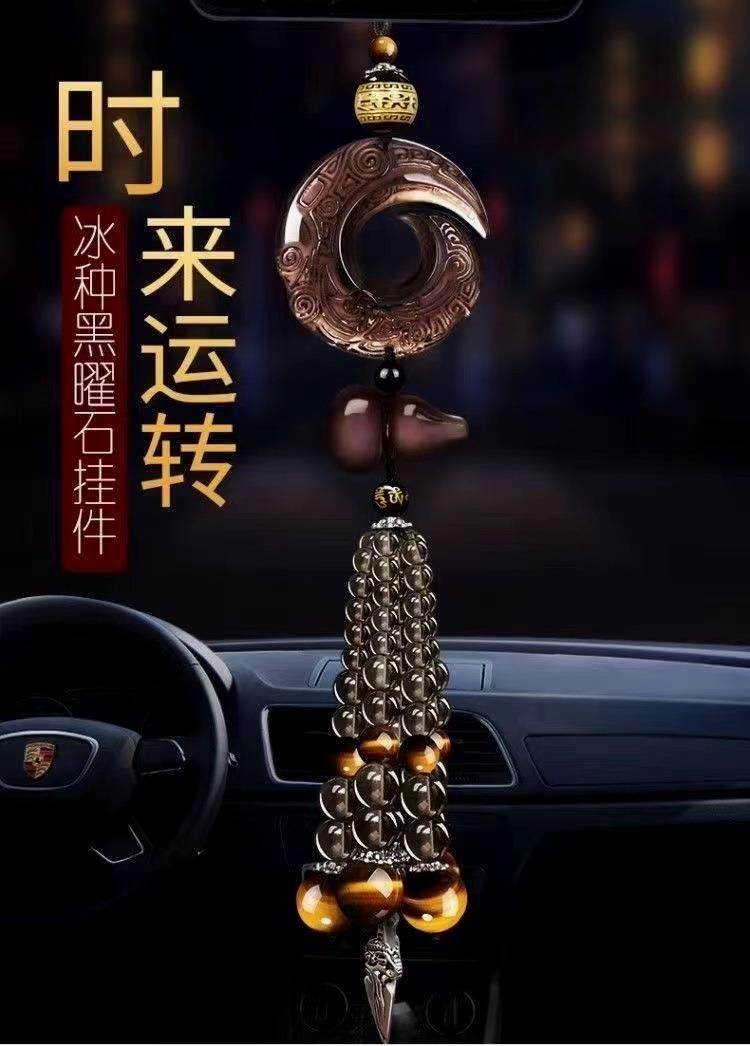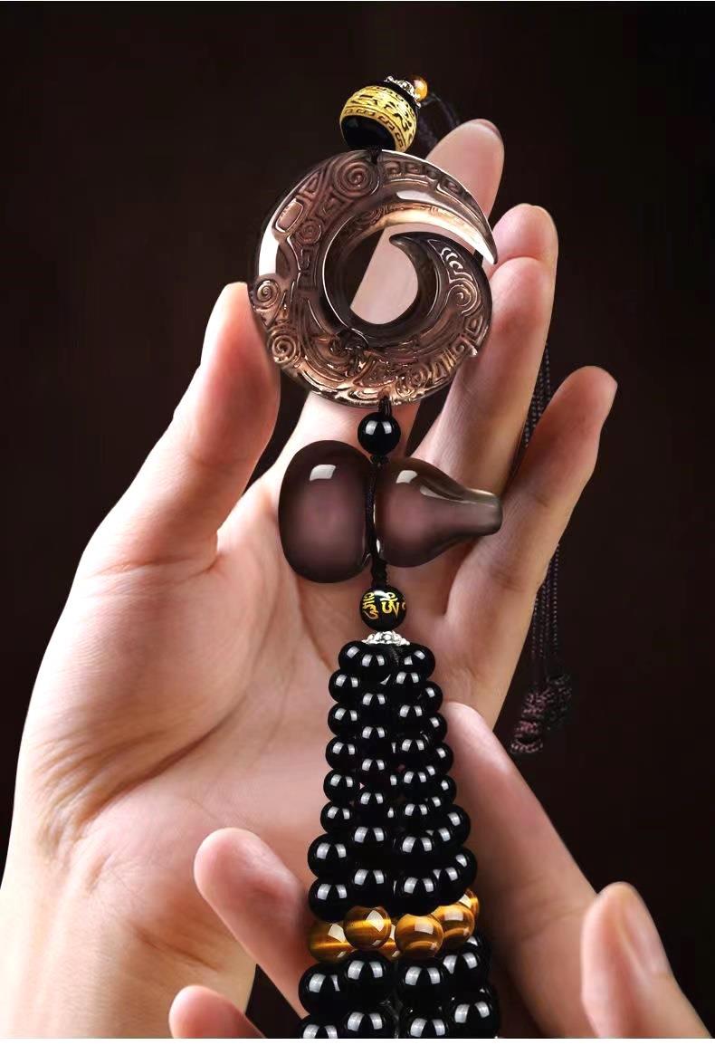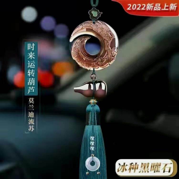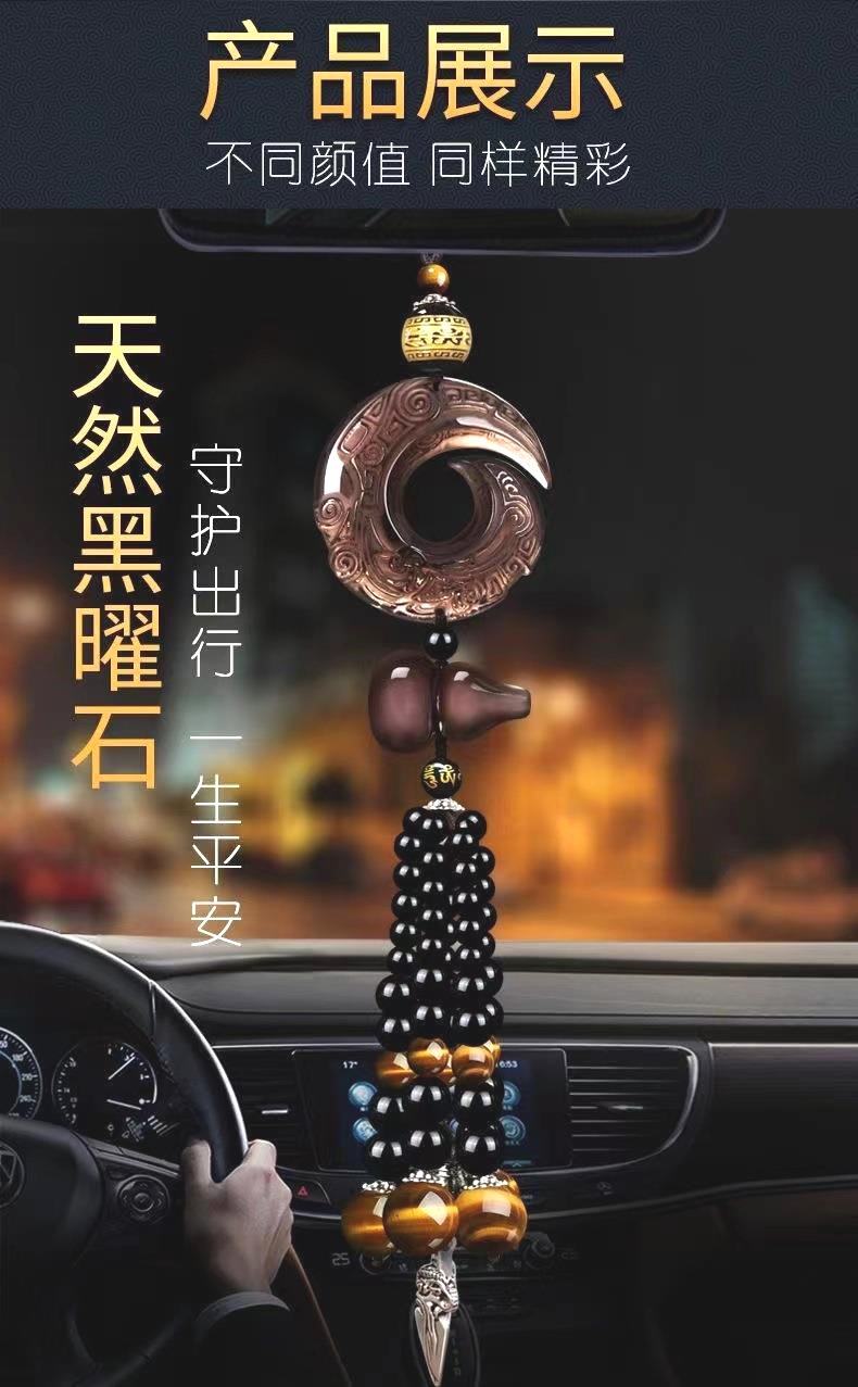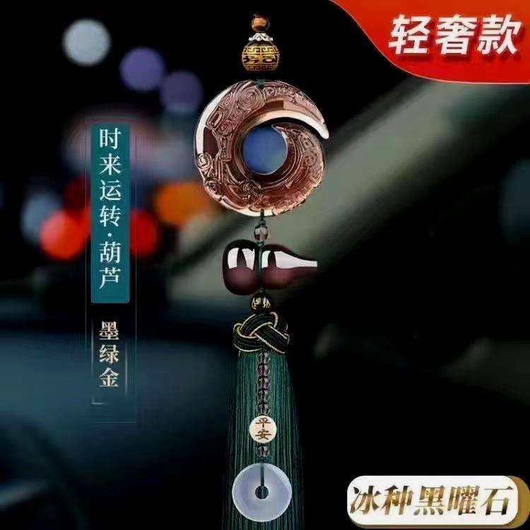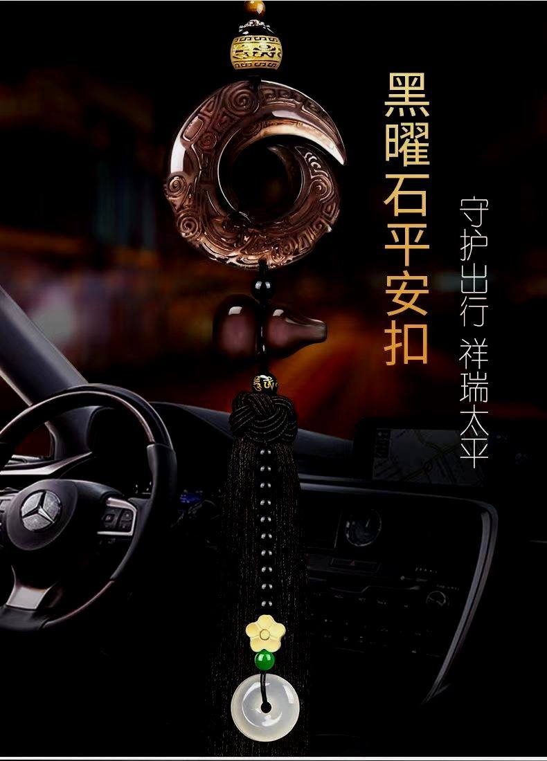 Car Pendant, Interior Decoration, Obsidian, Good Luck and Safety, High-End Jade Car Rearview Mirror Hanging Ornament for Men