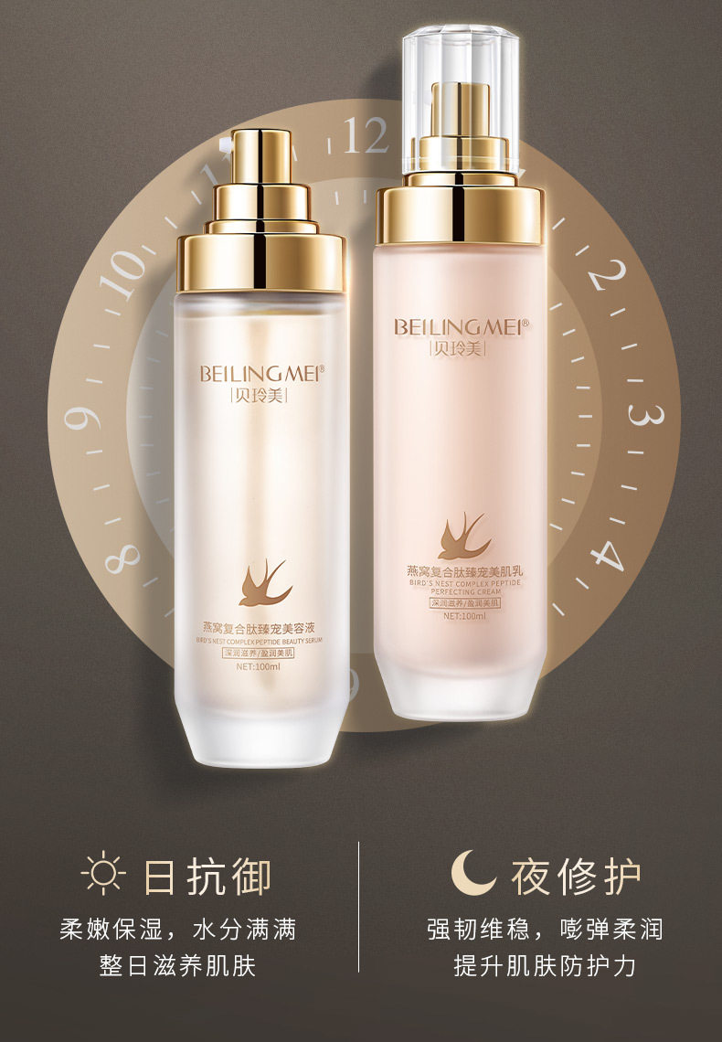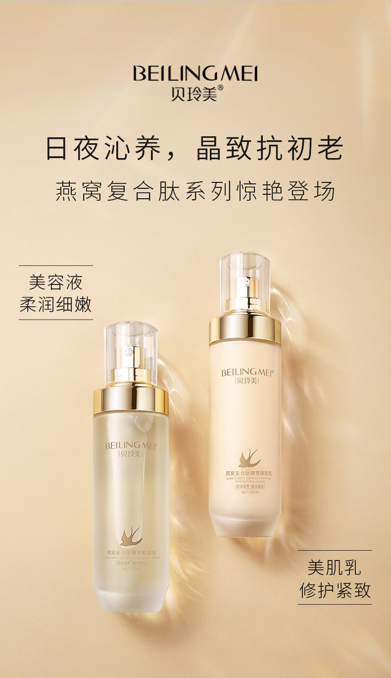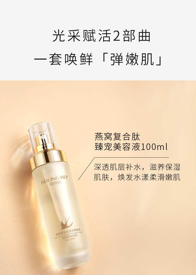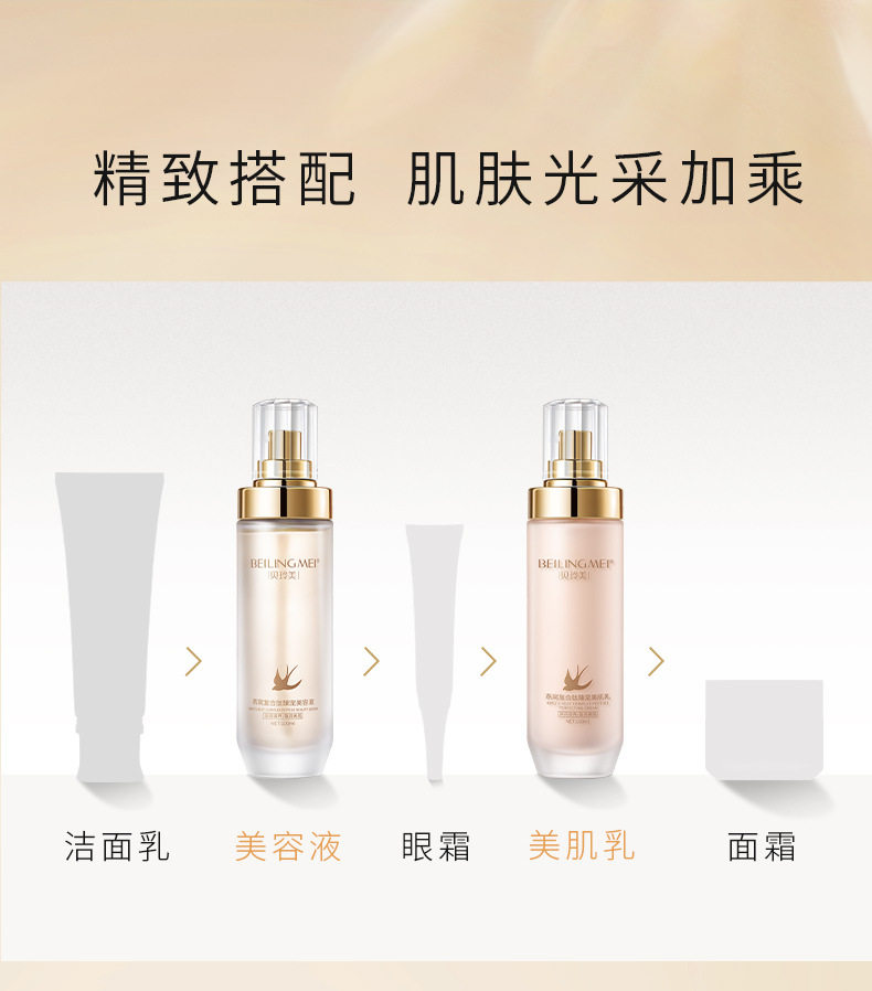 Bei Lingmei Bird's Nest Complex Peptide Radiant Care Water and Emulsion Two-Piece Set for Hydration, Moisturizing, Anti-Wrinkle, and Skin Care for Women and Mothers