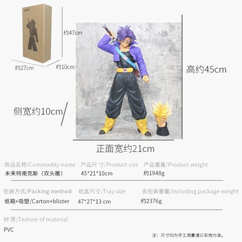 Dragon Ball Super Saiyan Figure, Extra Large Trunks with Dual Head Sculptures, Future Warrior Model, Display Piece