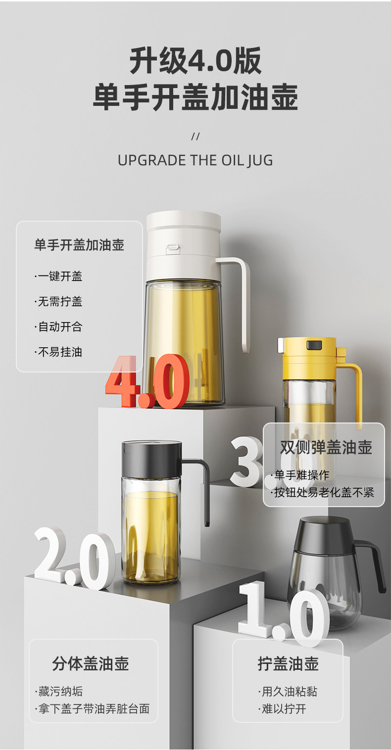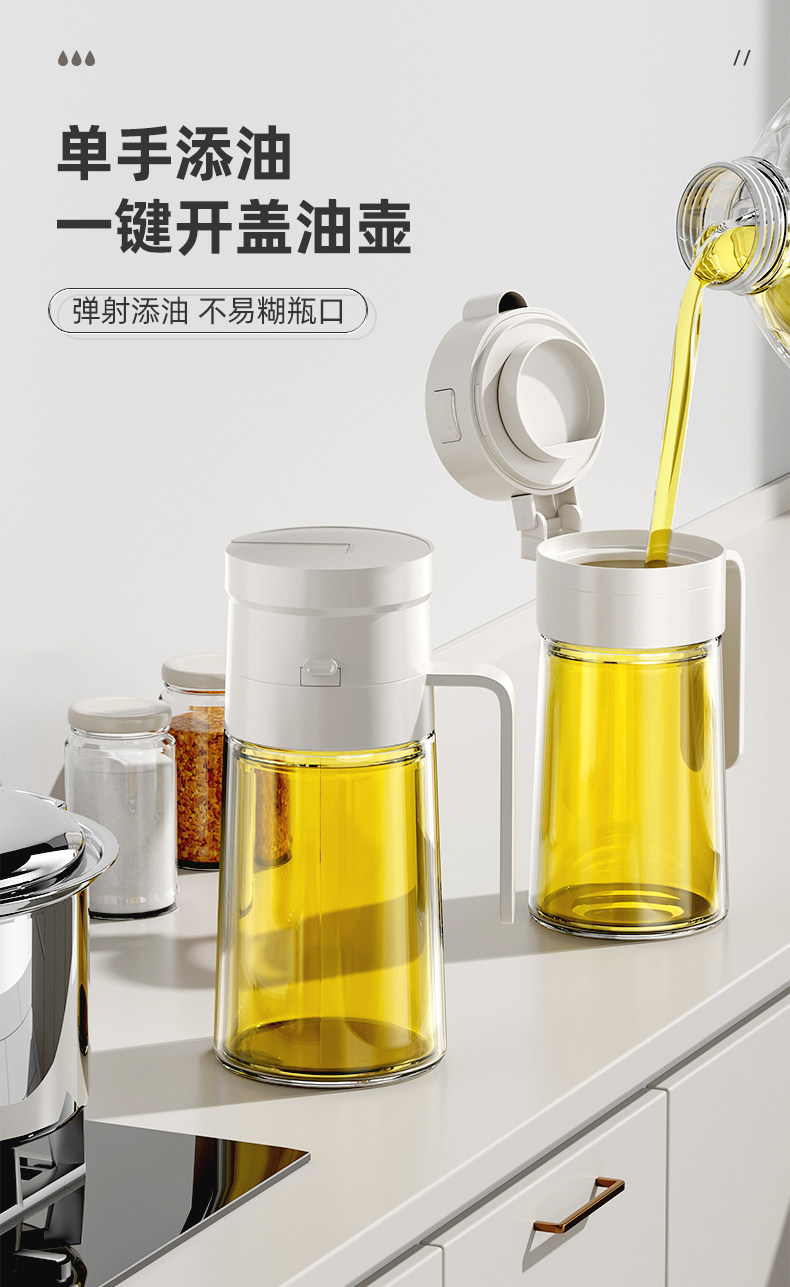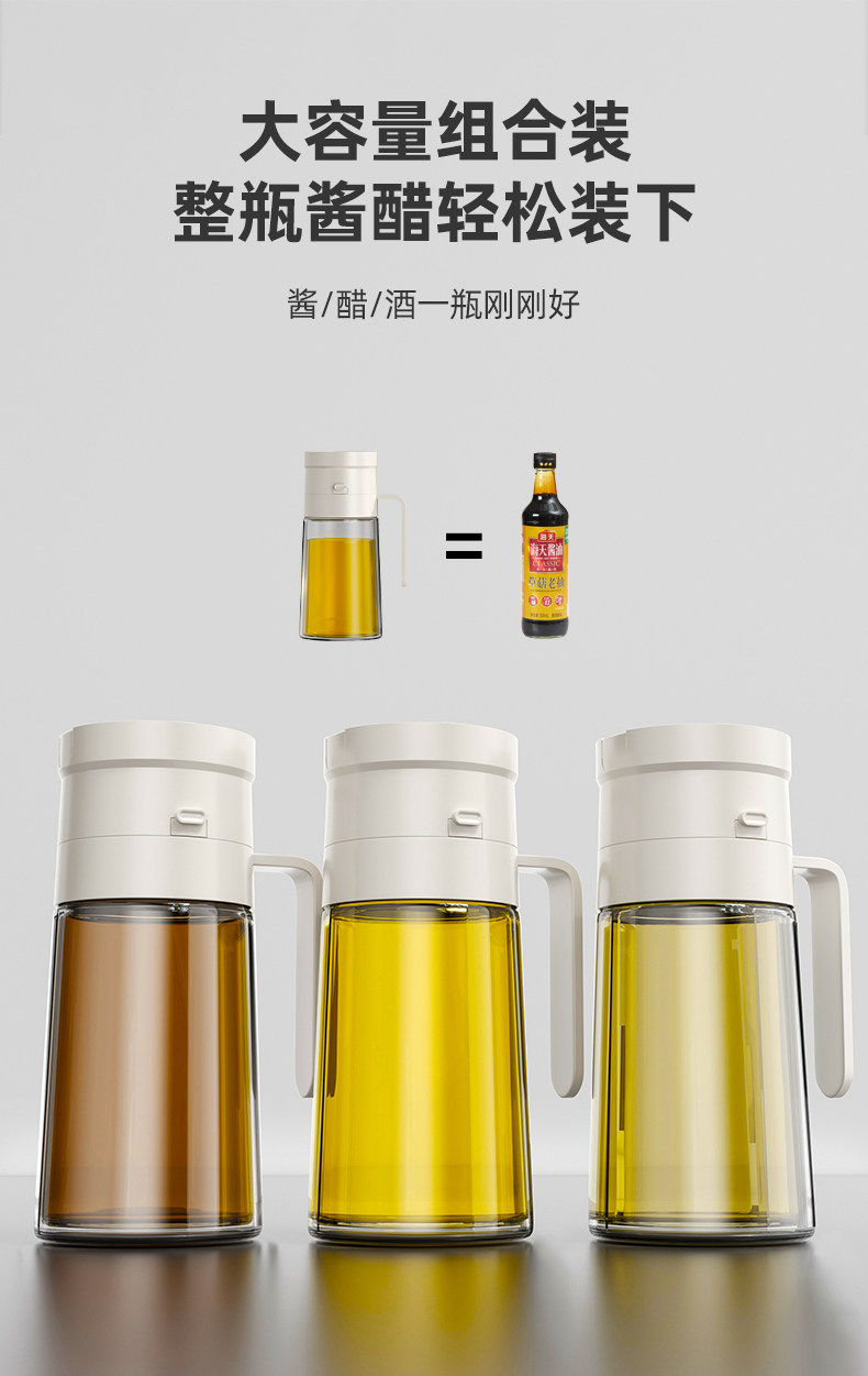 Glass Oil Pot for Home Kitchen, Leak-Proof Oil Container, Soy Sauce Vinegar Seasoning Bottle, Non-Oil-Sticking, Large Capacity Special Sesame Oil Bottle