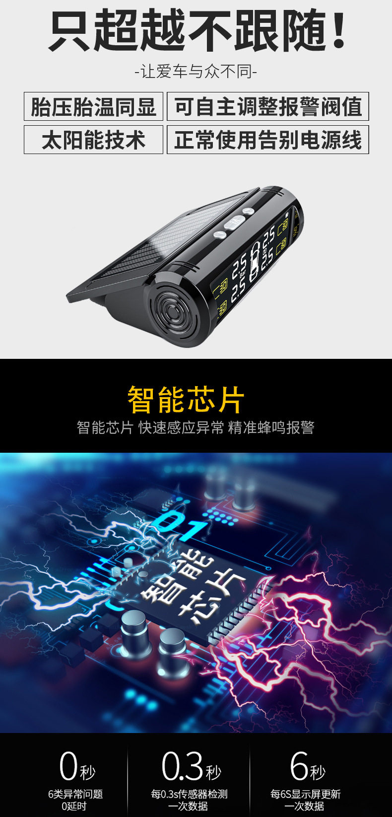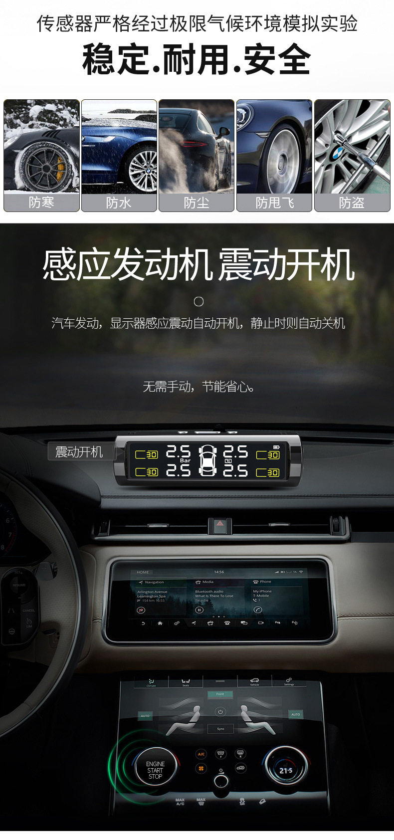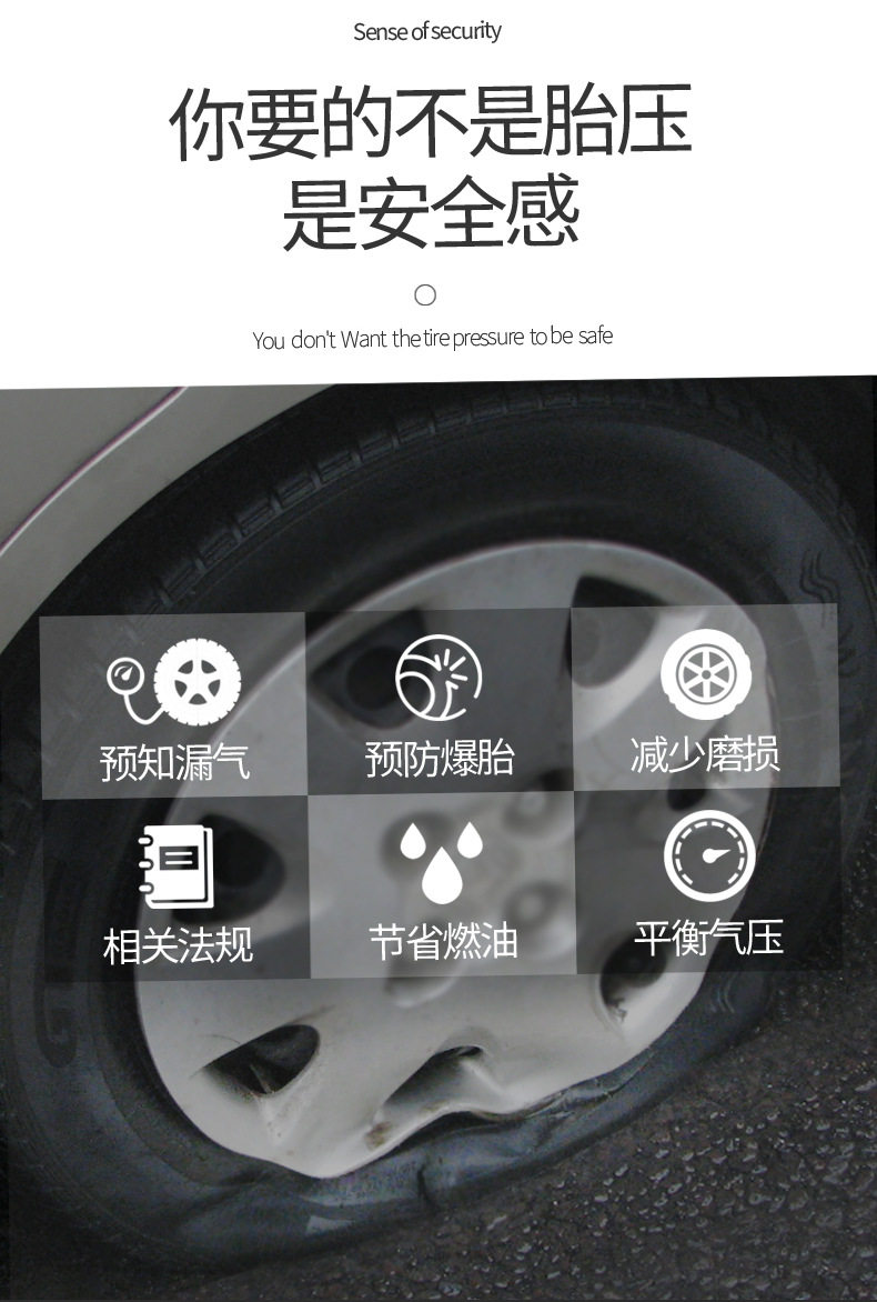 Tire Pressure Monitor External and Internal Car Tire Detector Wireless Solar-Powered Tire Pressure Hidden High-Precision