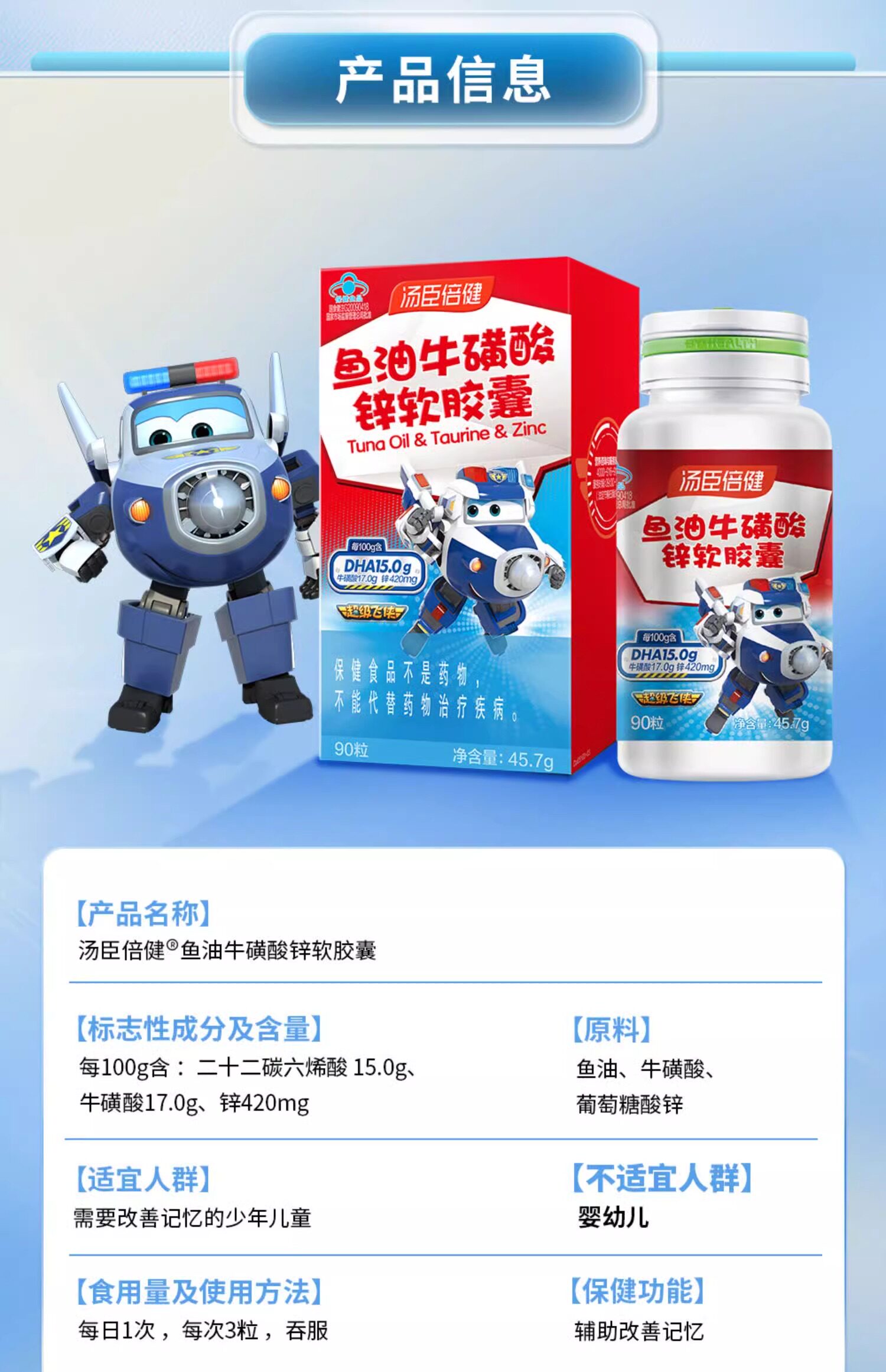 Tomson By-Health DHA student memory children's cod liver oil adolescent taurine zinc soft capsules