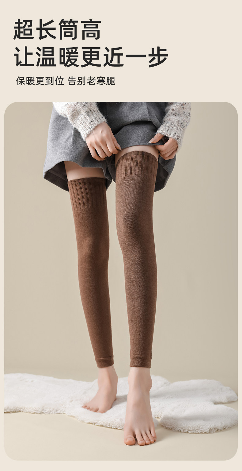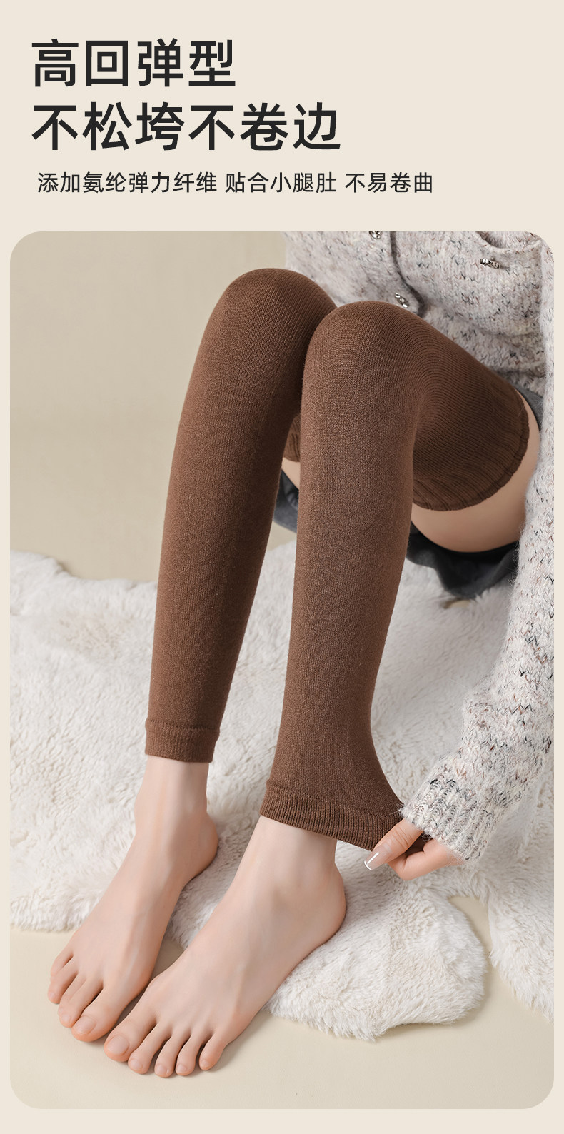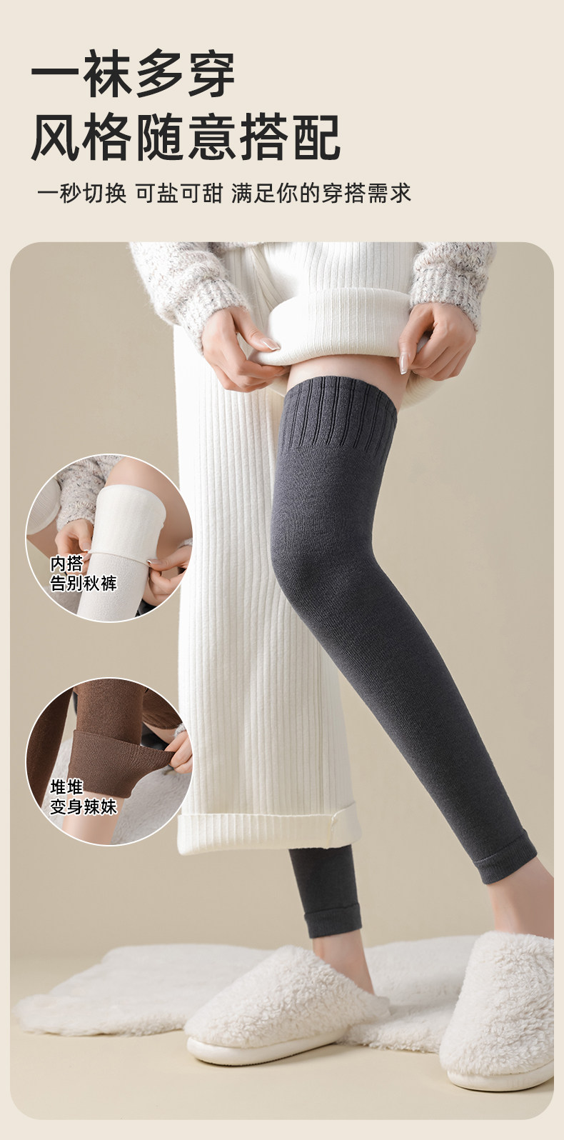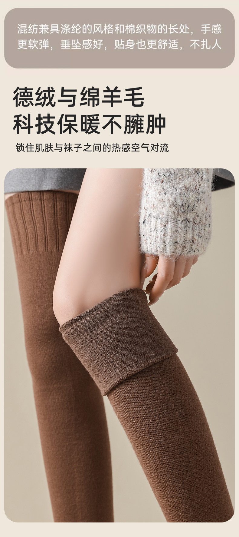 Knee pad socks for women, over-the-knee stockings, autumn and winter plus velvet, thickened terry wool socks, pure cotton thermal thigh socks, German velvet