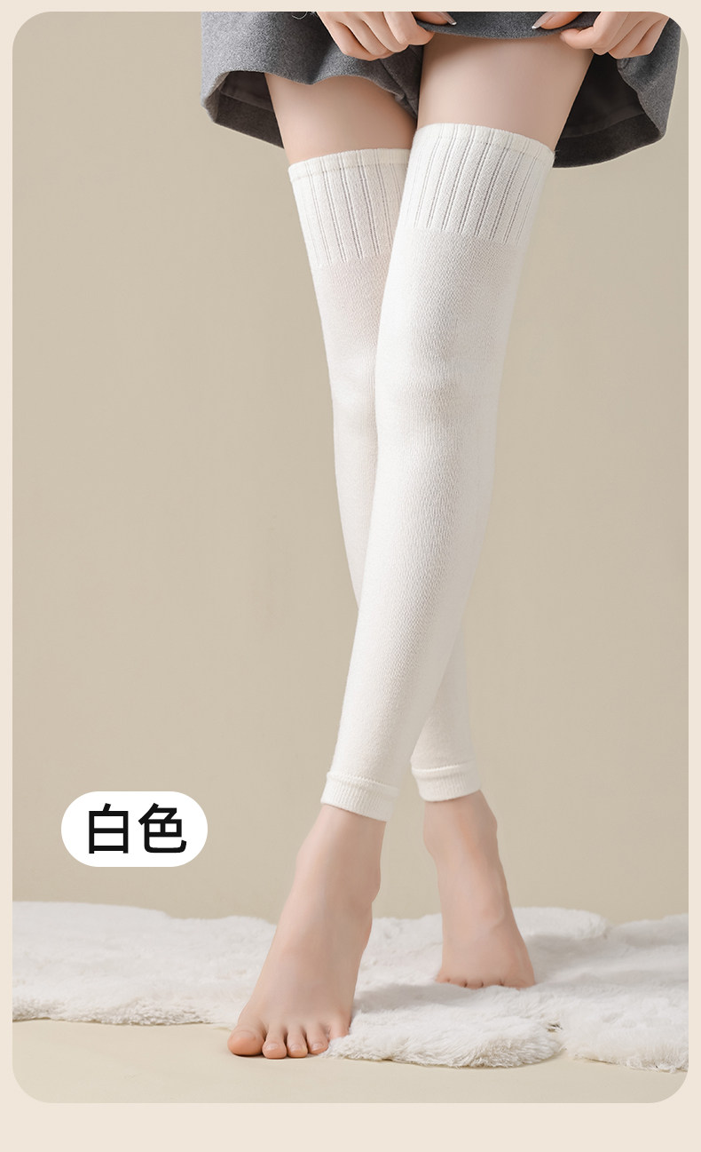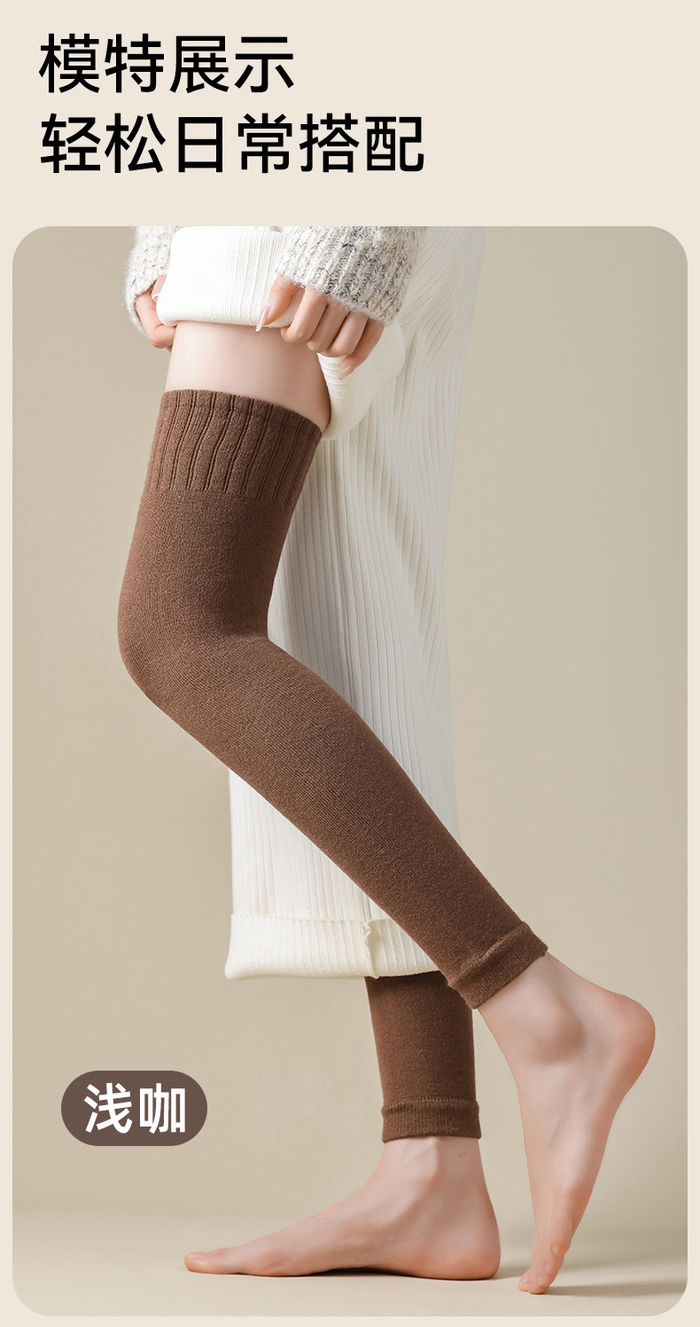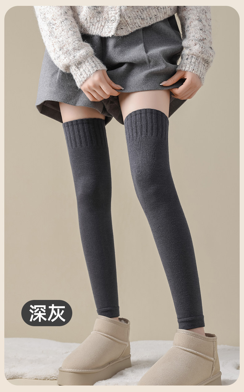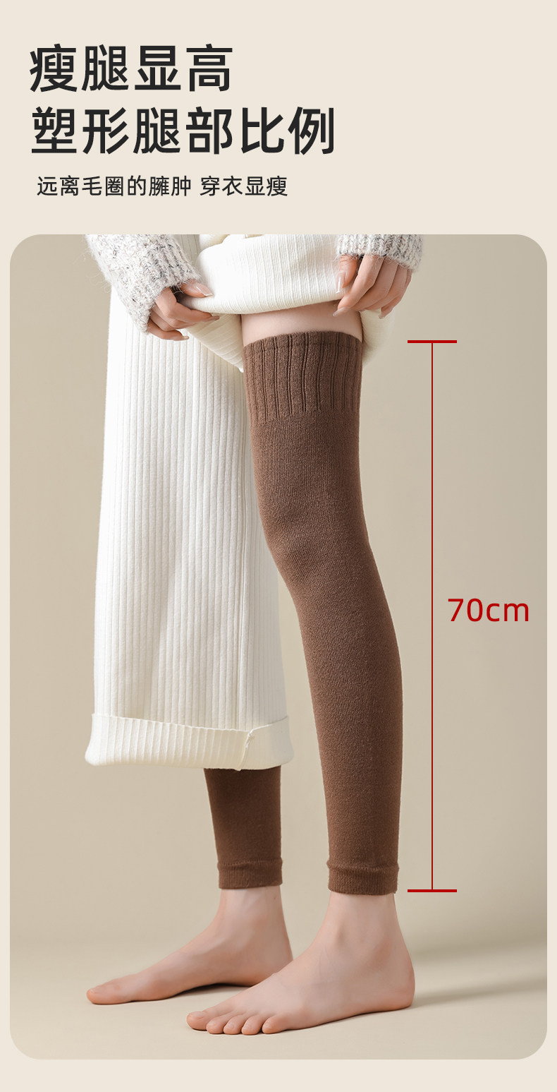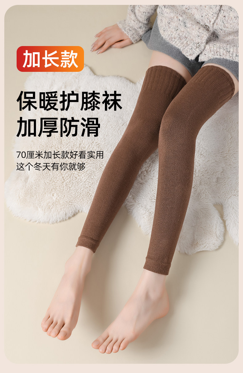Knee pad socks for women, over-the-knee stockings, autumn and winter plus velvet, thickened terry wool socks, pure cotton thermal thigh socks, German velvet