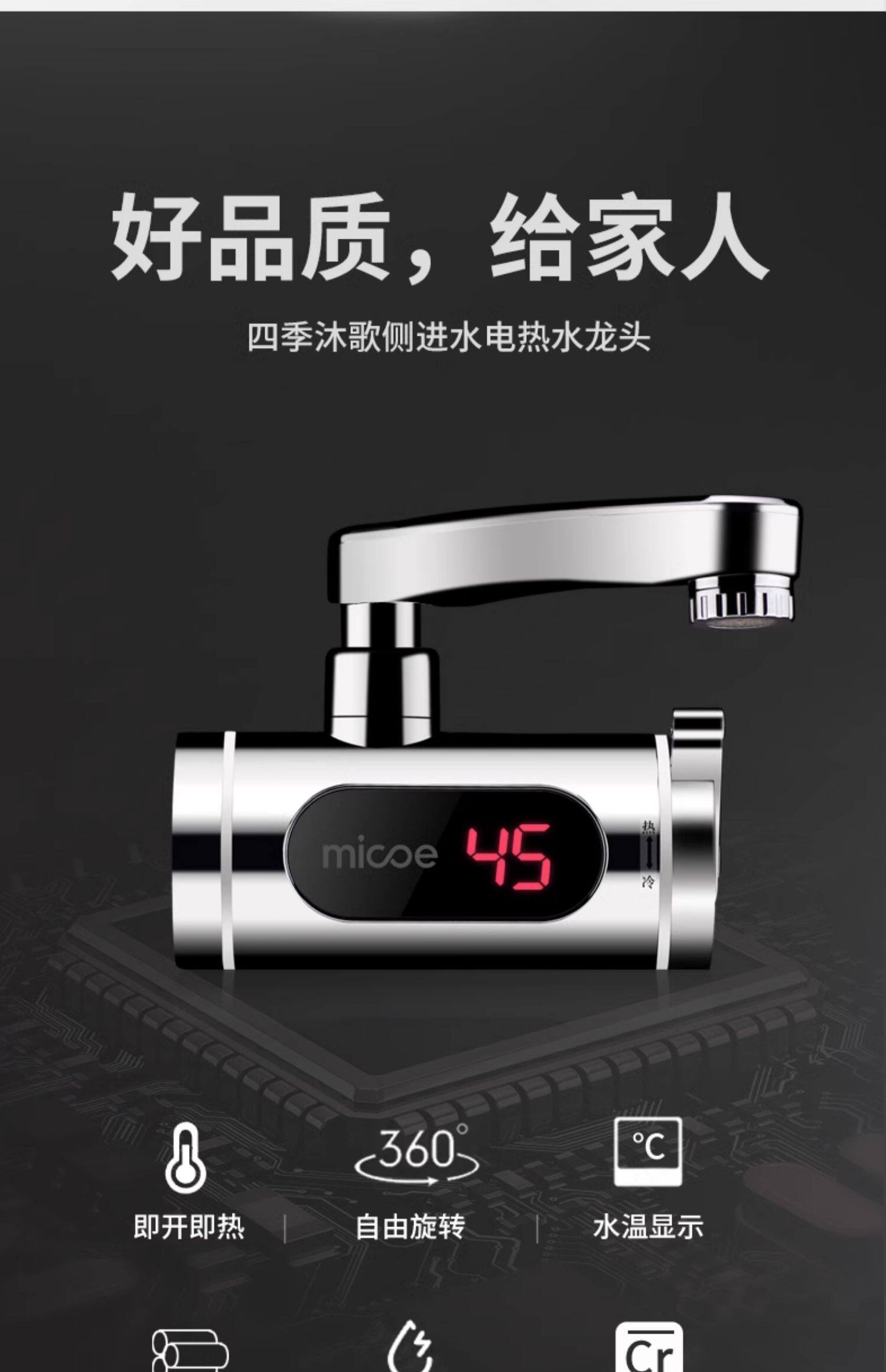 Electric hot water faucet Four Seasons Muge home kitchen side water inlet fast instant hot water overflow water heater