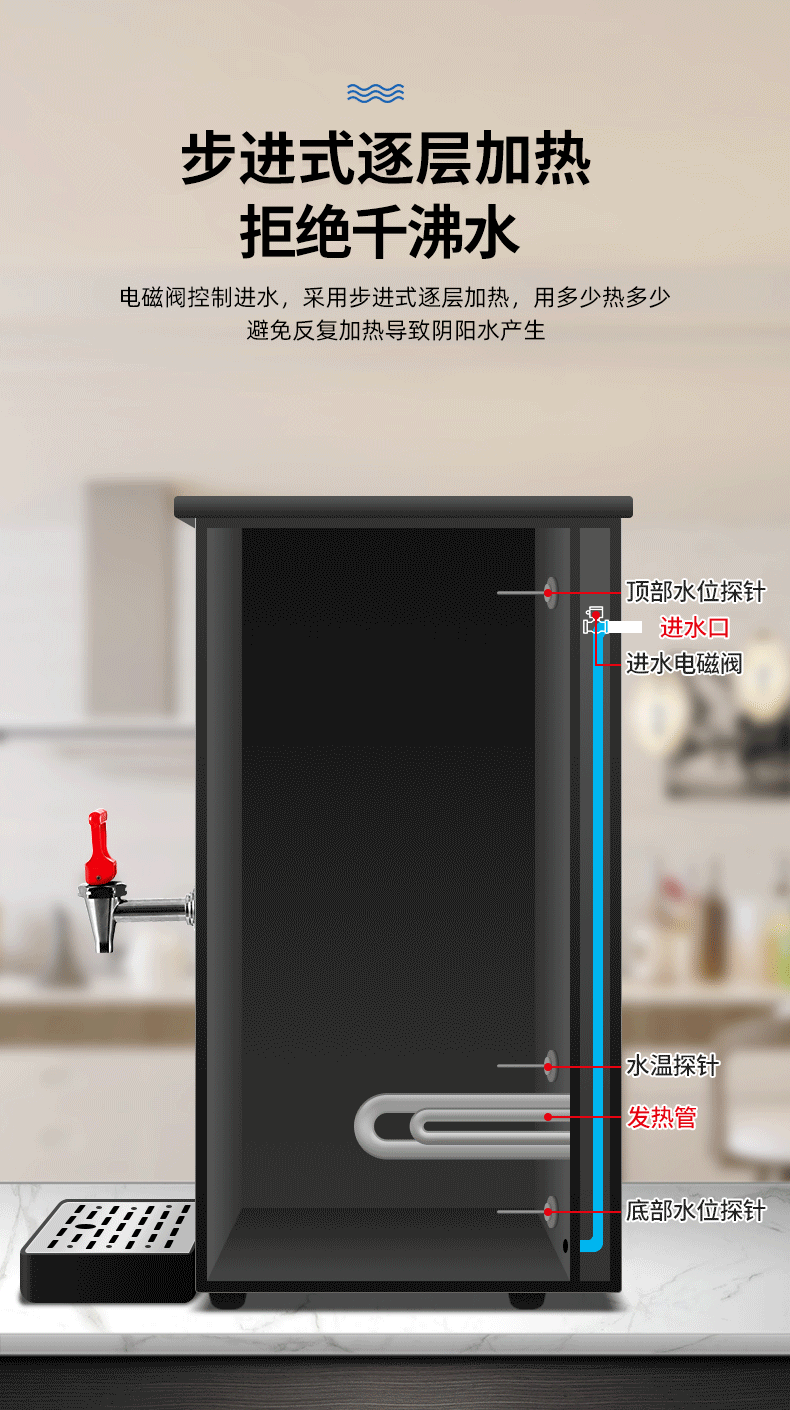 Rongshida Step-By-Step Water Boiler Commercial Electric Water Heater for Milk Tea Shops and Bar Counters