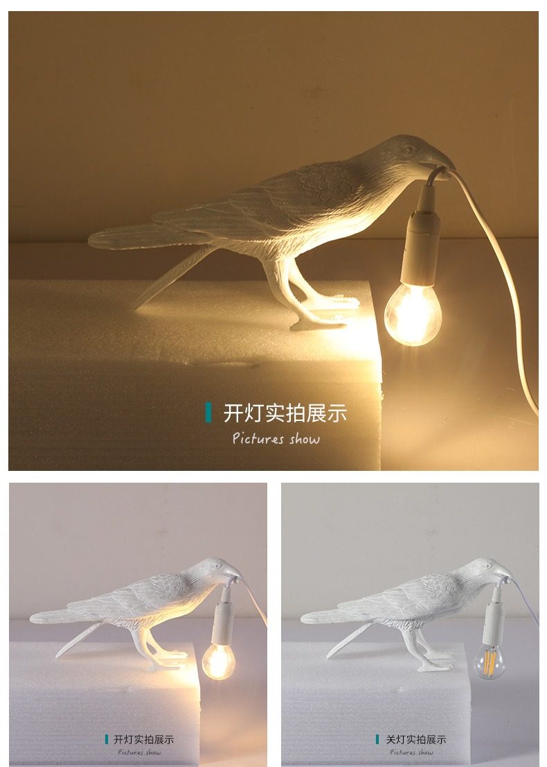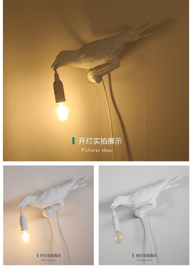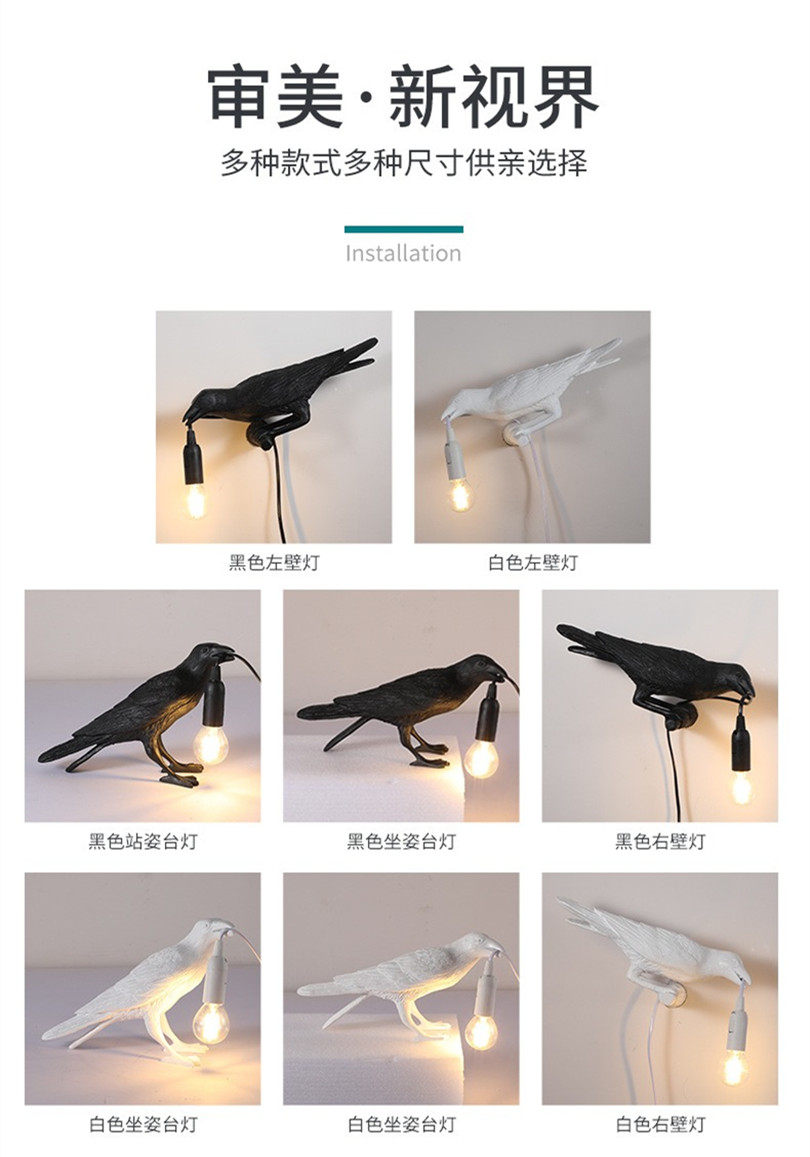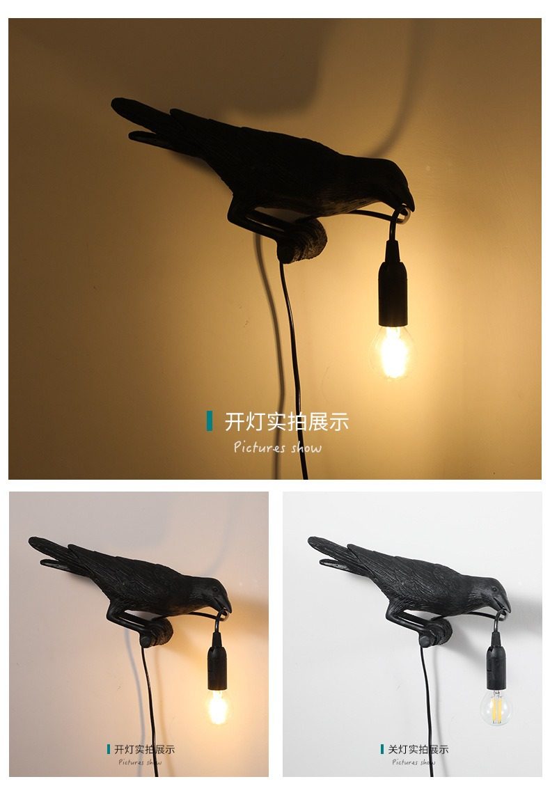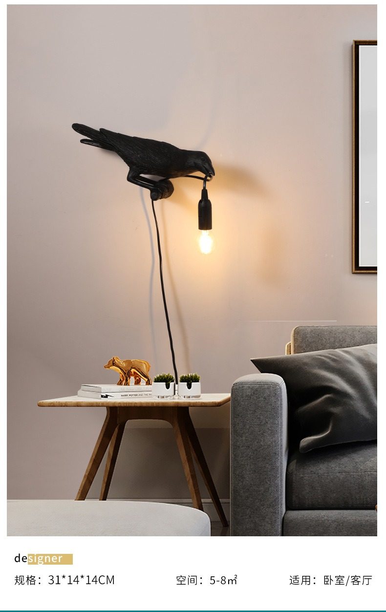 Nordic Designer Crow Wall Lamp, No Wiring Required, Bedside Decorative Table Lamp, Auspicious Bird Animal Ornament, Small Night Light
