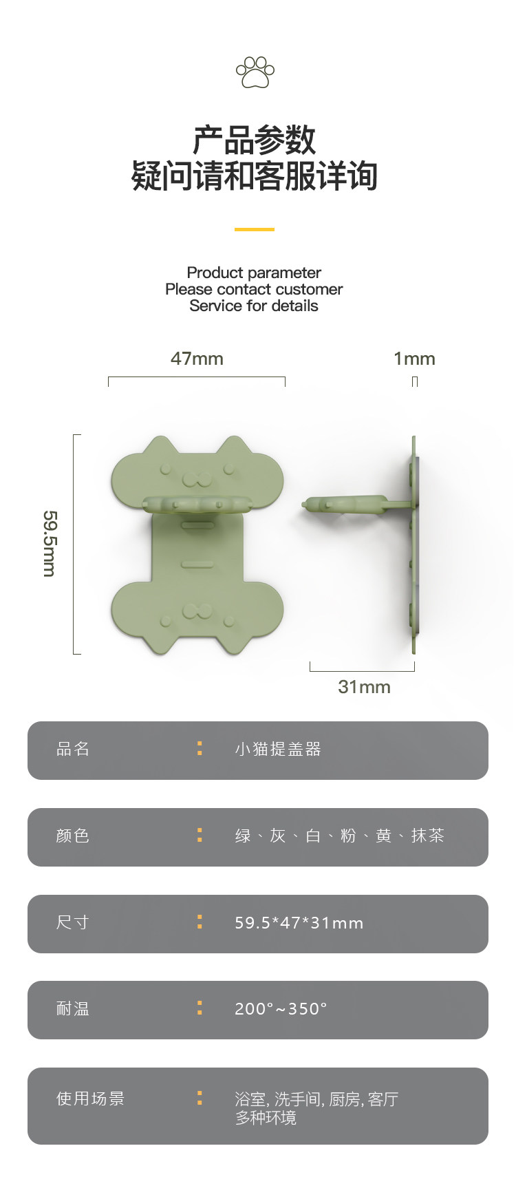 Color Classification White, Quantity: 1[Cat Claw Toilet Lid Lifter],Green, Quantity: 1[Cat Claw Toilet Lid Lifter],Pink 1[Cat Claw Toilet Lid Lifter],Gray 1[Cat Claw Toilet Lid Lifter],White, Pack of 2[Cat Claw Toilet Lid Lifter],Green, Quantity: 2[Cat Claw Toilet Lid Lifter],Pink 2 Pieces[Cat Claw Toilet Lid Lifter],Gray 2[Cat Claw Toilet Lid Lifter],4 White[Cat Claw Toilet Lid Lifter],Green, Set of 4[Cat Claw Toilet Lid Lifter],Pink 4[Cat Claw Toilet Lid Lifter],Gray 4[Cat Claw Toilet Lid Lifter]