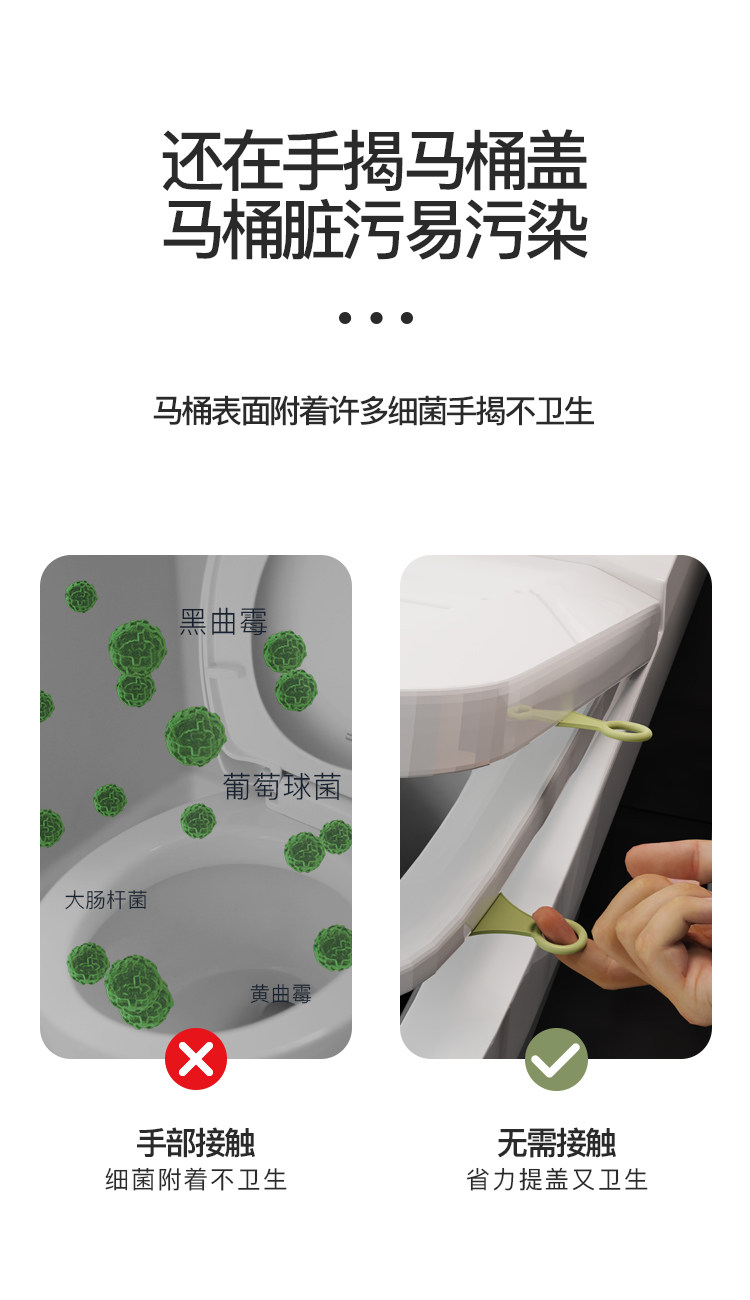 Toilet Lid Handle Opener, Lid Lifter, Pull Handle, Lid Remover, Puller, Lid Lifter with Extended Silicone Smart Handle