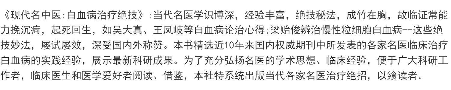 Book Title Modern Chinese Medicine Master's Leukemia Treatment Secrets