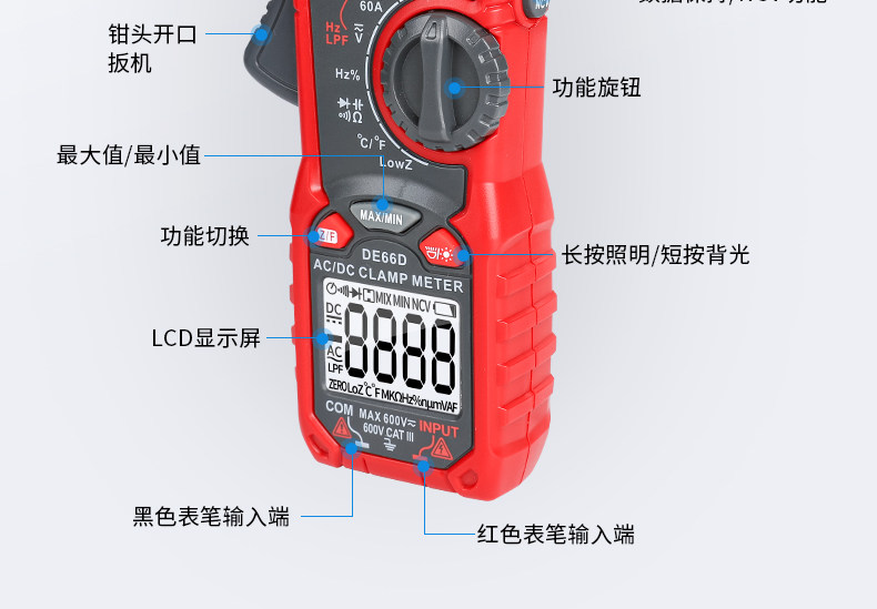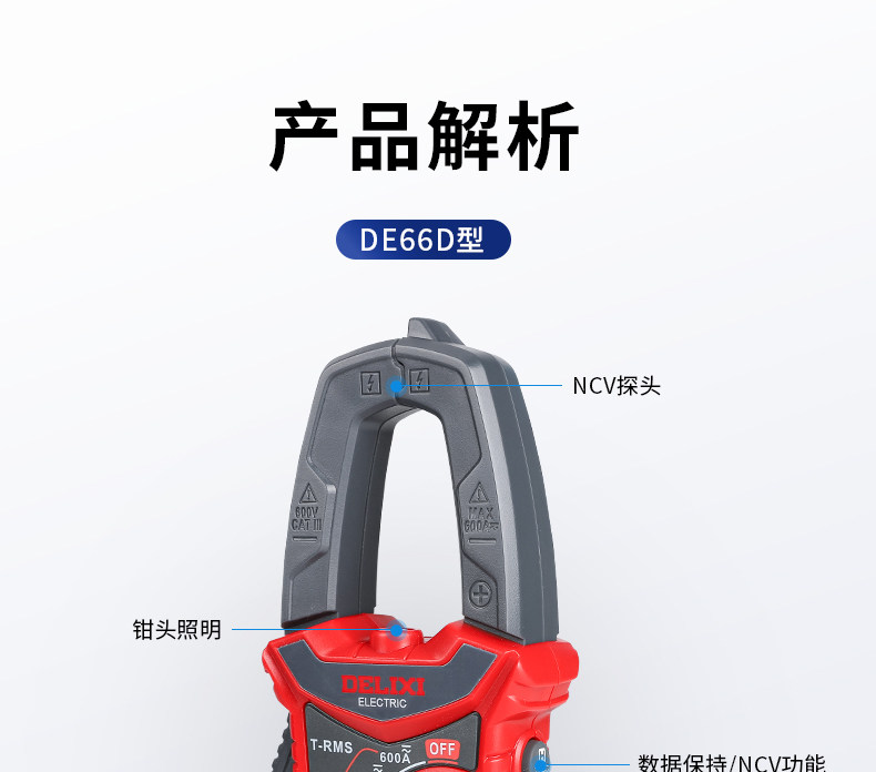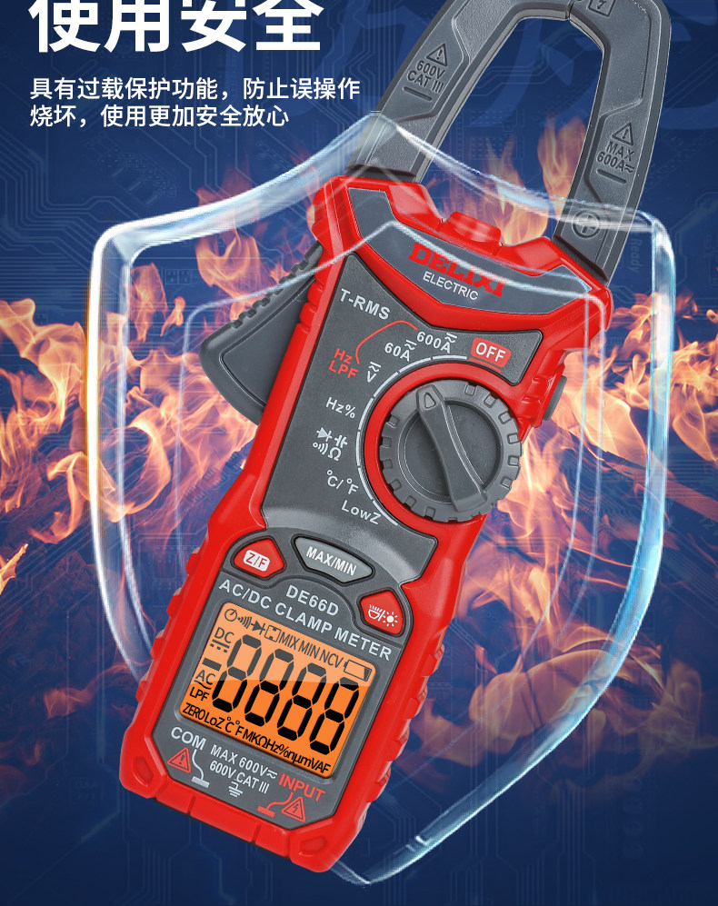 DE66D Delixi Electric AC DC clamp multimeter multifunctional high-precision ammeter electrician clamp flow meter