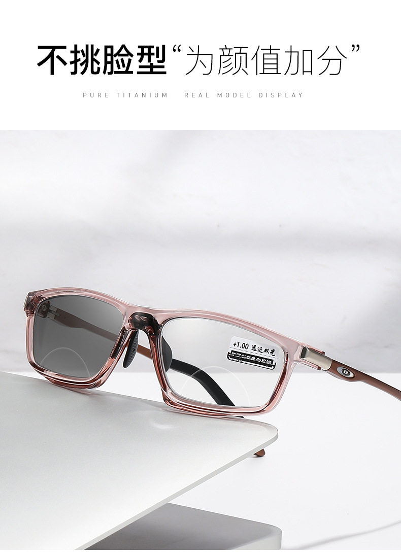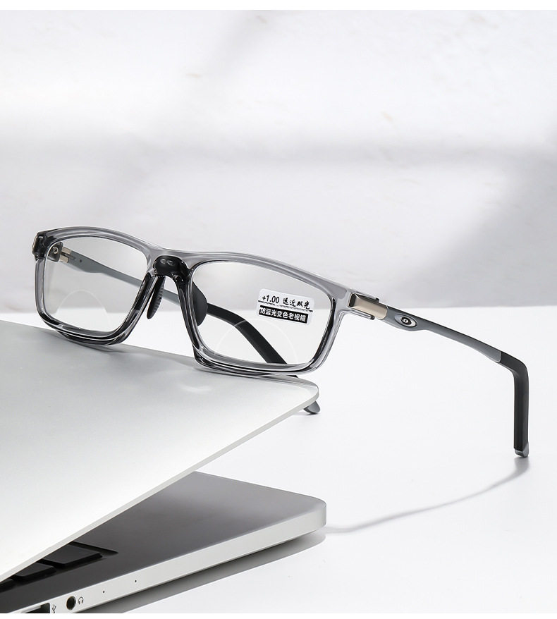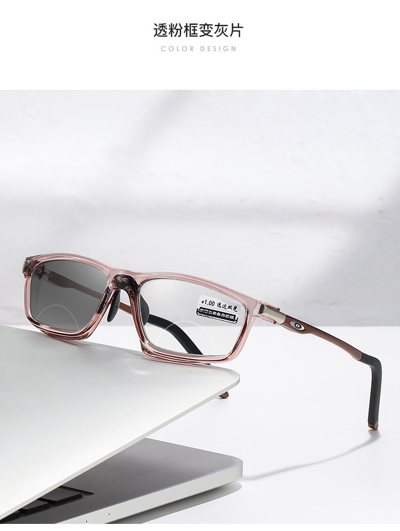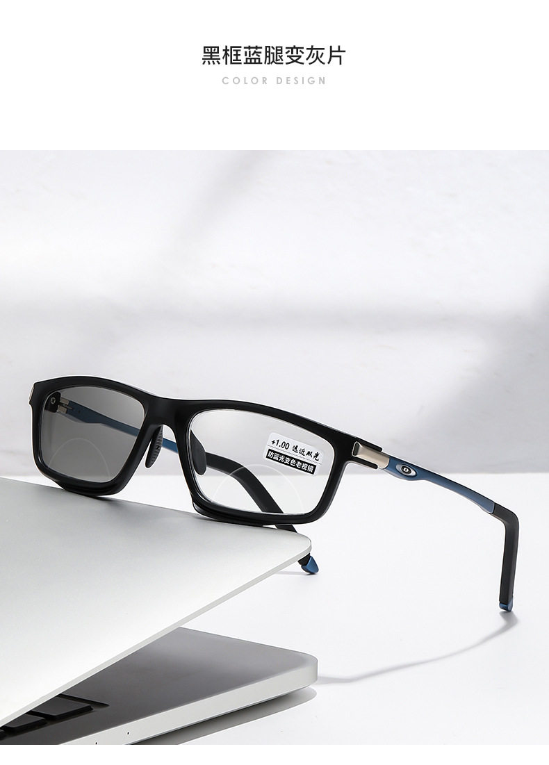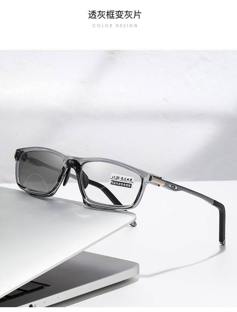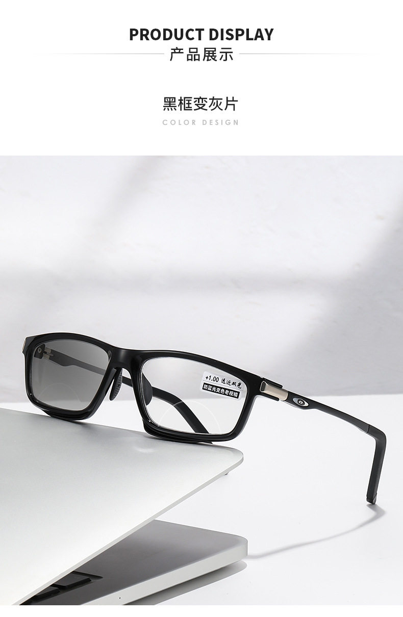 Sports Dual-Lens Photochromic Reading Glasses, Trendy Style for Men and Women, High-Grade Aluminum-Magnesium Ultra-Light Outdoor Far-Near Color-Changing Anti-Slip Presbyopic Glasses