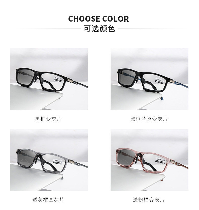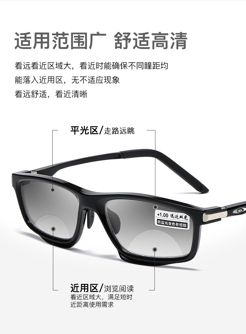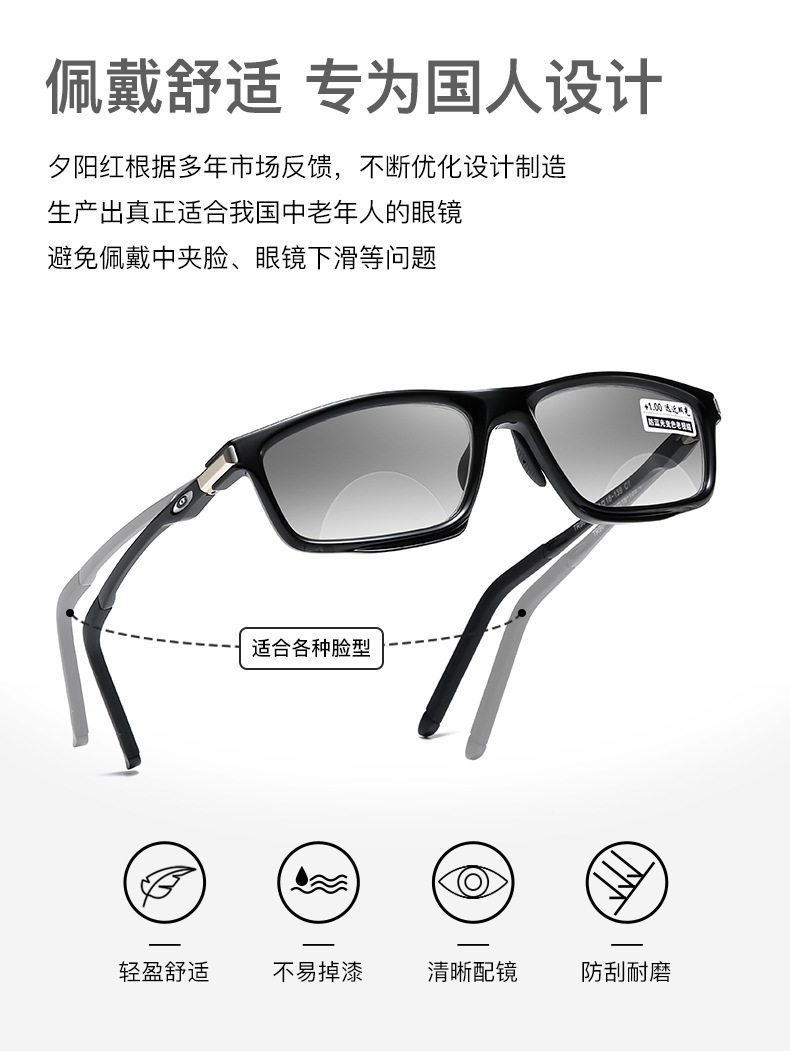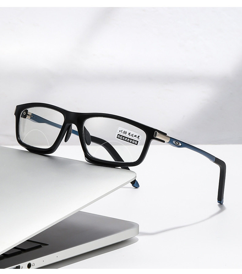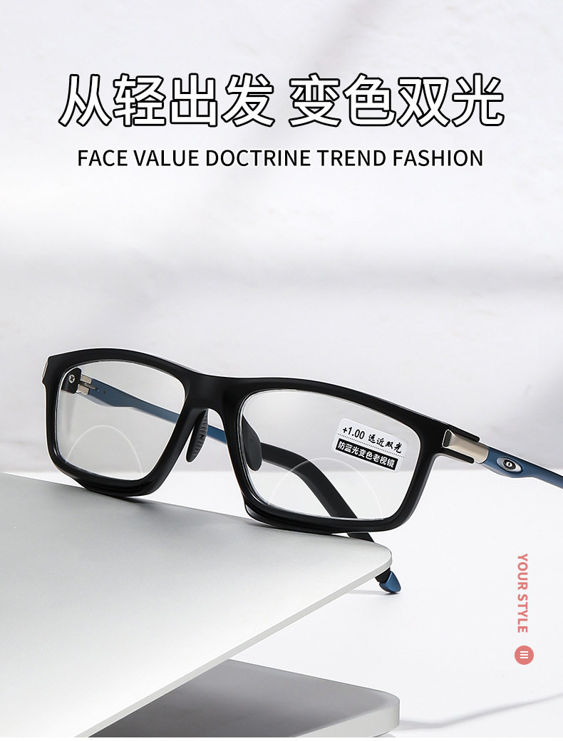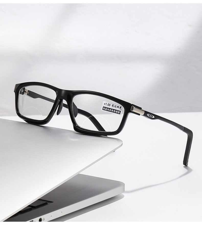 Sports Dual-Lens Photochromic Reading Glasses, Trendy Style for Men and Women, High-Grade Aluminum-Magnesium Ultra-Light Outdoor Far-Near Color-Changing Anti-Slip Presbyopic Glasses