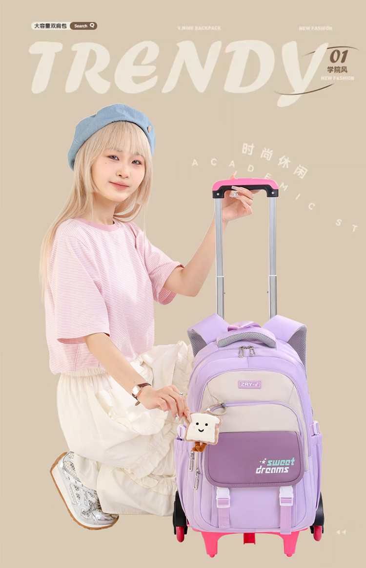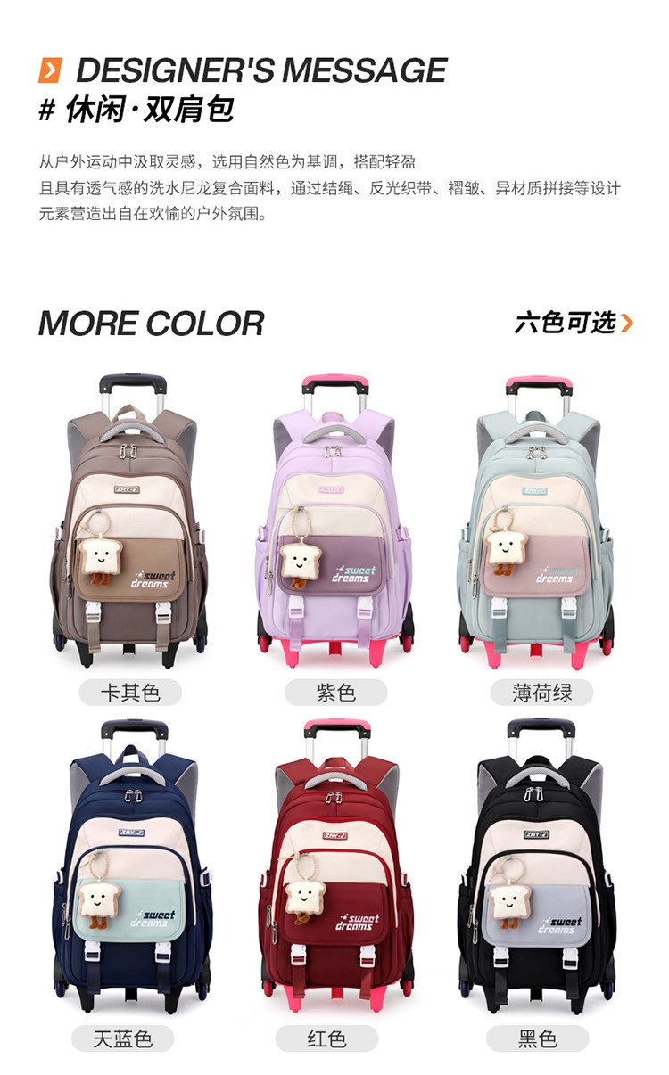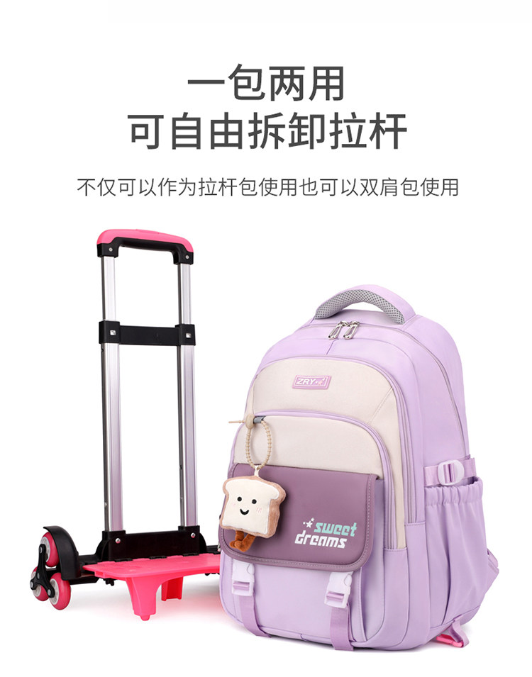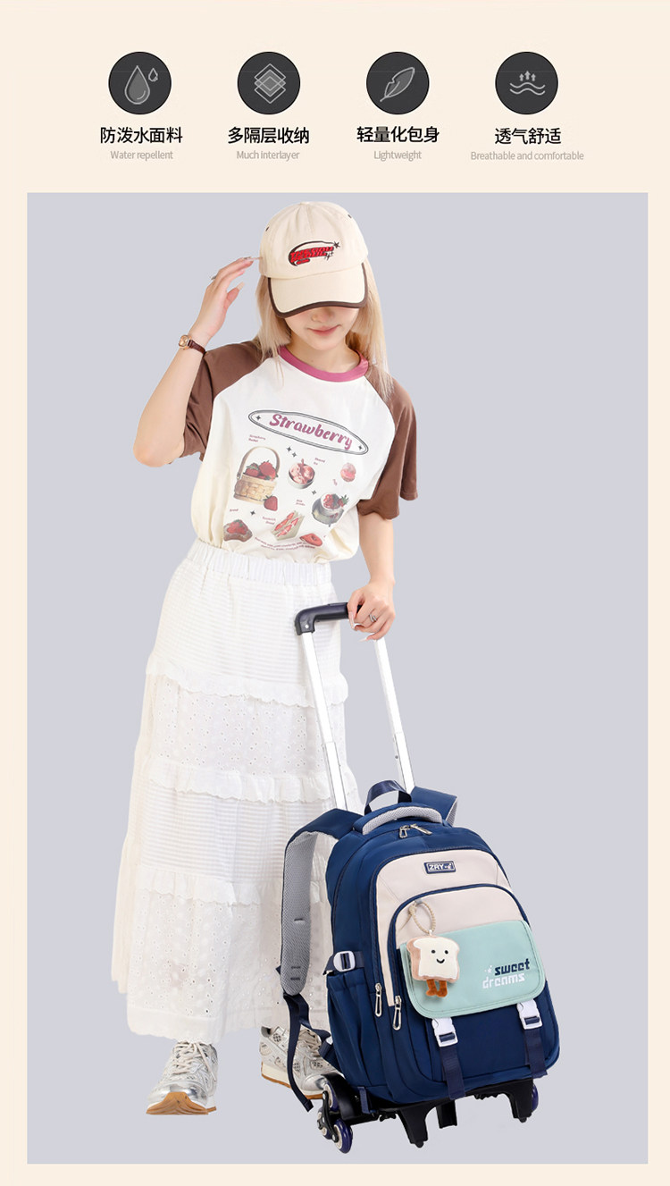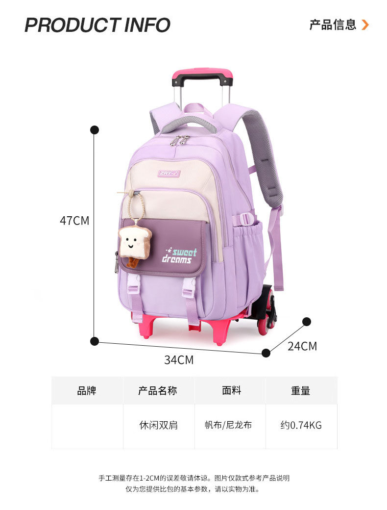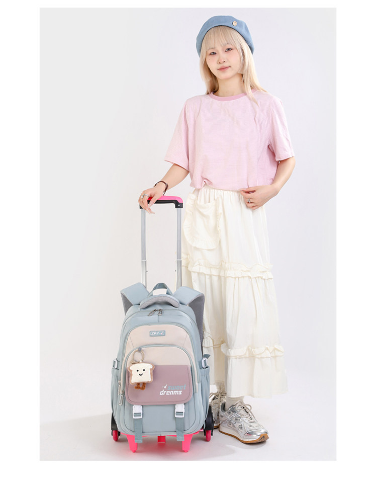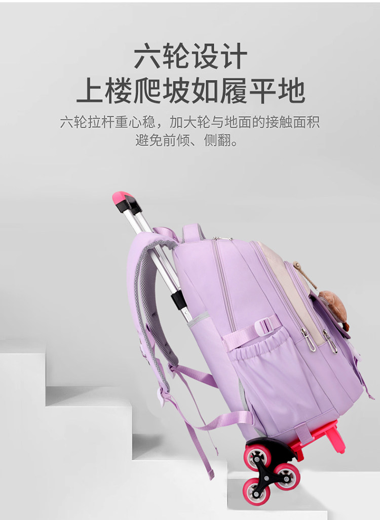 Junior high school student trolley schoolbag female primary school students in third to sixth grade climbing stairs 2026 new large capacity trailer with pulley